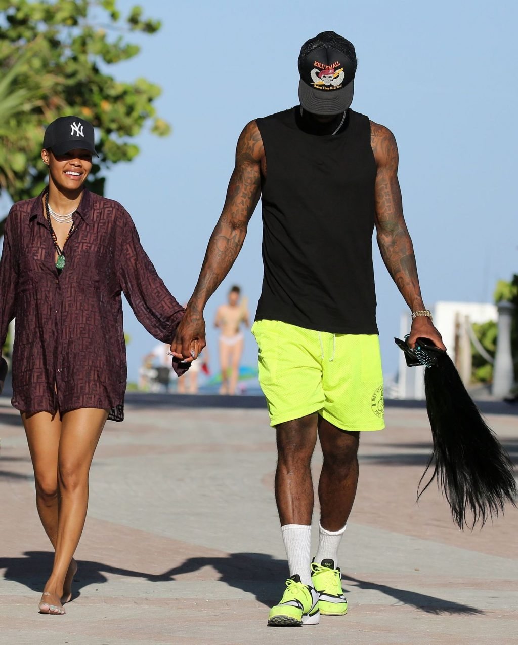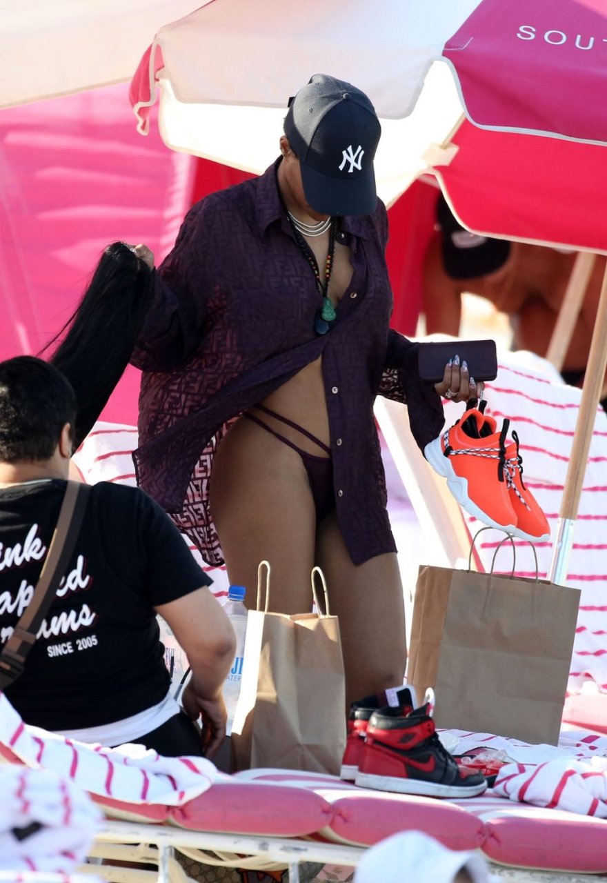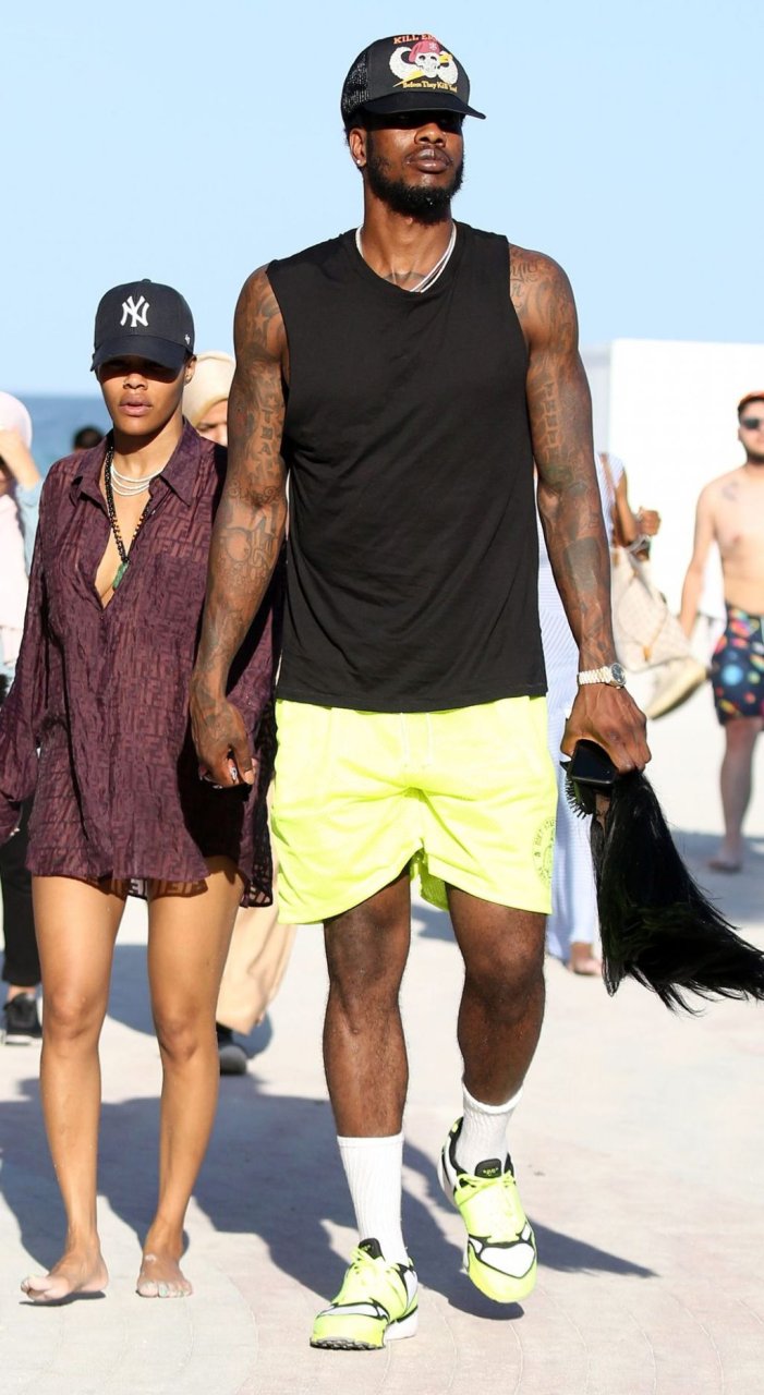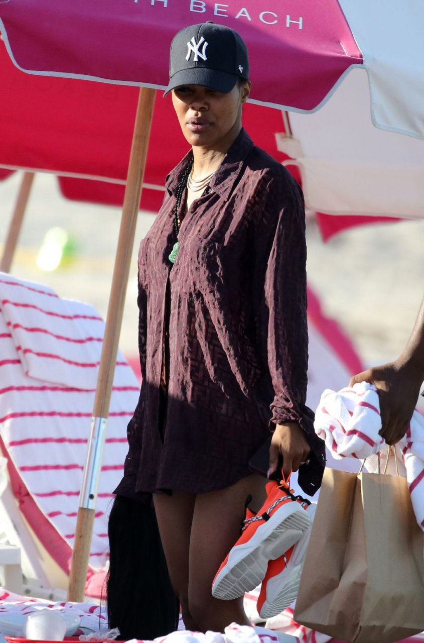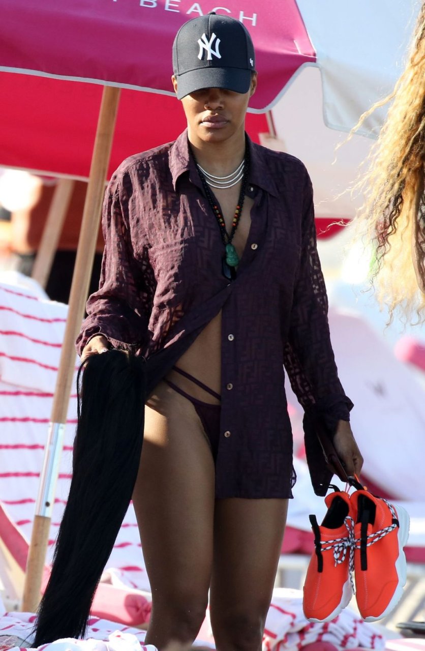 La chanteuse Teyana Taylor (28 ans) passe une journée en famille à la plage avec son mari, le joueur NBA des Houston Rockets Iman Shumpert, et leur fille à Miami Beach, Floride, le 02/07/2019.