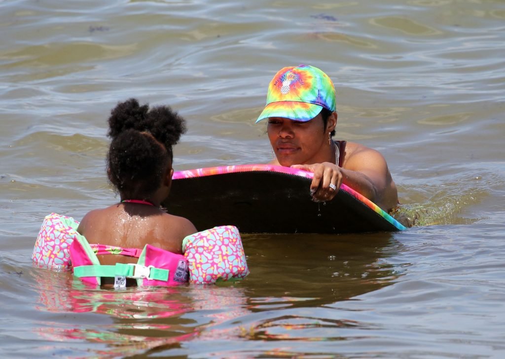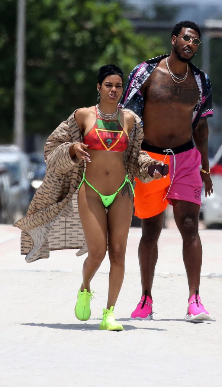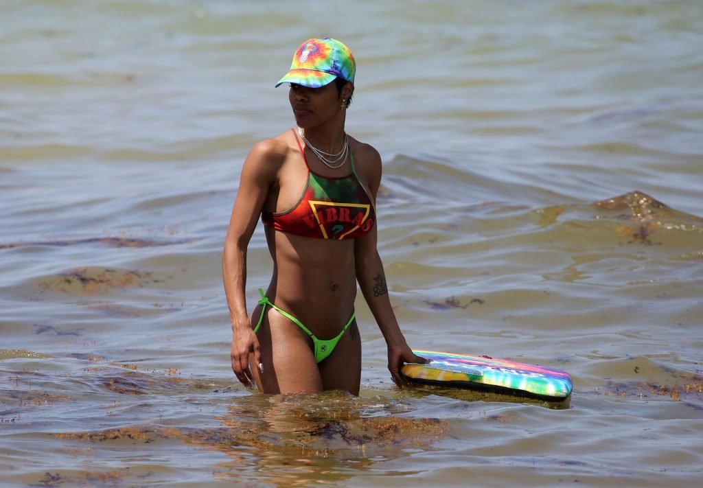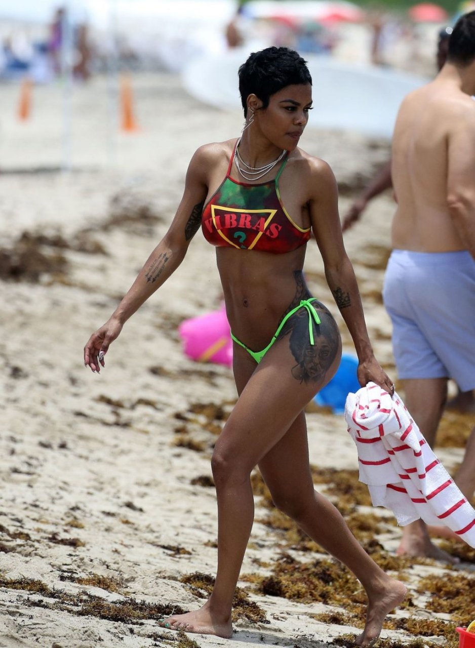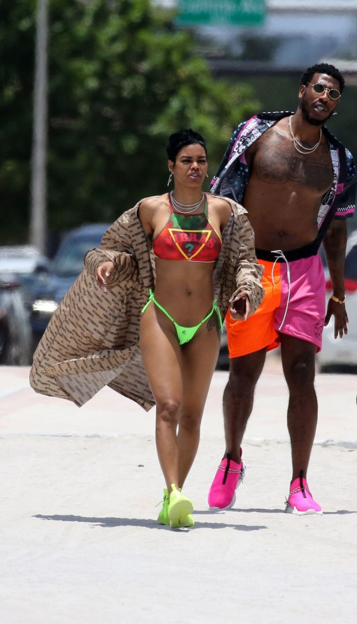 La chanteuse Teyana Taylor porte un tout petit bikini dépareillé tout en profitant du 4 juillet avec son mari, le joueur de la NBA Iman Shumpert, et leur fille à Miami Beach, le 04/07/2019.