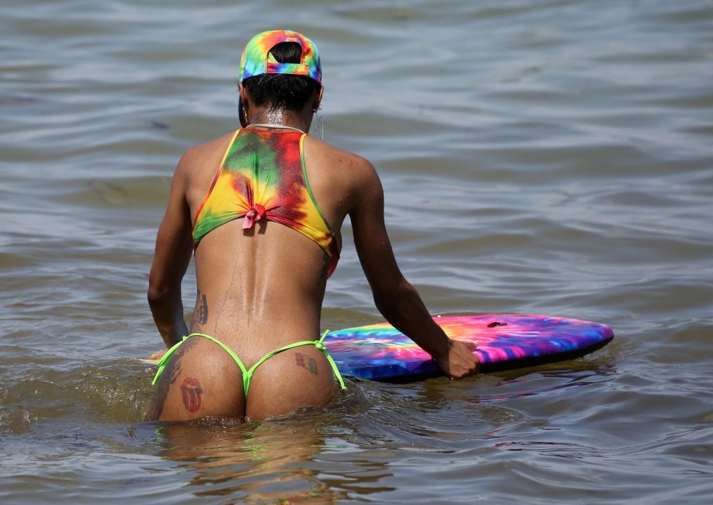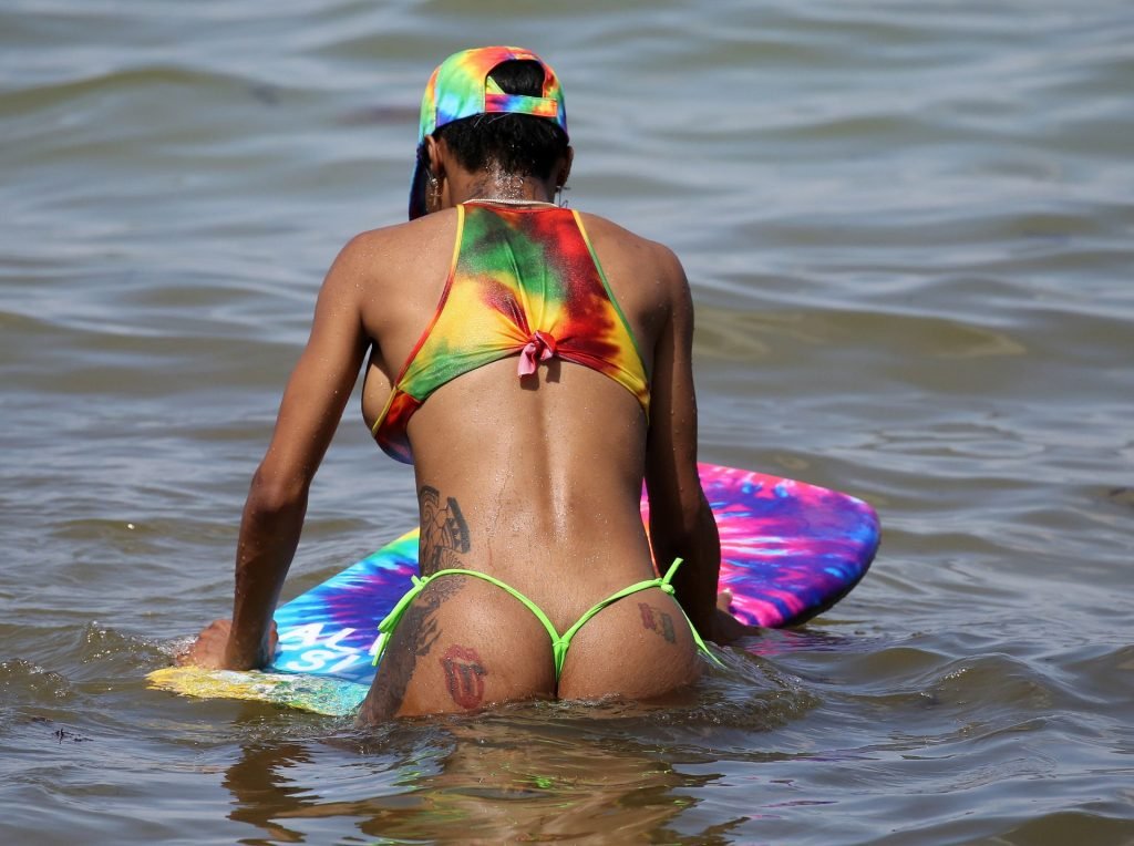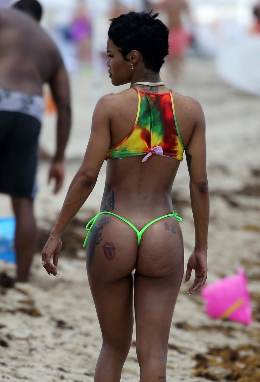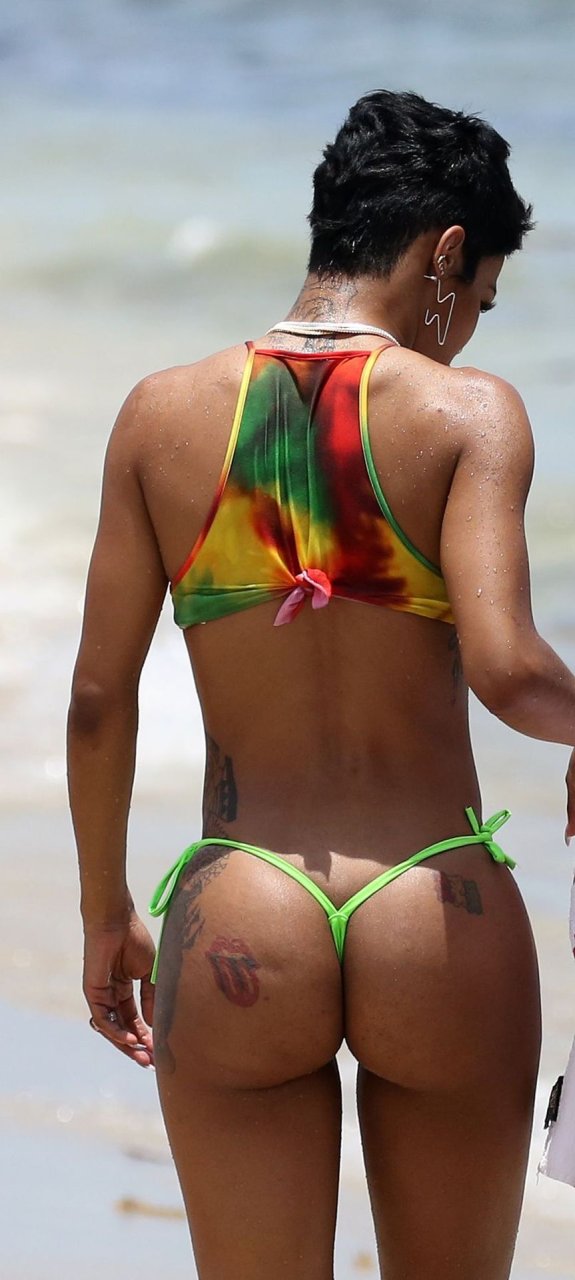 Omg, un fessier rond et un micro bikini mieux connu sous le nom de bikini brésilien. Ça lui va parfaitement, j'aimerais voir plus de photos d'elle à la plage, très sexy, ça m'a excité !!