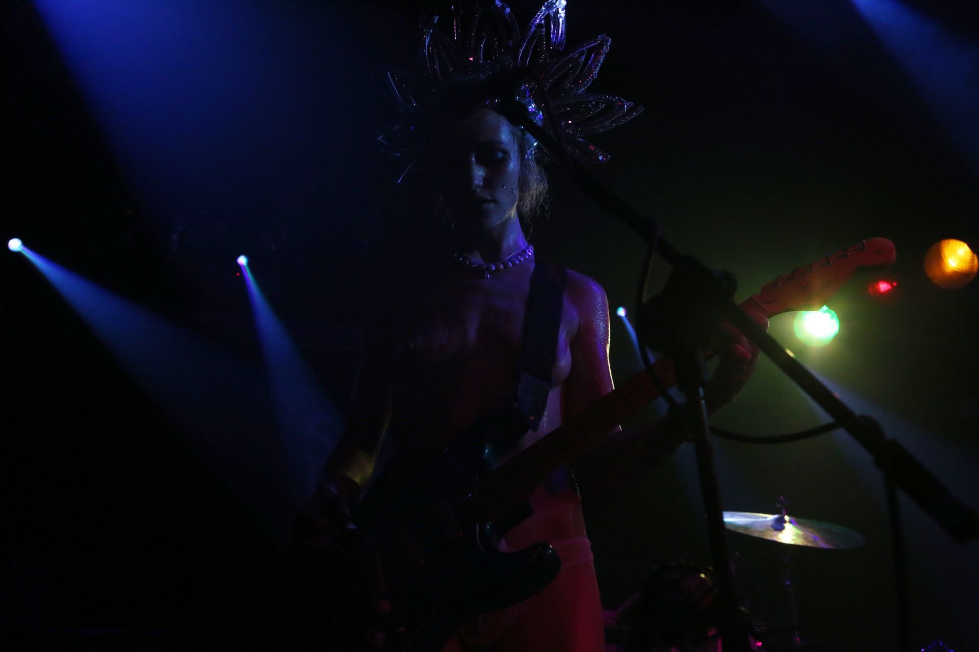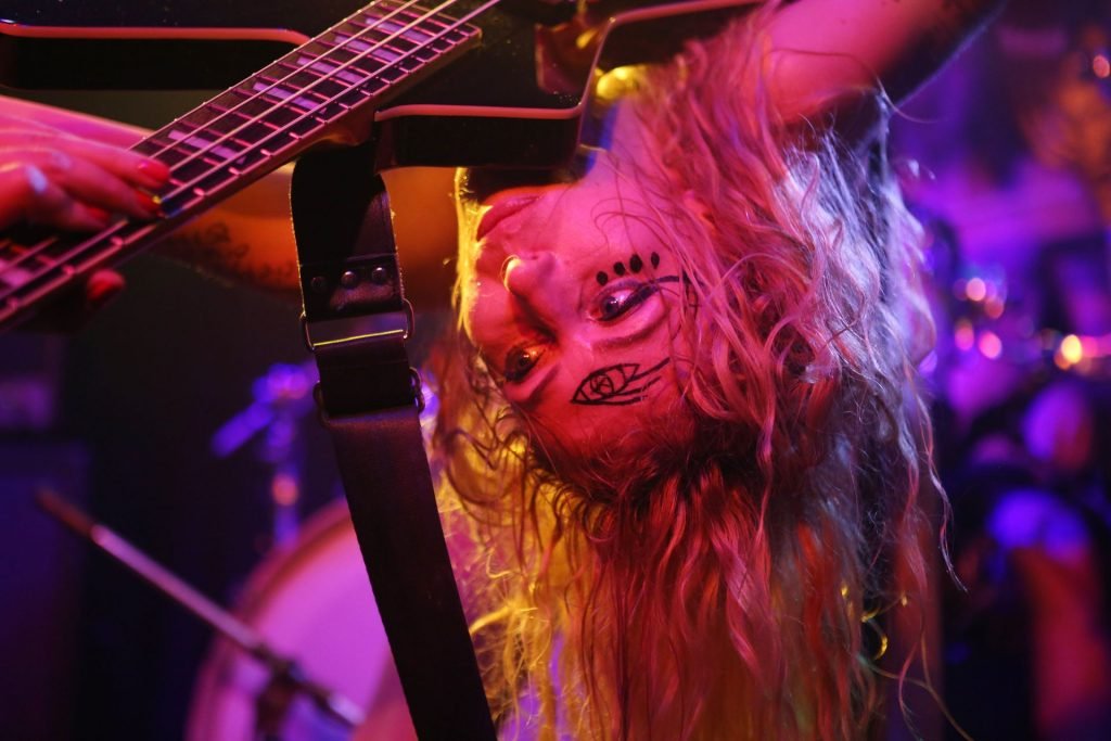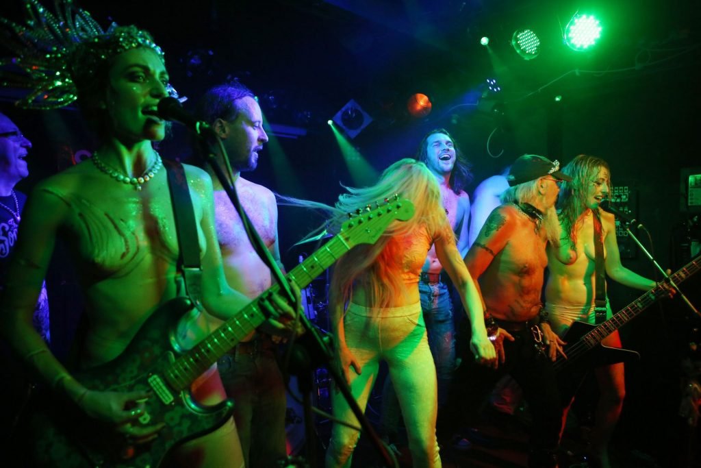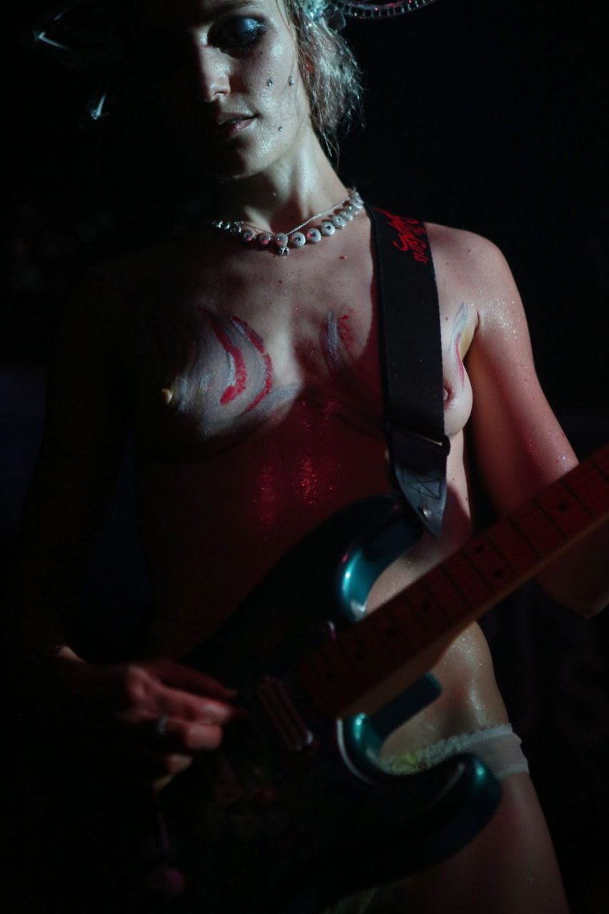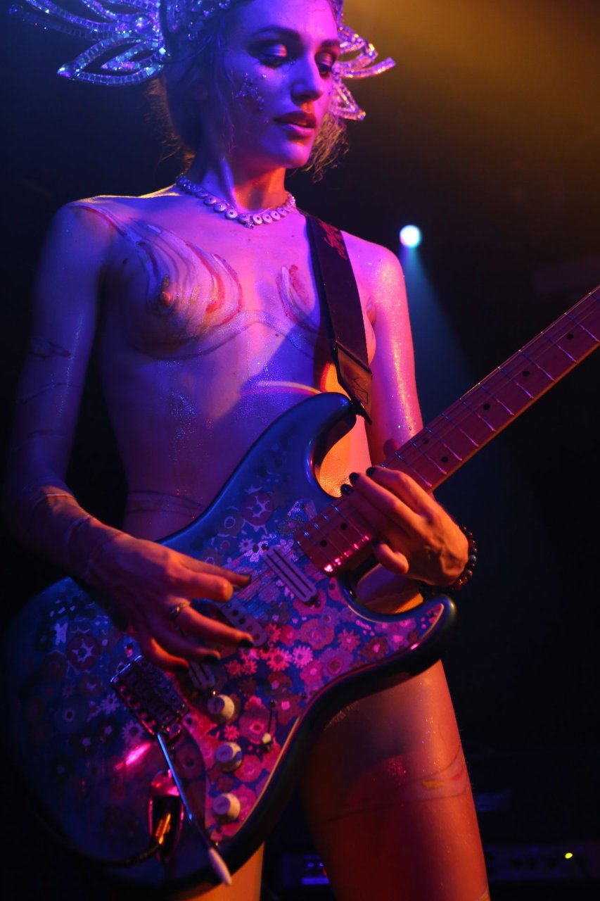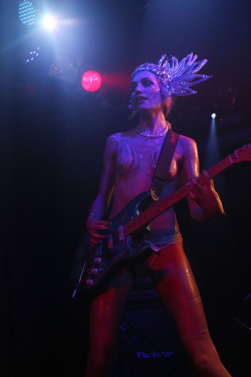The SoapGirls se produisent au Soundhouse à Leicester, le 30/08/2019. Millie (photo) et sa sœur Mie font de la musique avec des références punk, apparaissant presque nues alors qu’elles promeuvent une éthique basée sur la libération. Leur dernier album, Elephant in the Room, est disponible maintenant.