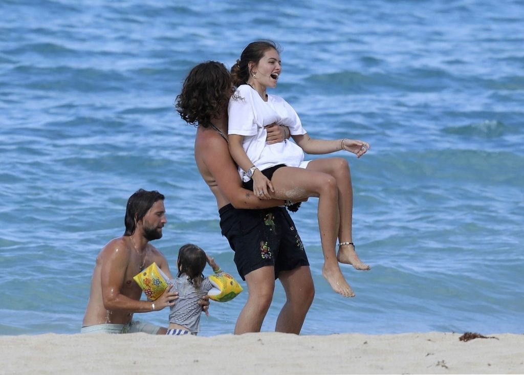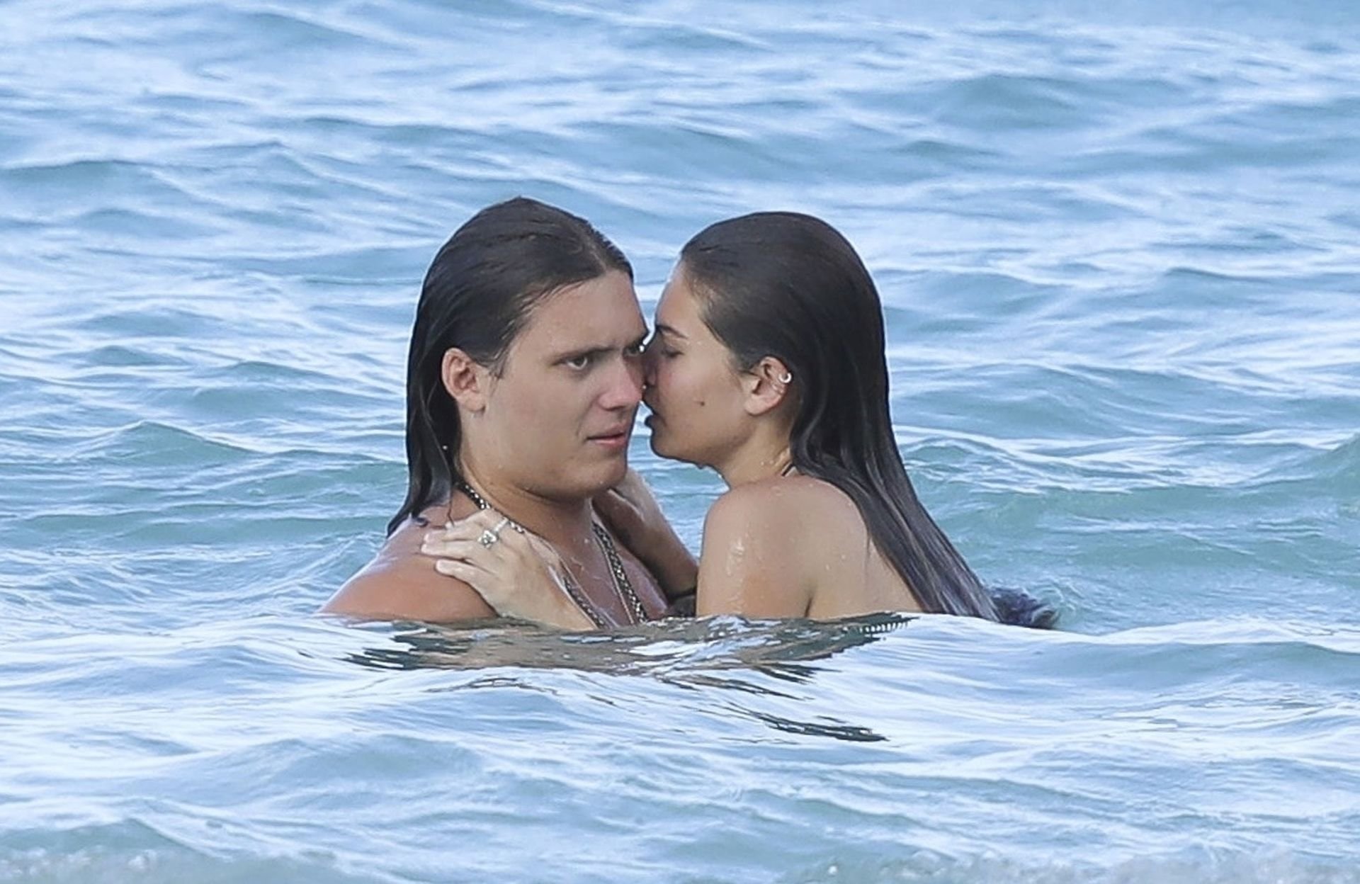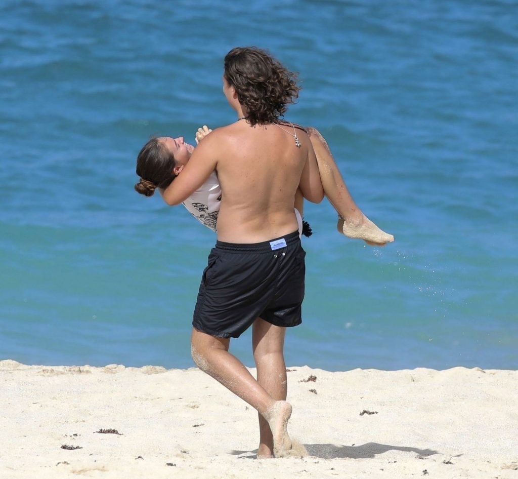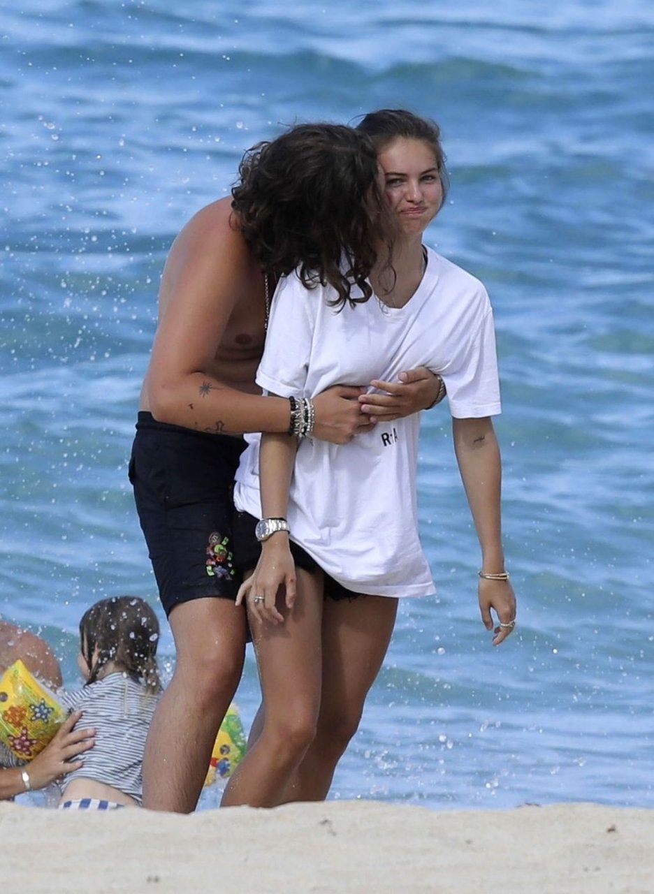 Sous le soleil des Caraïbes, la mannequin française de 18 ans Thylane Blondeau et son petit ami DJ Milane Meritte s’amusent sur les plages de St Barts et semblent très amoureux, affichant publiquement leur affection, 14/08/2019.