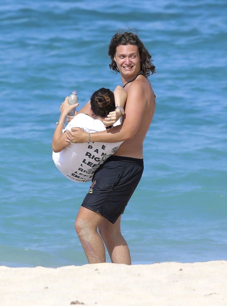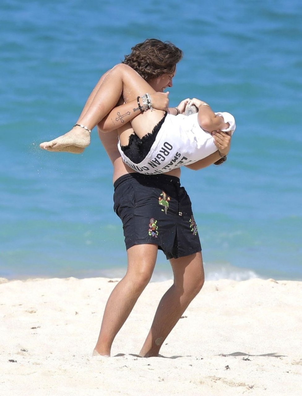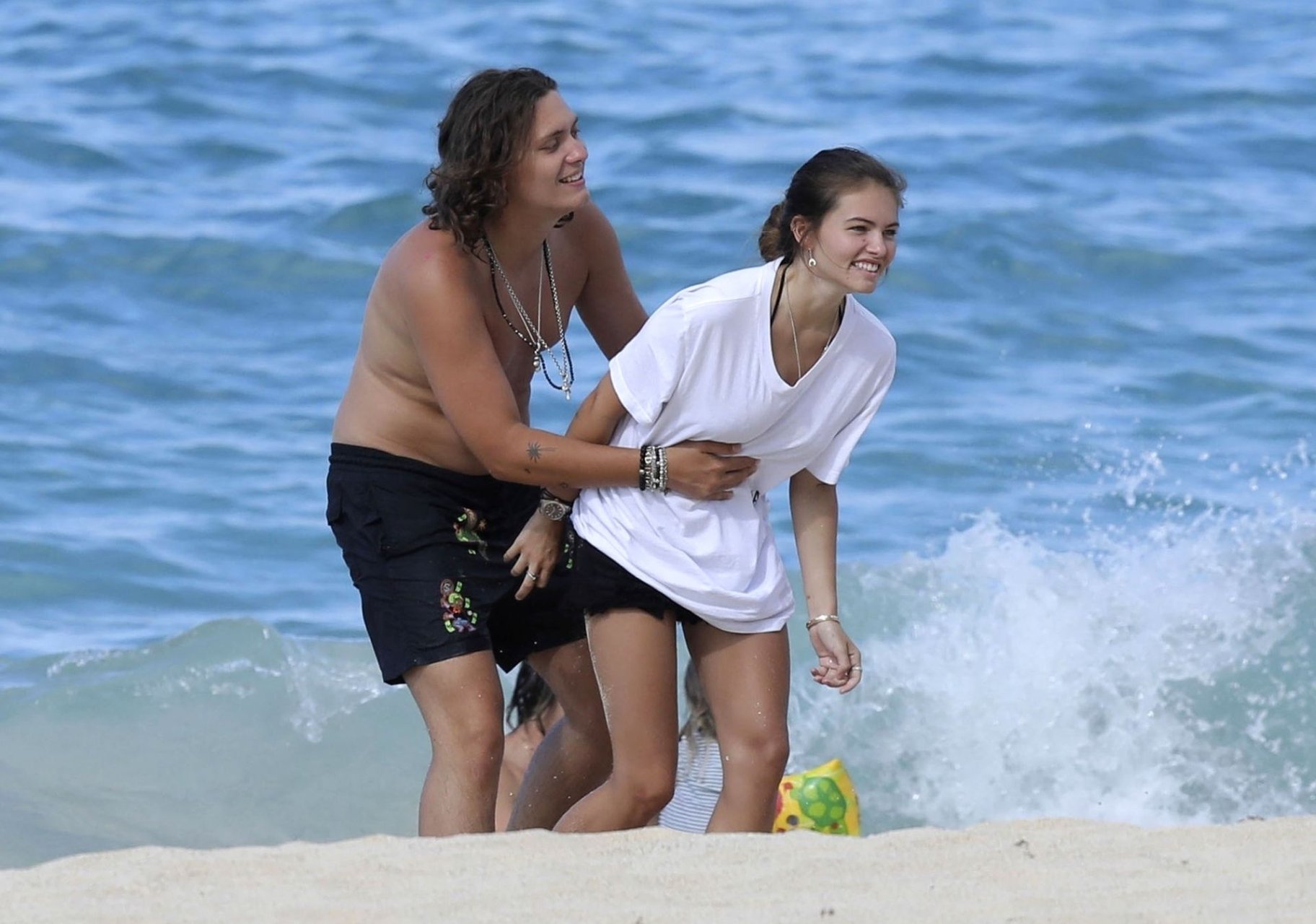 Sous le soleil des Caraïbes, la mannequin française de 18 ans Thylane Blondeau et son petit ami DJ Milane Meritte s’amusent sur les plages de St Barts et semblent très amoureux, affichant publiquement leur affection, 14/08/2019.