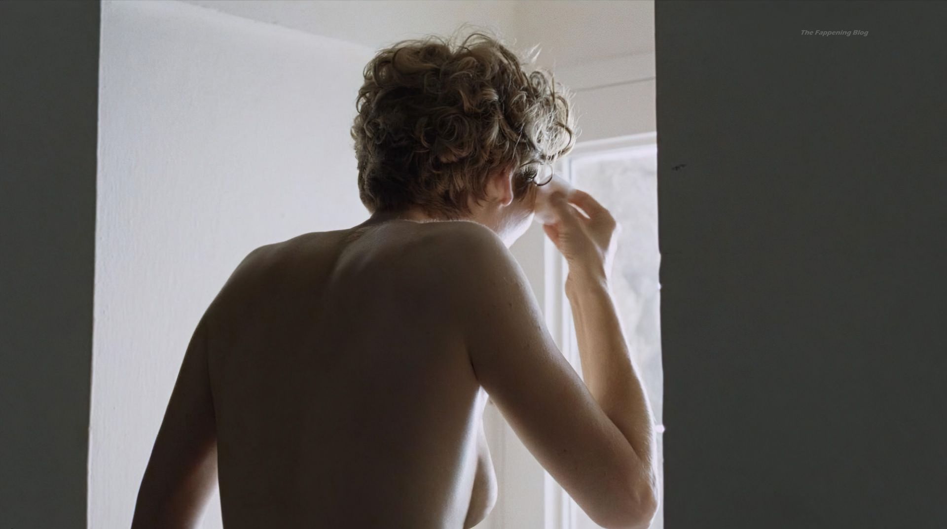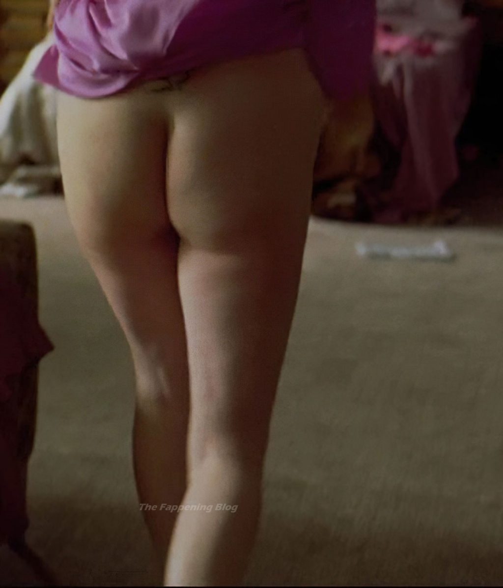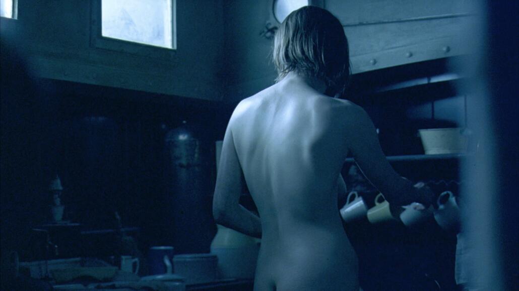 Tilda Swinton is standing naked in a kitchen while talking to a guy. Then giving us a full-frontal shot as she turns to face him and exposes her pussy bush. This version shows a bit more nudity, particularly when we get to see her nude ass at the beginning of the scene.