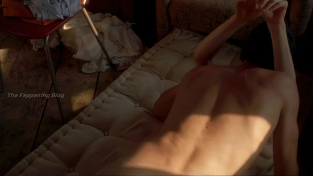 Tilda Swinton is nude as she rides a guy in bed, then being flipped underneath him. She then gives us a look at her breasts and bush as she gets out of bed and walks toward the camera.