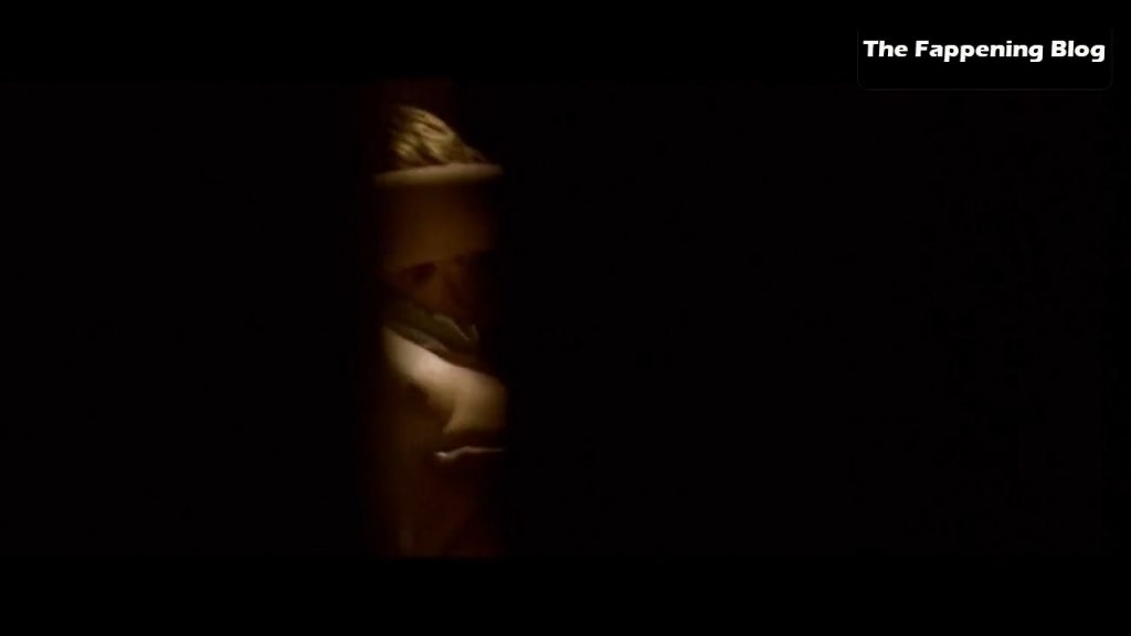 Tilda Swinton vue nue à travers une porte entrouverte alors qu’elle est allongée à côté d’un homme qui a des relations sexuelles avec elle par derrière, ses seins étant visibles par moments.
