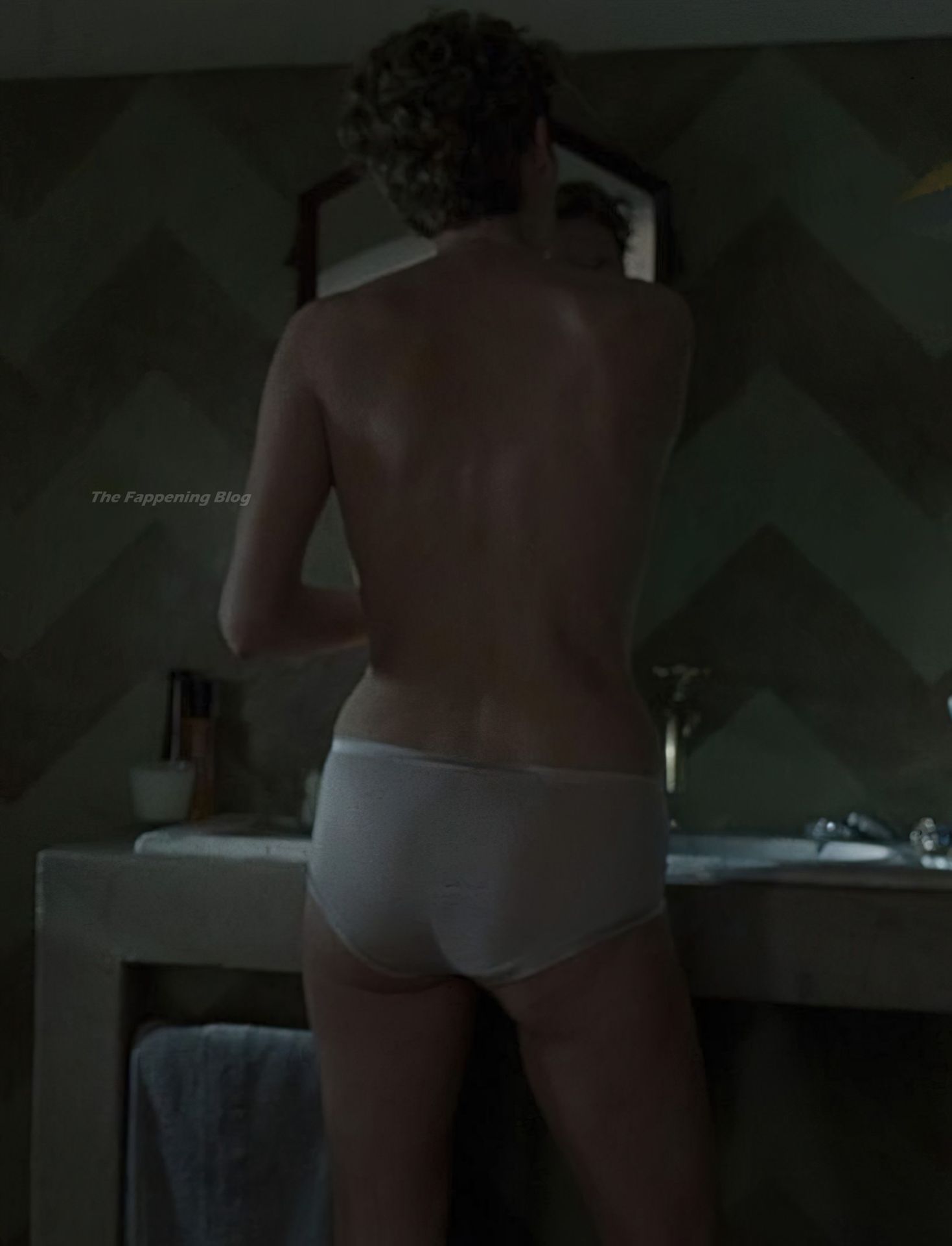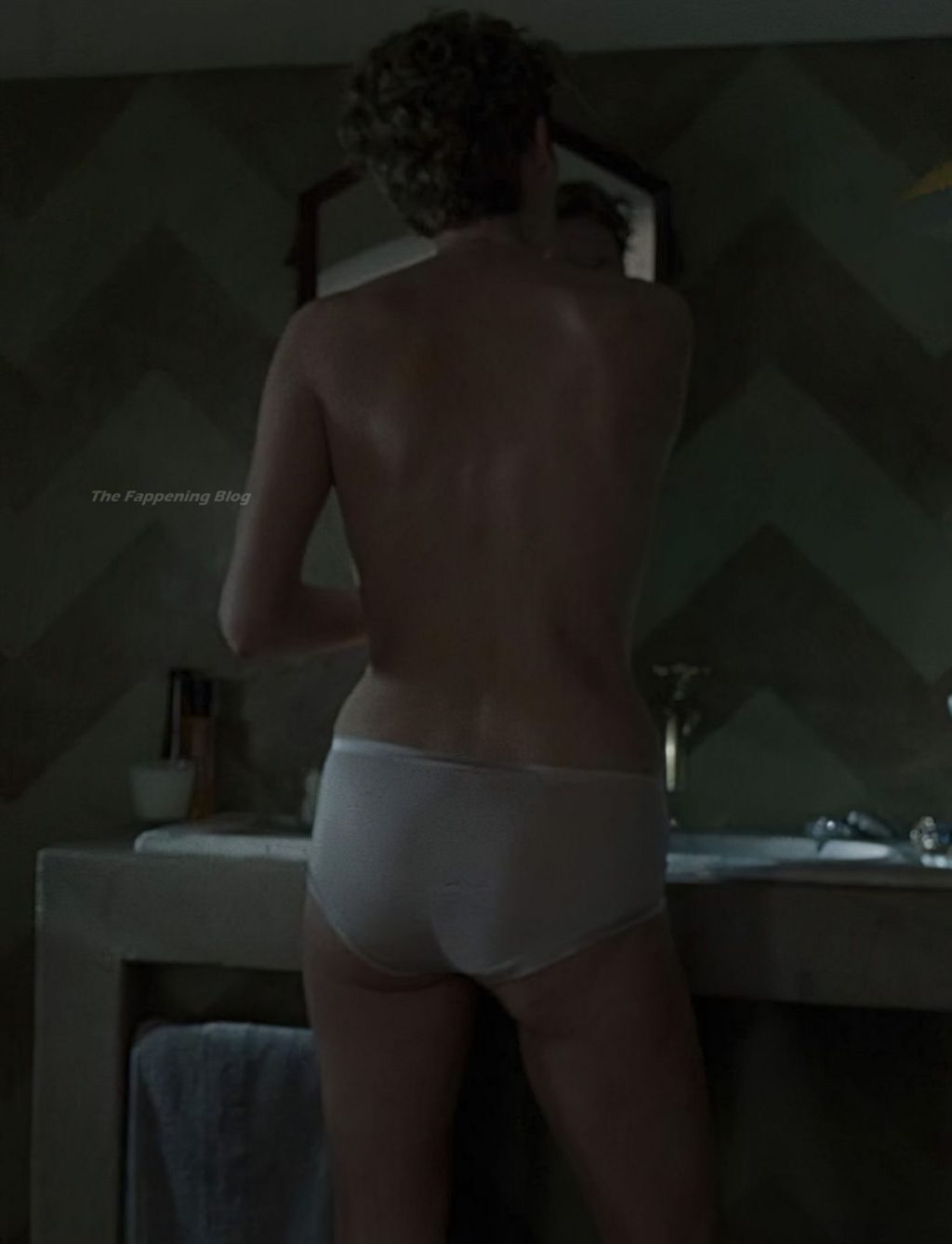 Tilda Swinton is taking off her panties to reveal her bush and then sitting on the side of a bathtub giving us a good view between her legs as she talks with Amy Madigan.