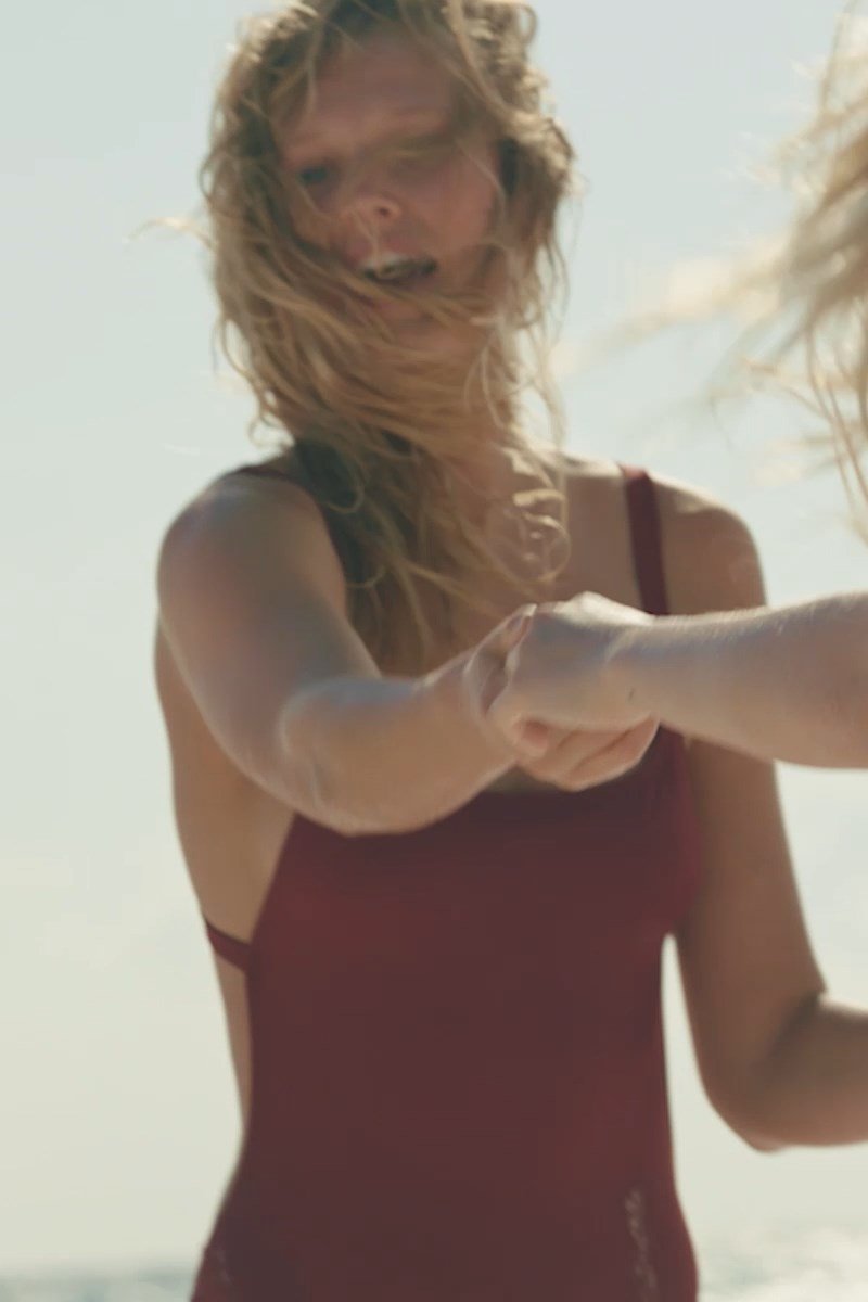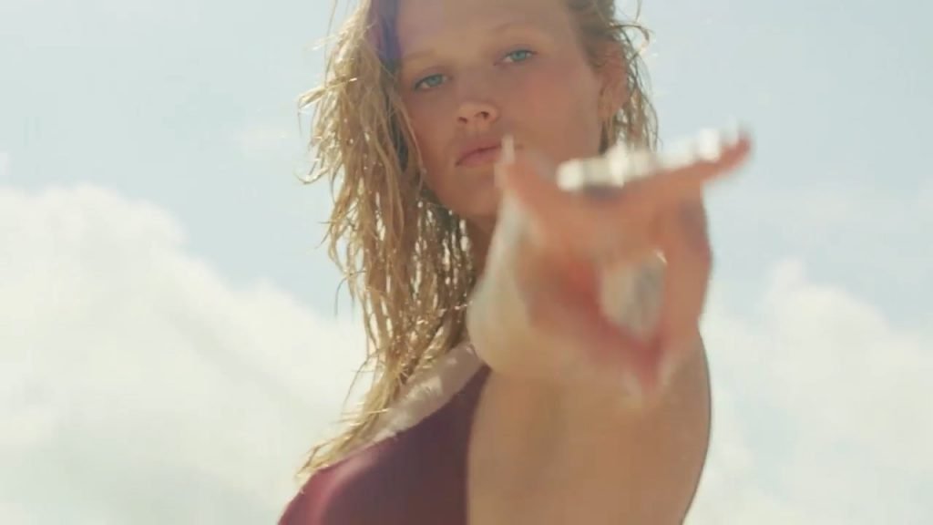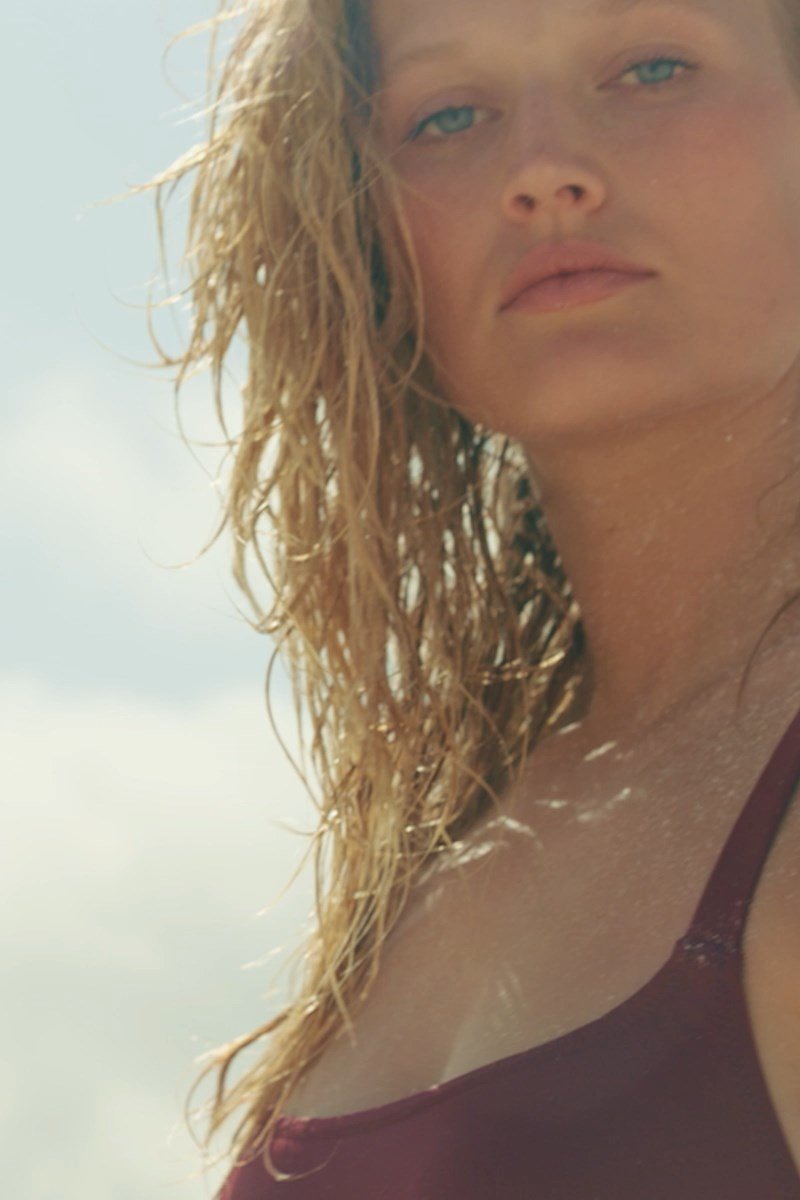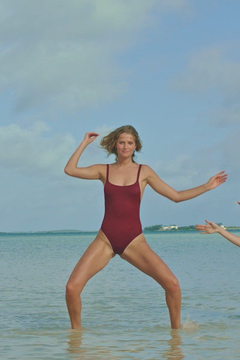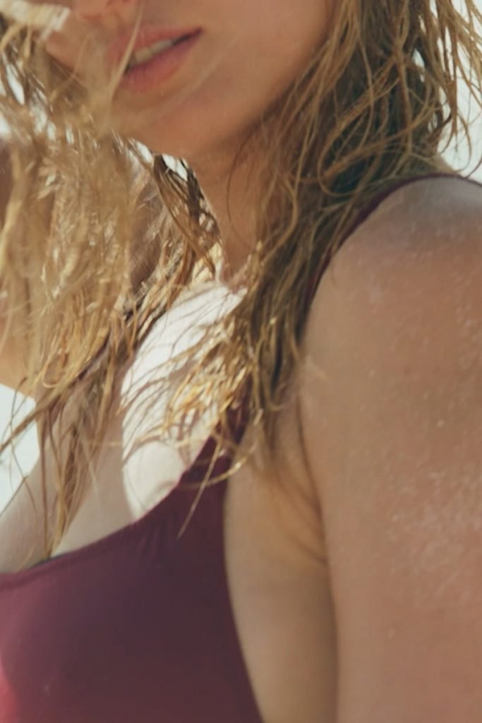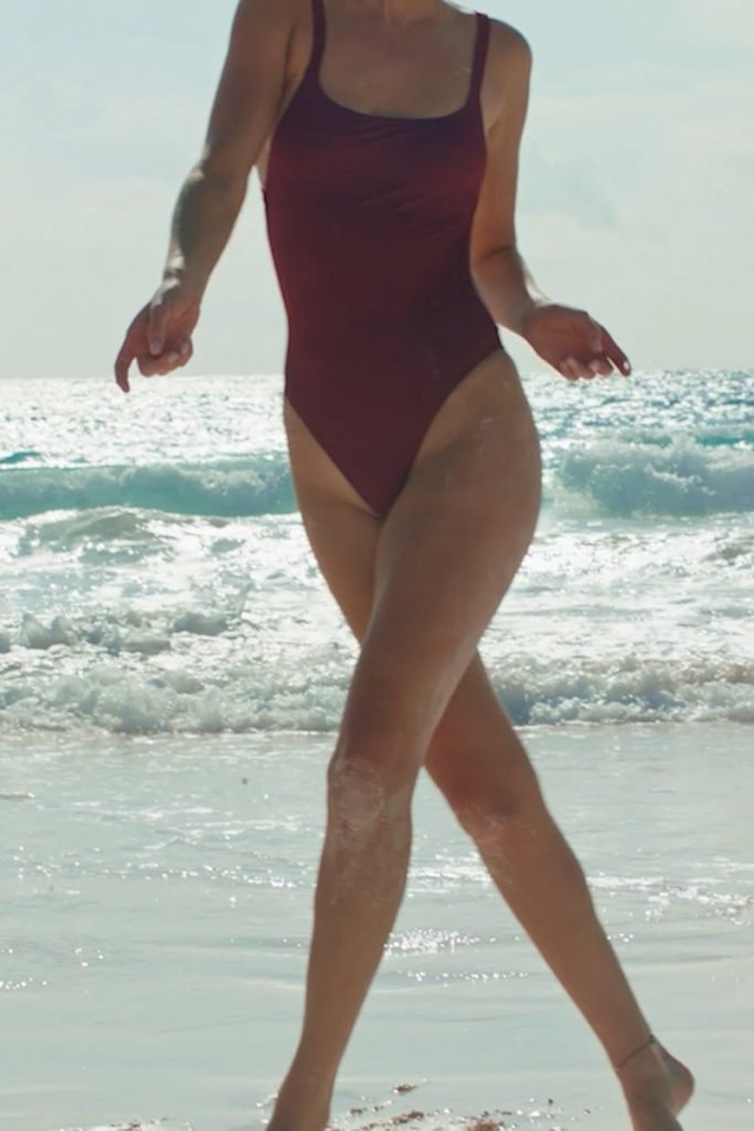 Toni Garrn pose pour la séance photo de plage Solid & Striped (2018). Antonia (Toni) Garrn est un mannequin de mode originaire d’Allemagne. Âge – 25 ans.