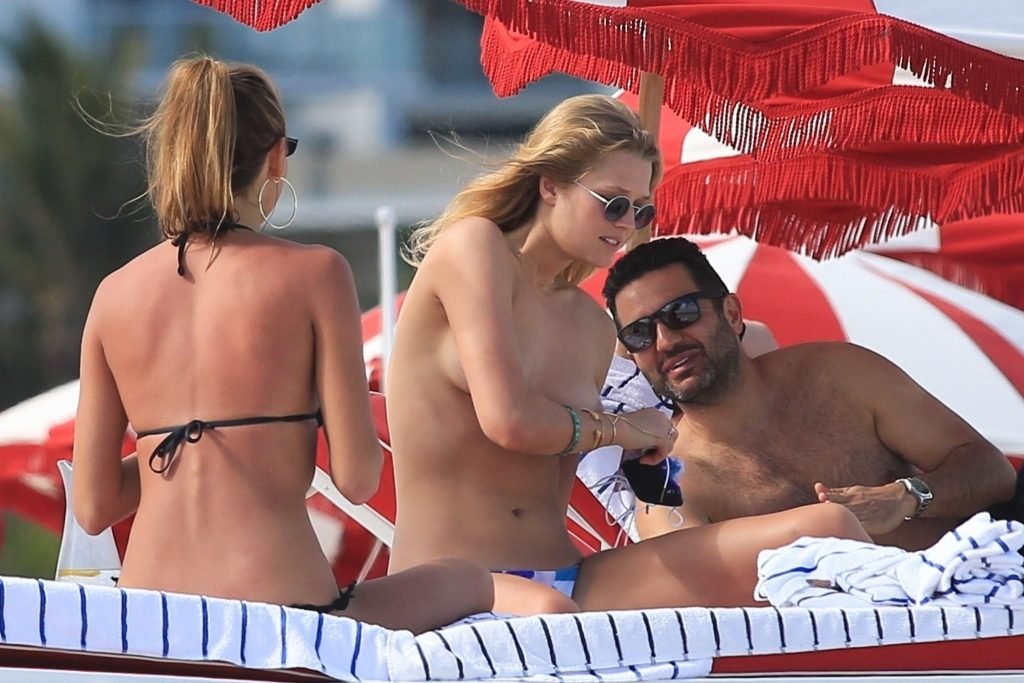 Les mannequins Toni Garrn, 25 ans, et Alina Baikova, 28 ans, s’amusent à Miami avec des amis pendant les vacances de printemps, le 01/04/2018. Garrn s’est déshabillée et a un peu attiré l’attention d’un ami appréciatif, avant d’aller se baigner dans l’océan. Si vous avez manqué le post précédent, jetez un œil.