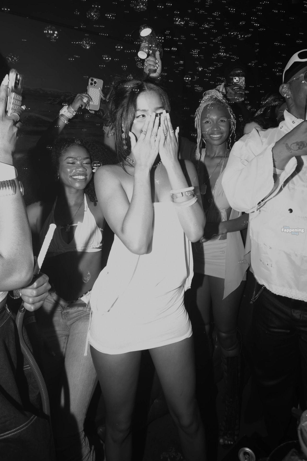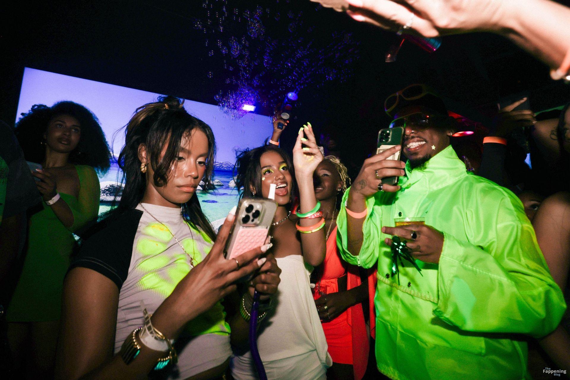 La chanteuse sud-africaine et superstar Tyla a été vue en train de célébrer son 24e anniversaire avec style au Tavares à Hollywood. La jeune fille d’anniversaire a ébloui dans une tenue blanche chic, avec des accessoires et un maquillage vert néon, profitant de la soirée avec des amis dans ce lieu animé.