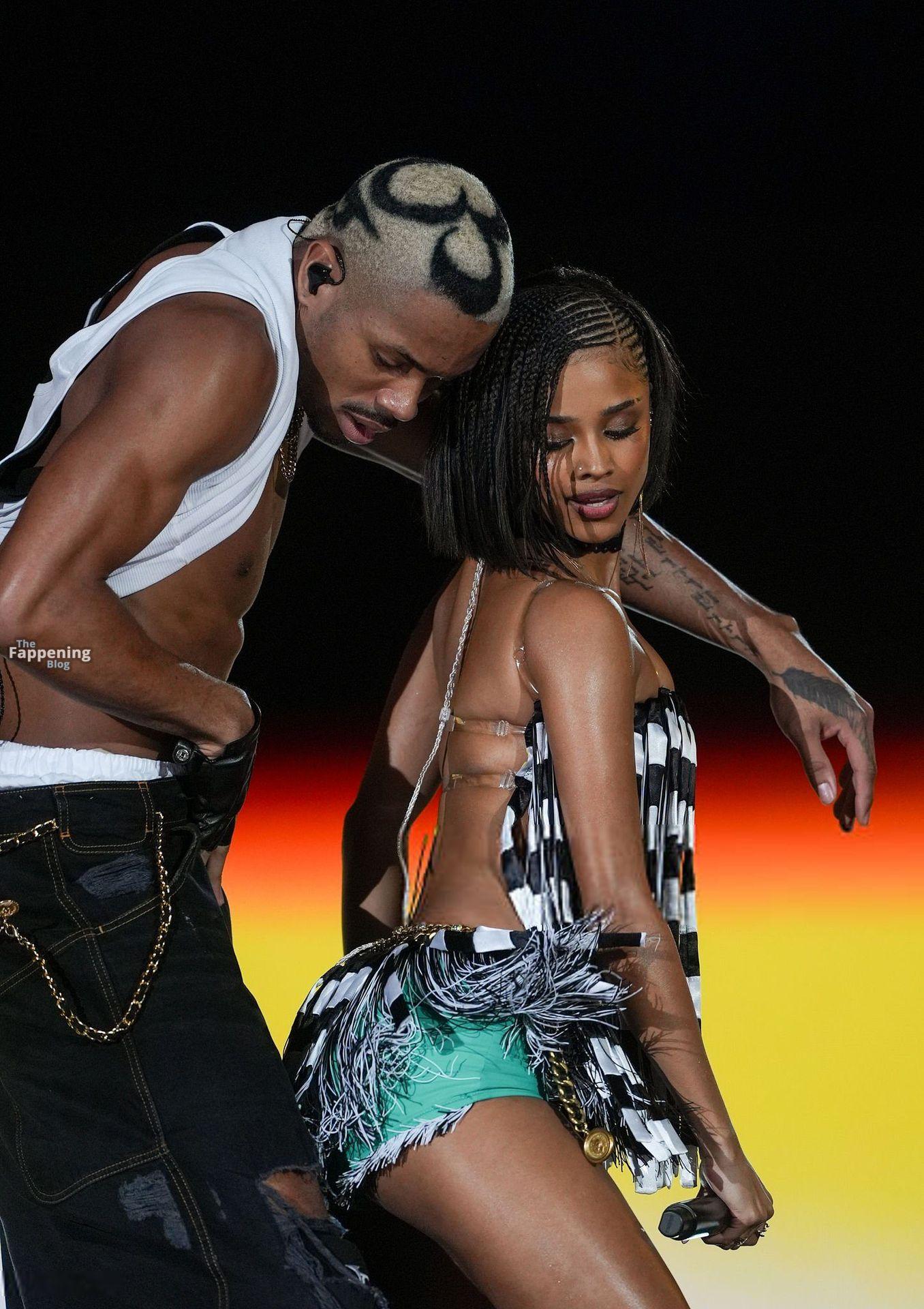 Tyla était sexy au Global Citizen Festival à NYC, portant une robe à franges sur un short court turquoise. Elle a montré ses jambes et ses fesses lors d’une performance.