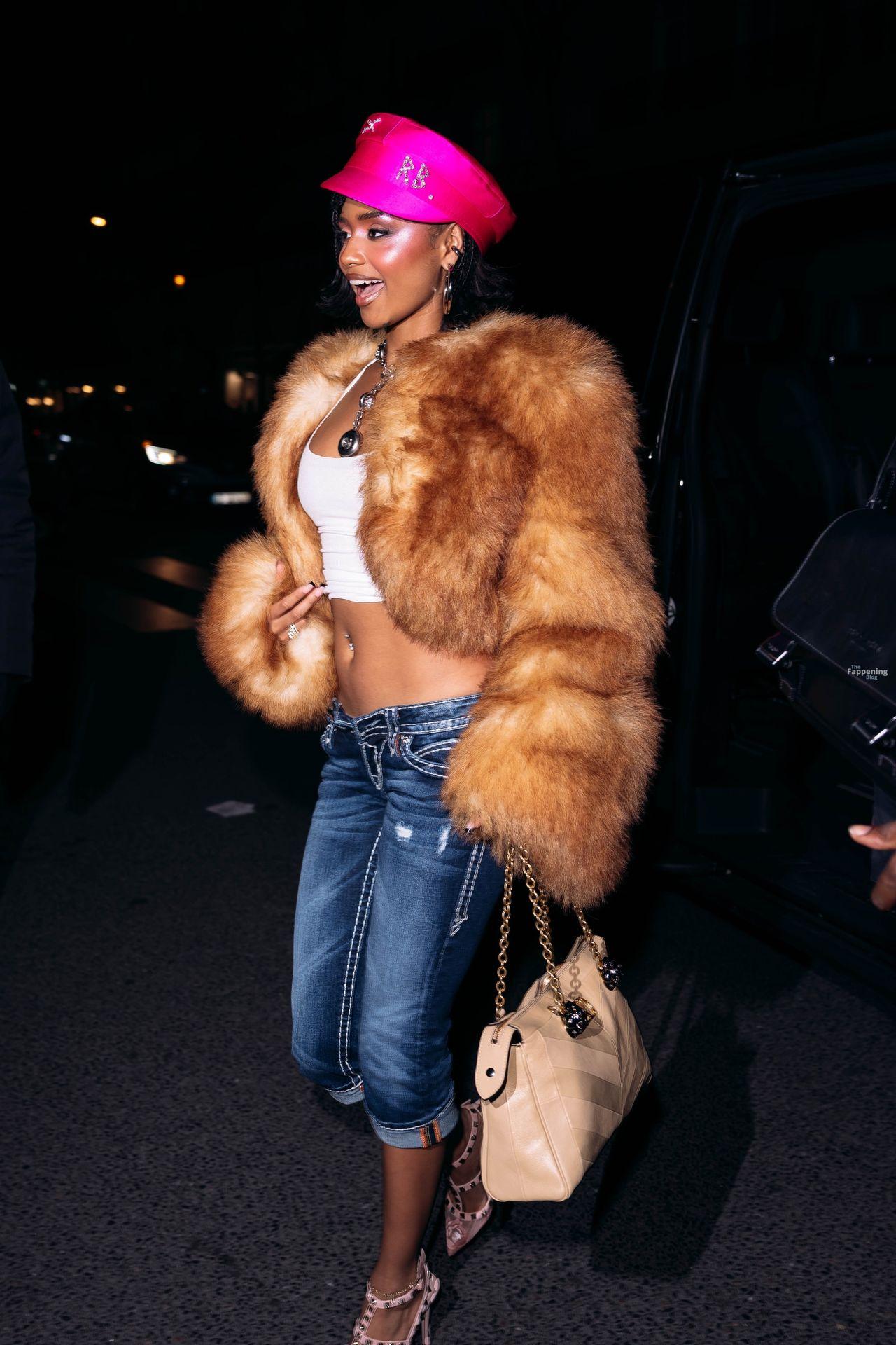 Tyla illumine la nuit en sortant pour un événement Valentino, affichant son look audacieux et avant-gardiste avec un chapeau rose de Ruslan Baginskiy.