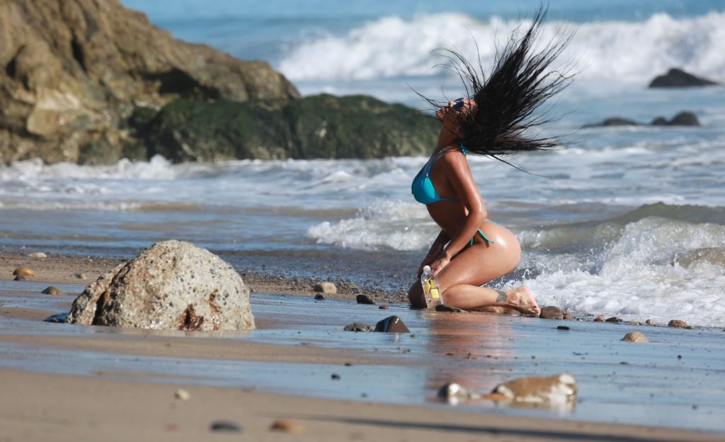 Le mannequin Val Fit fait sensation dans l’océan Pacifique lors d’une séance photo sexy pour 138 Water à Malibu, le 19/12/2017.