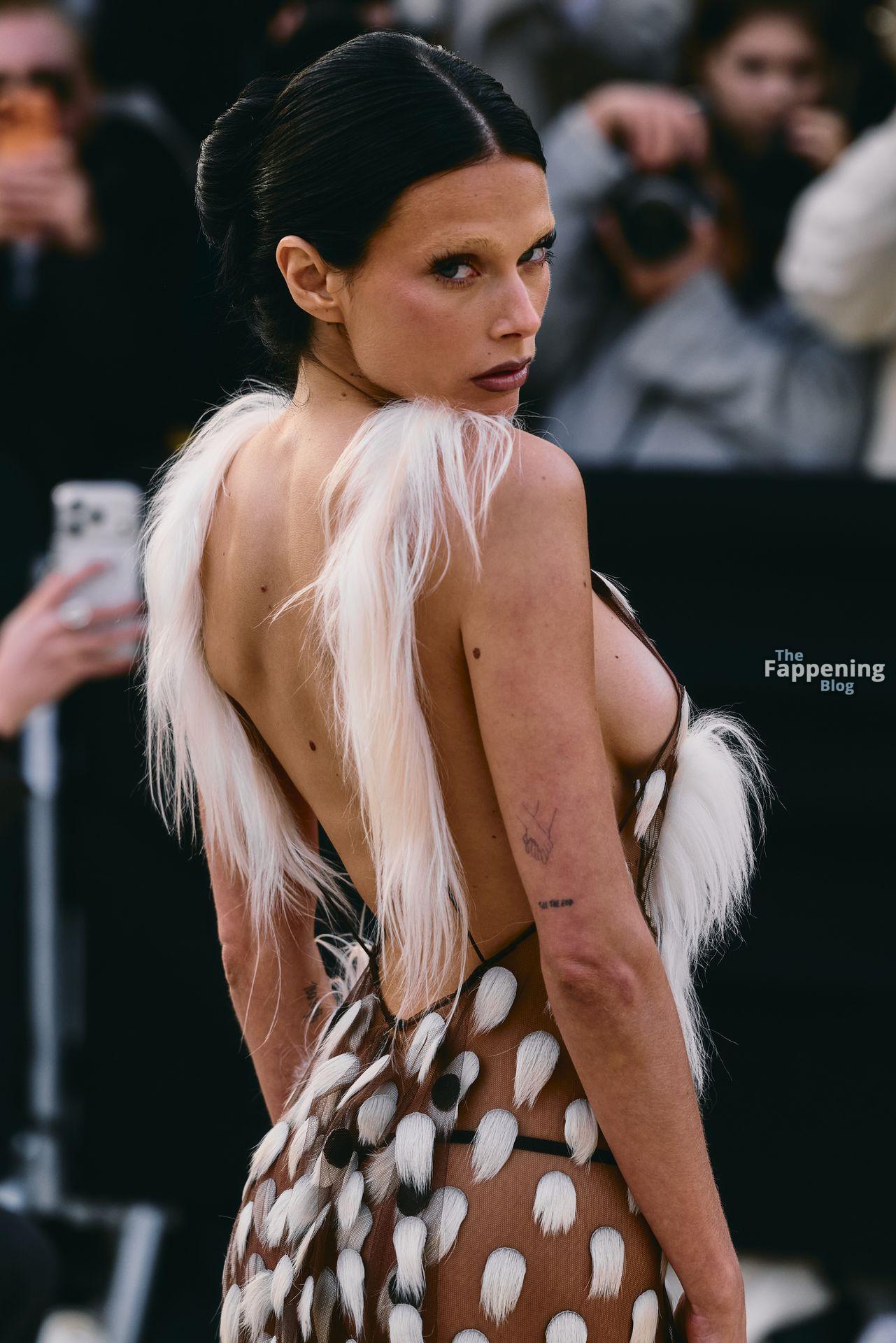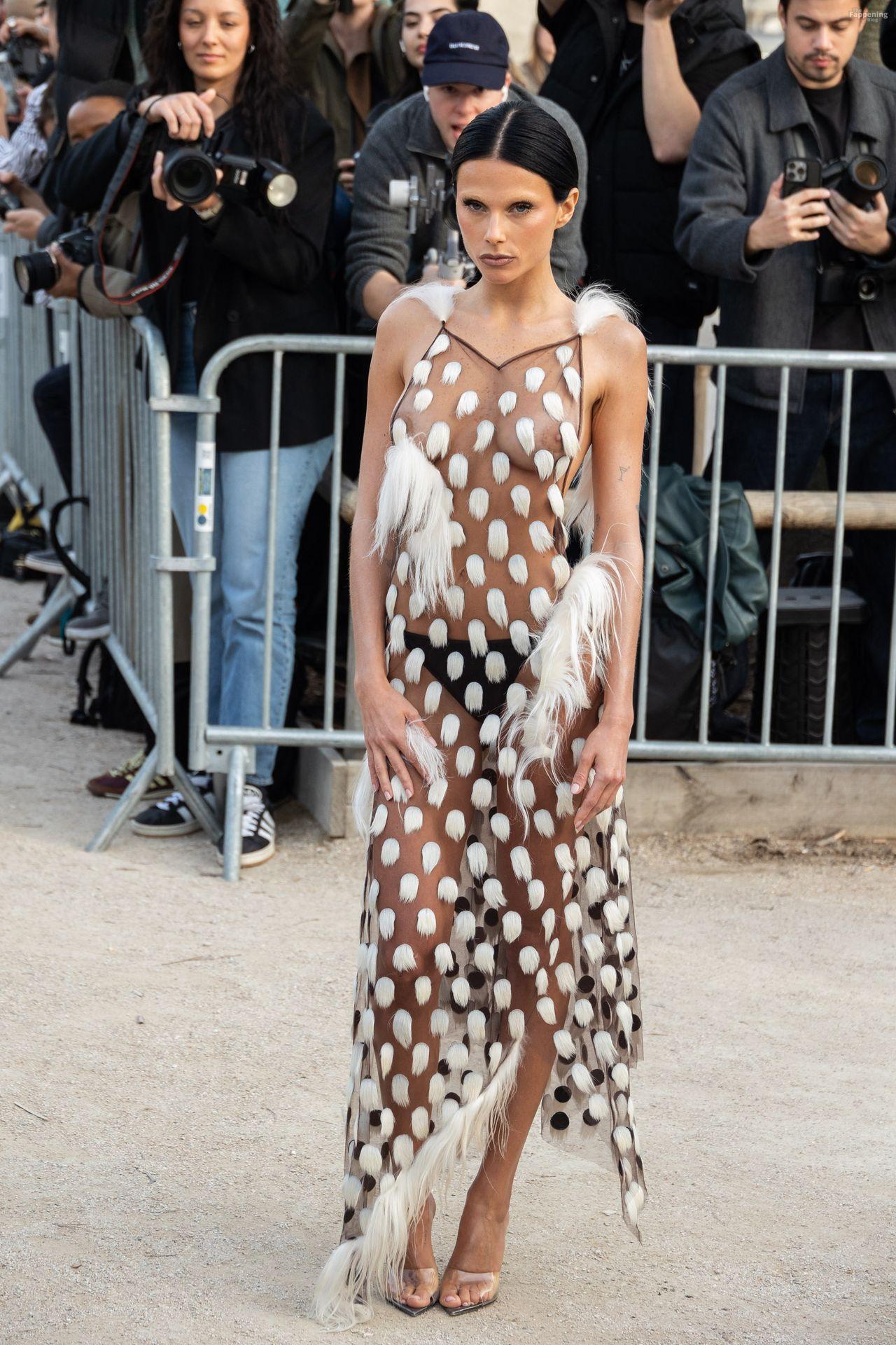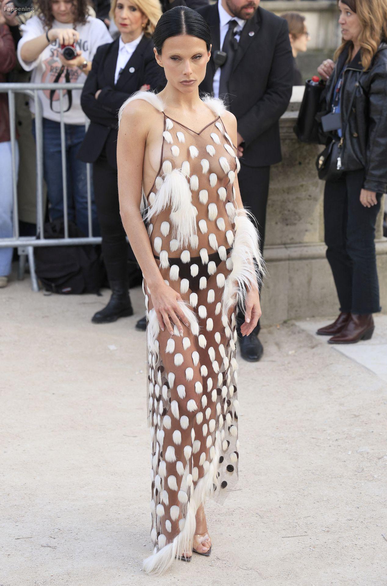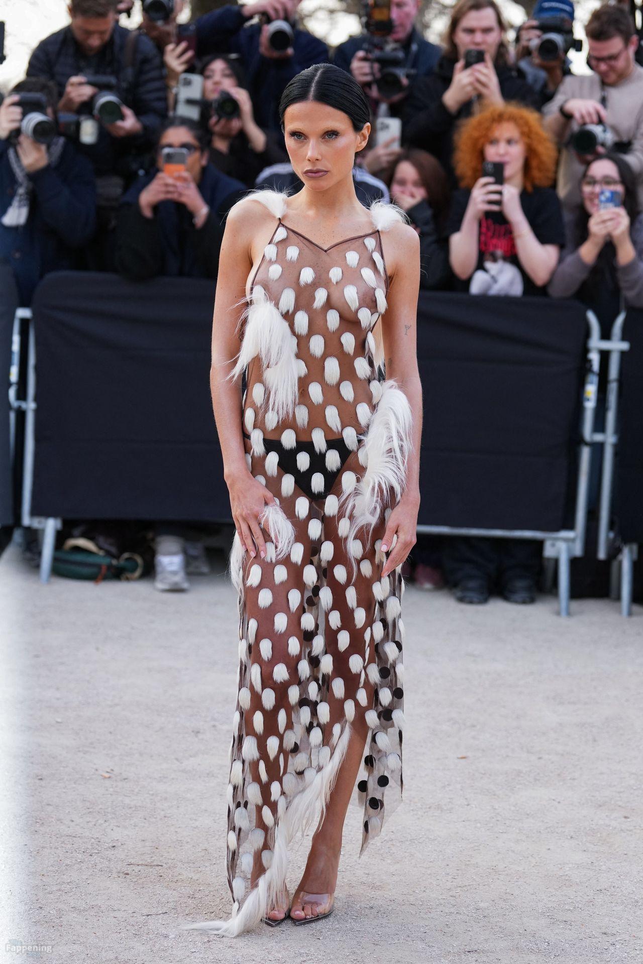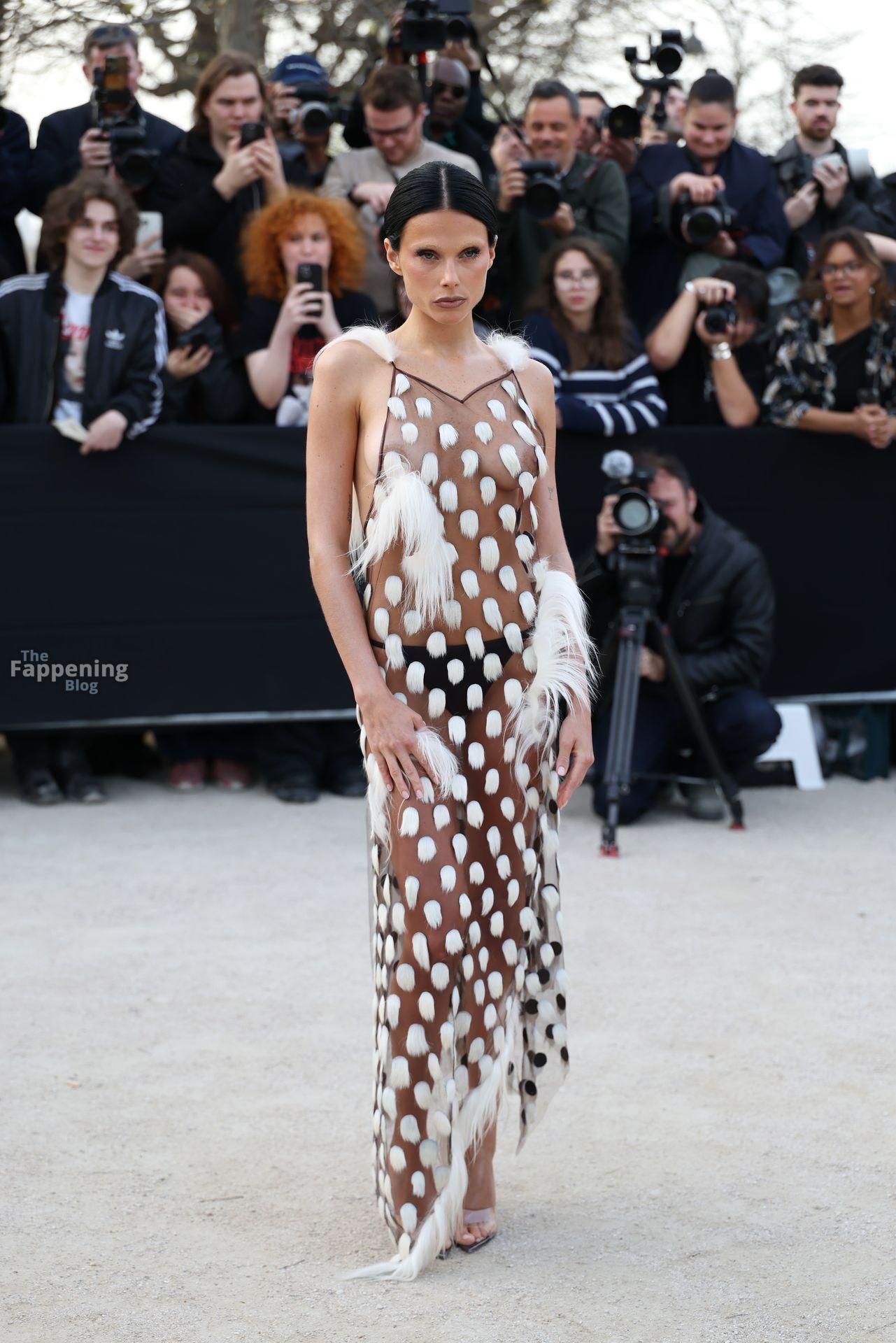 L’actrice, mannequin et chanteuse argentine Valentina Zenere est photographiée à son arrivée au défilé Schiaparelli lors de la Fashion Week à Paris, France.