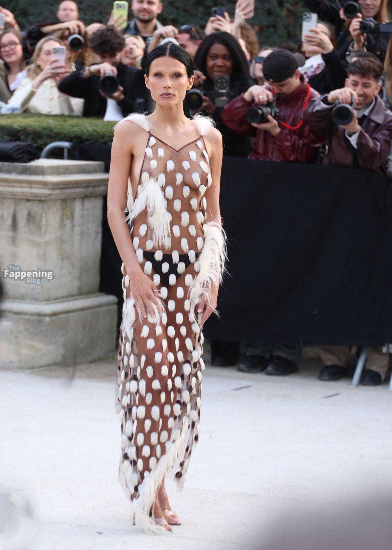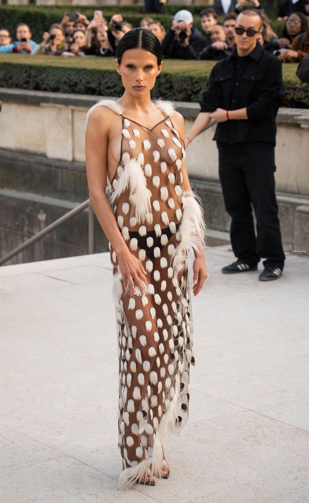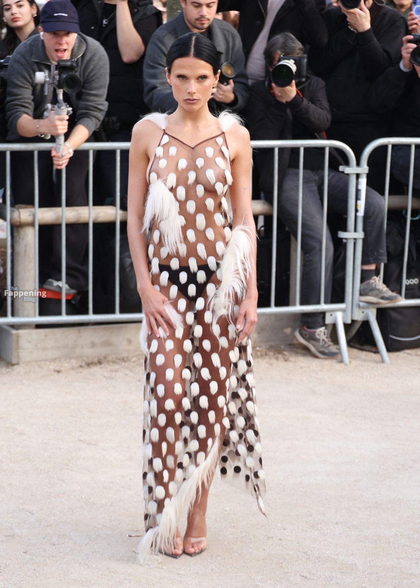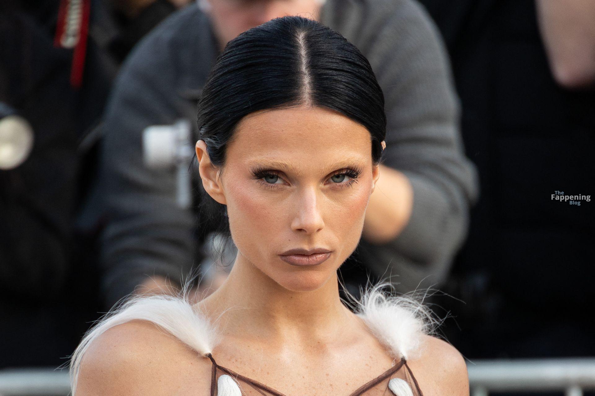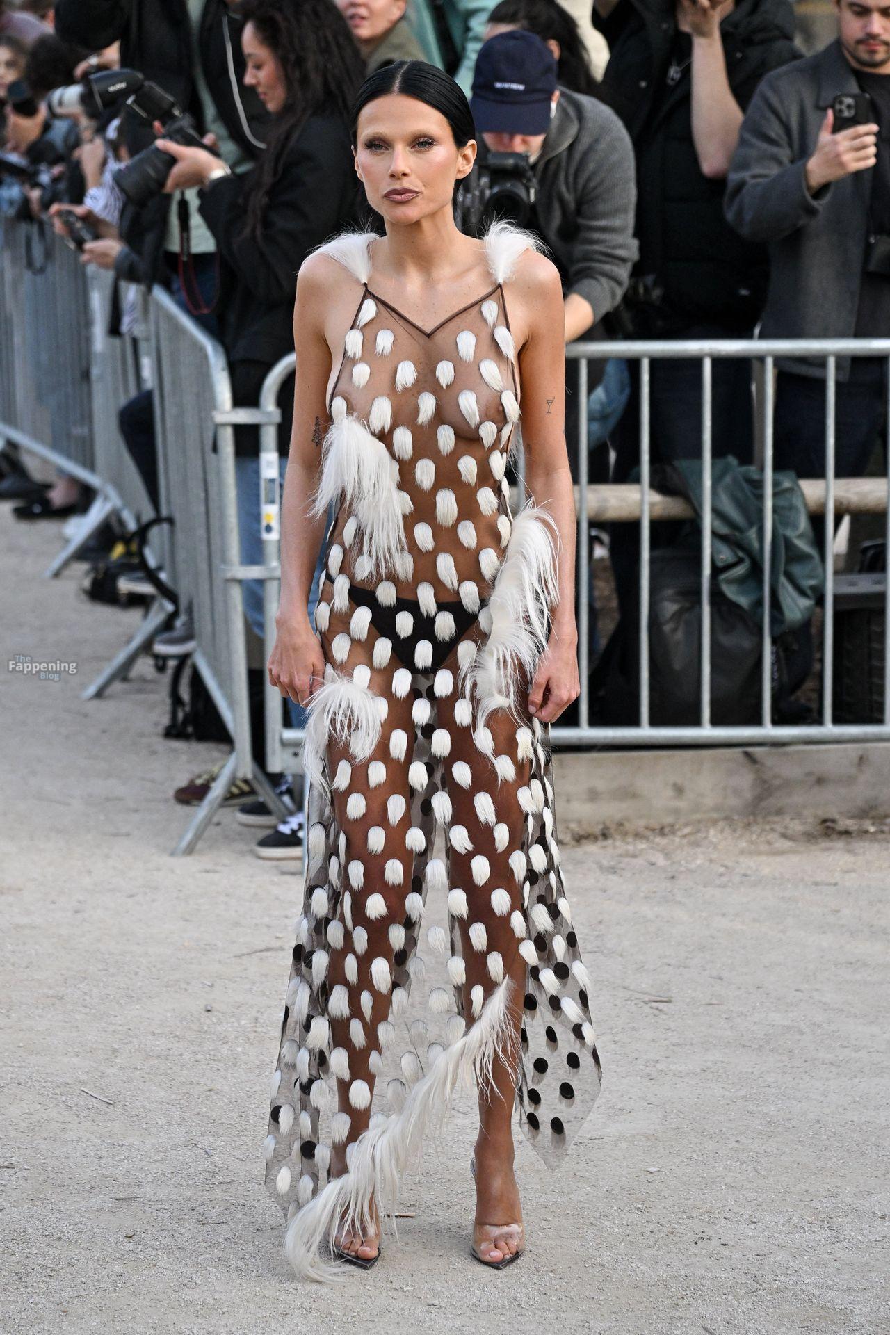 L’actrice, mannequin et chanteuse argentine Valentina Zenere est photographiée à son arrivée au défilé Schiaparelli lors de la Fashion Week à Paris, France.