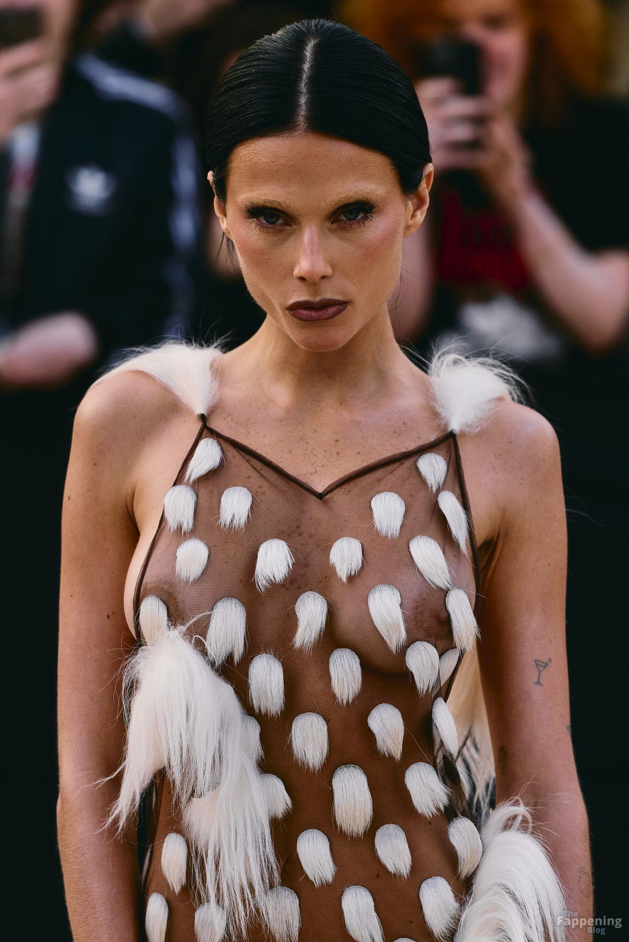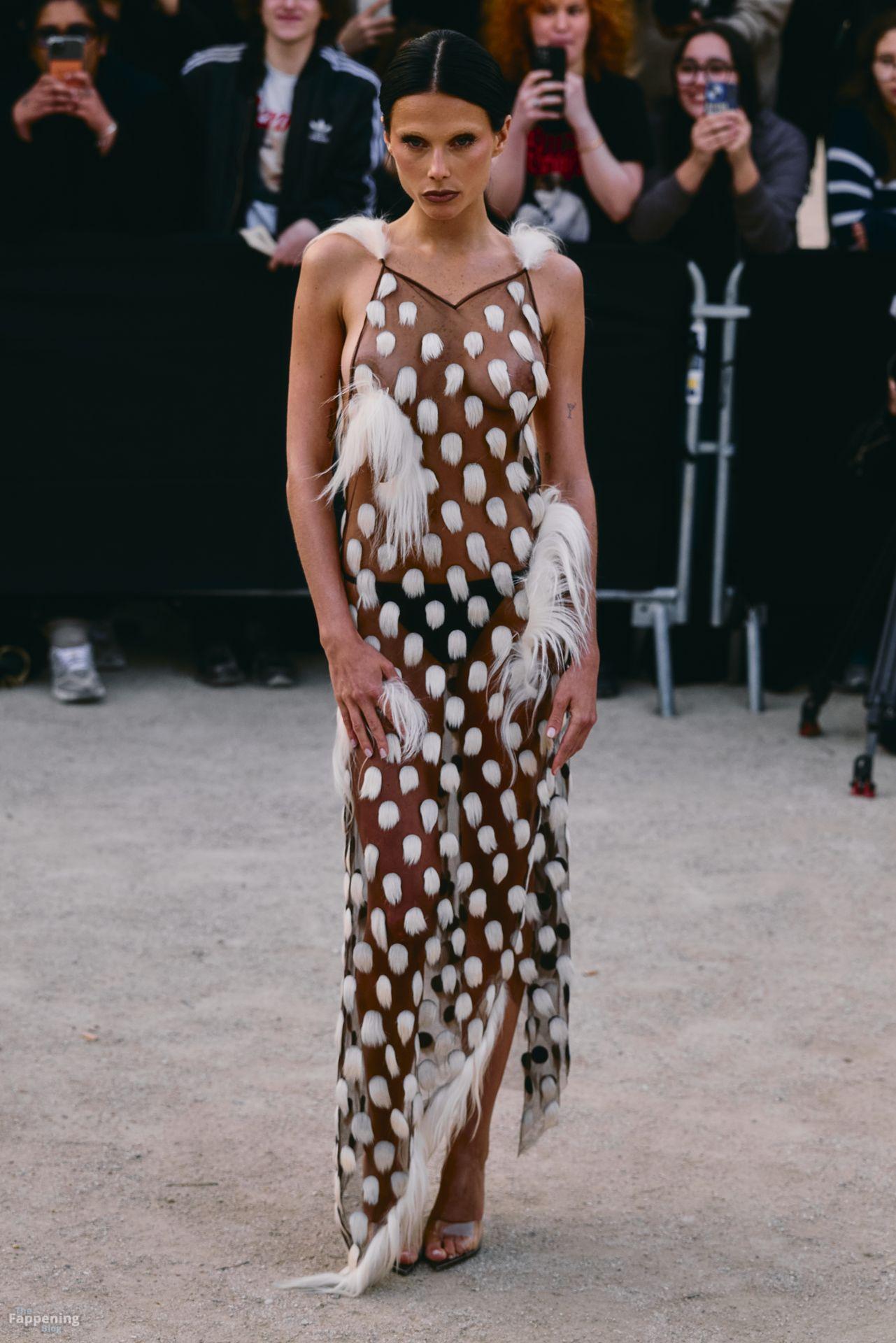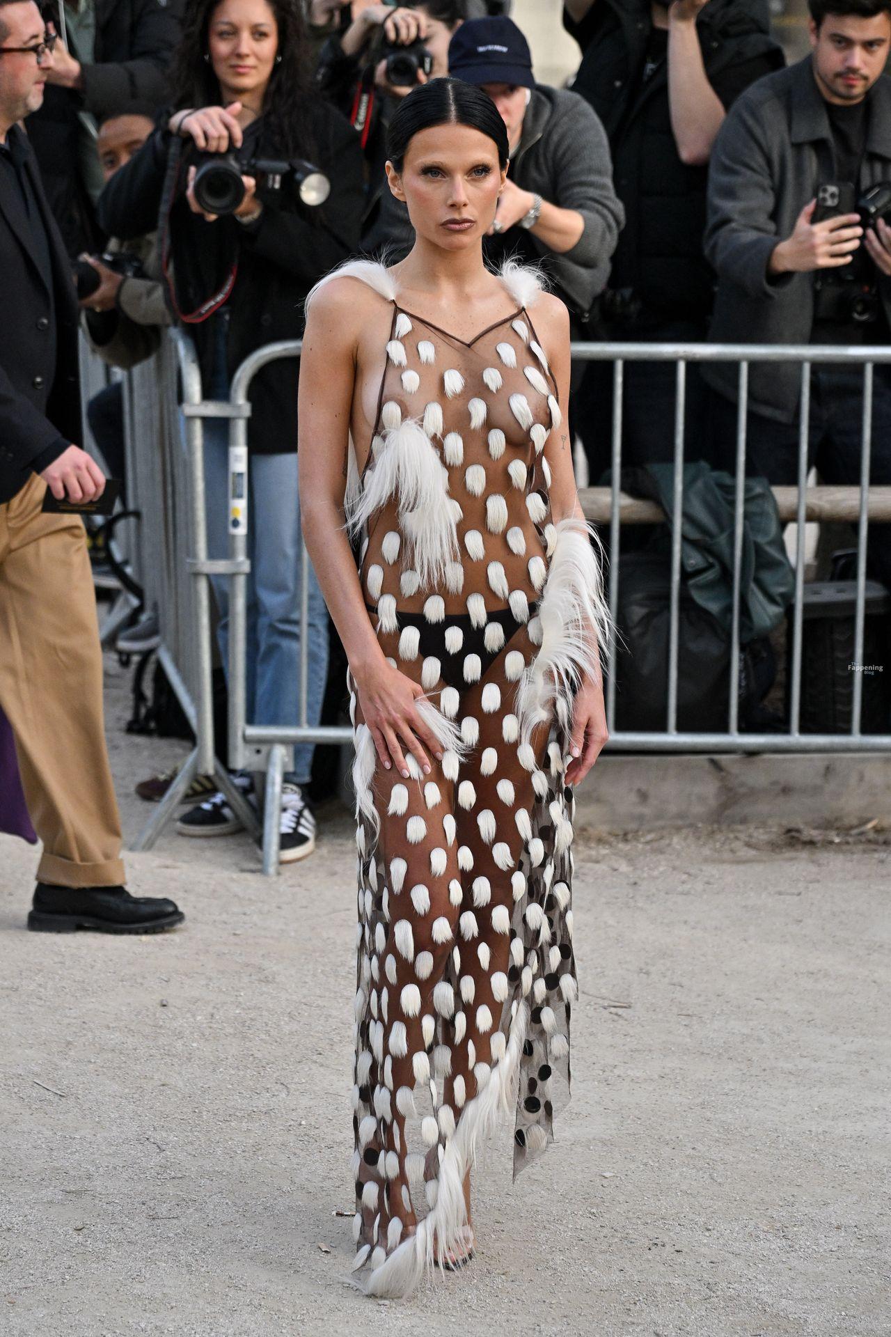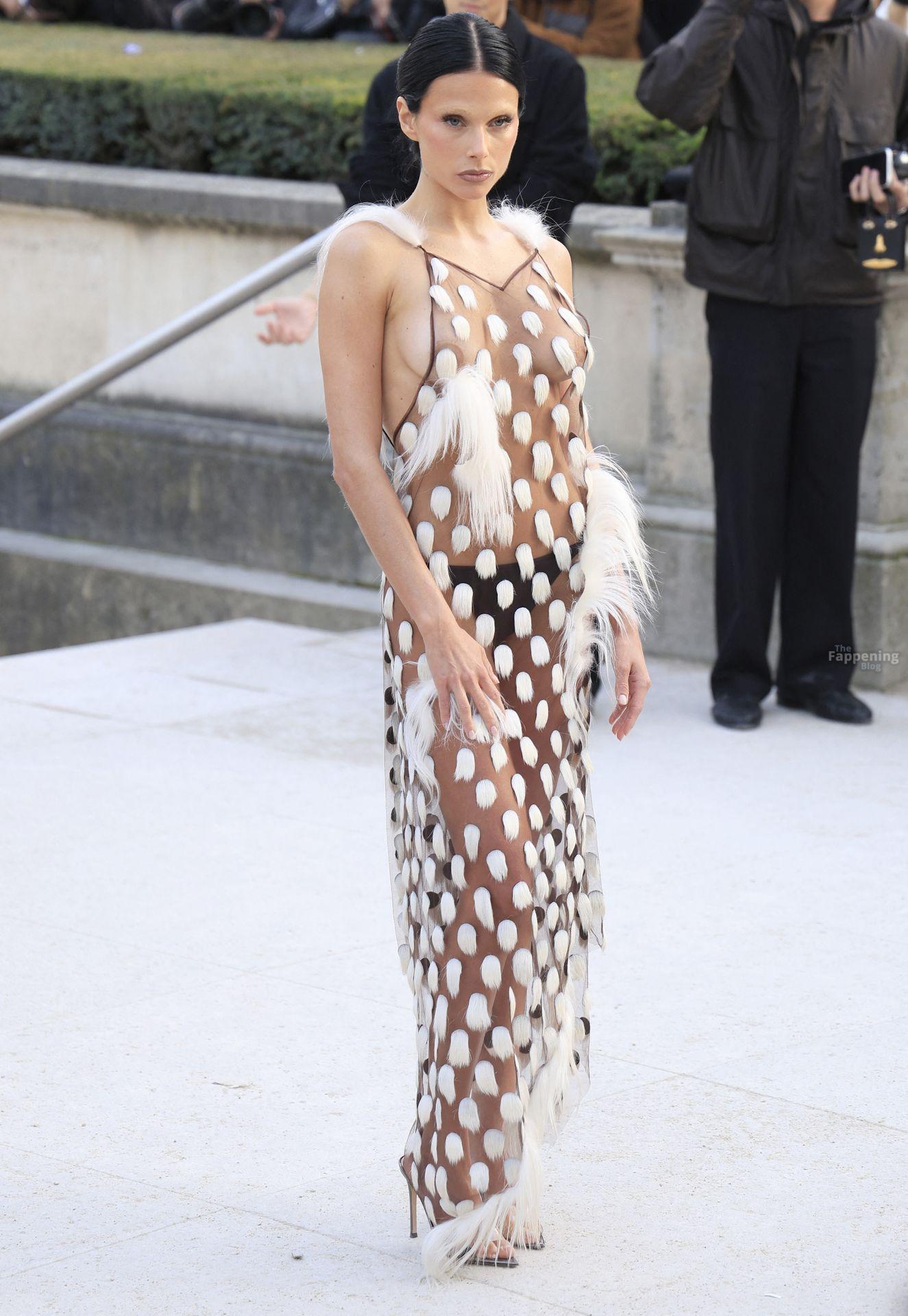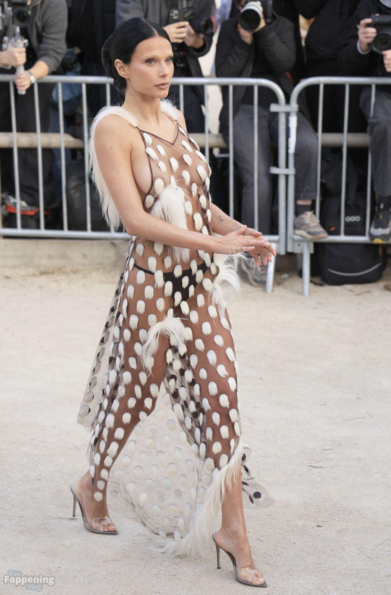 L’actrice, mannequin et chanteuse argentine Valentina Zenere est photographiée à son arrivée au défilé Schiaparelli lors de la Fashion Week à Paris, France.