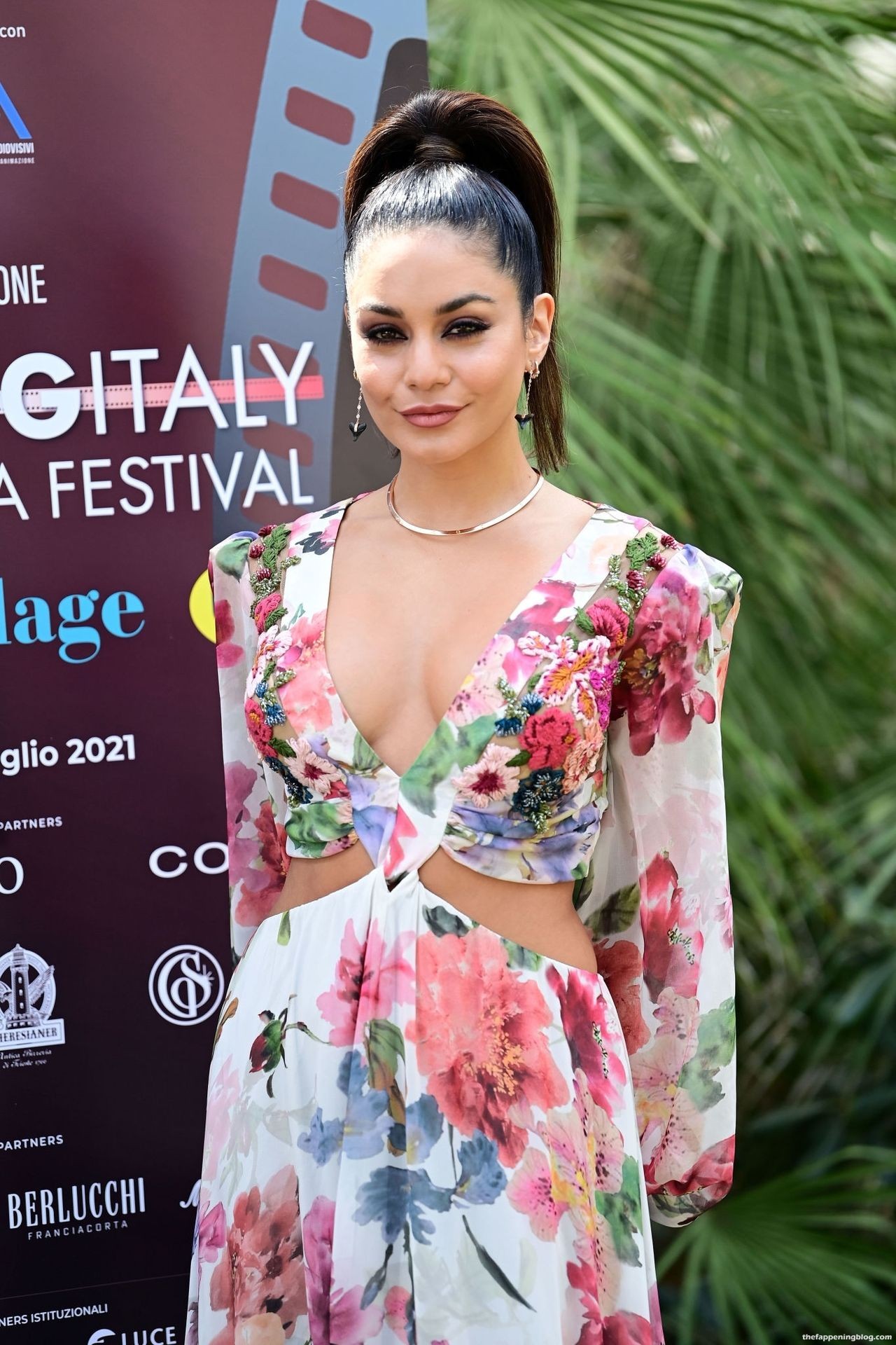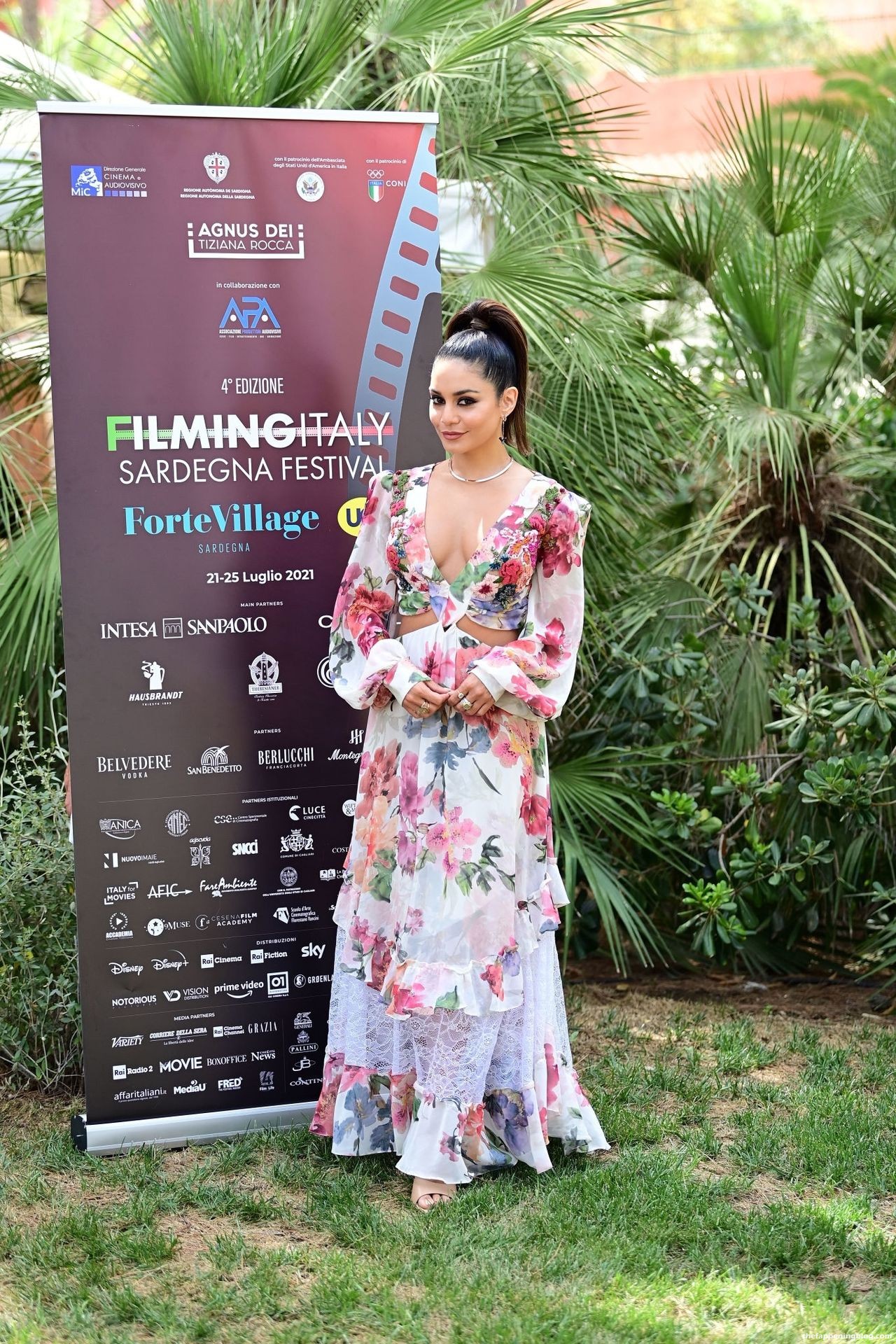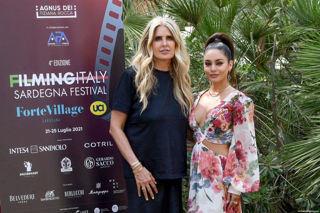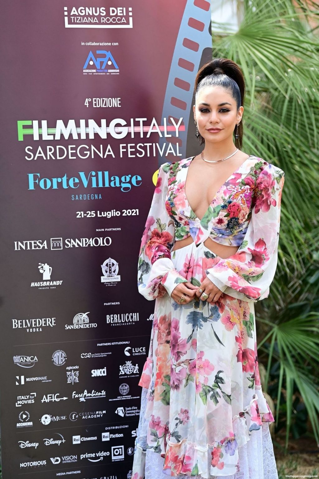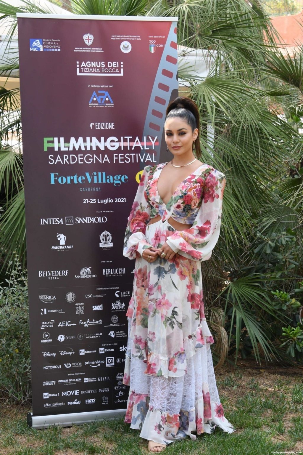 La star de The Fappening et actrice Vanessa Hudgens pose sans soutien-gorge dans une robe d’été au Filming Italy Sardegna Festival, le 24/07/2021.