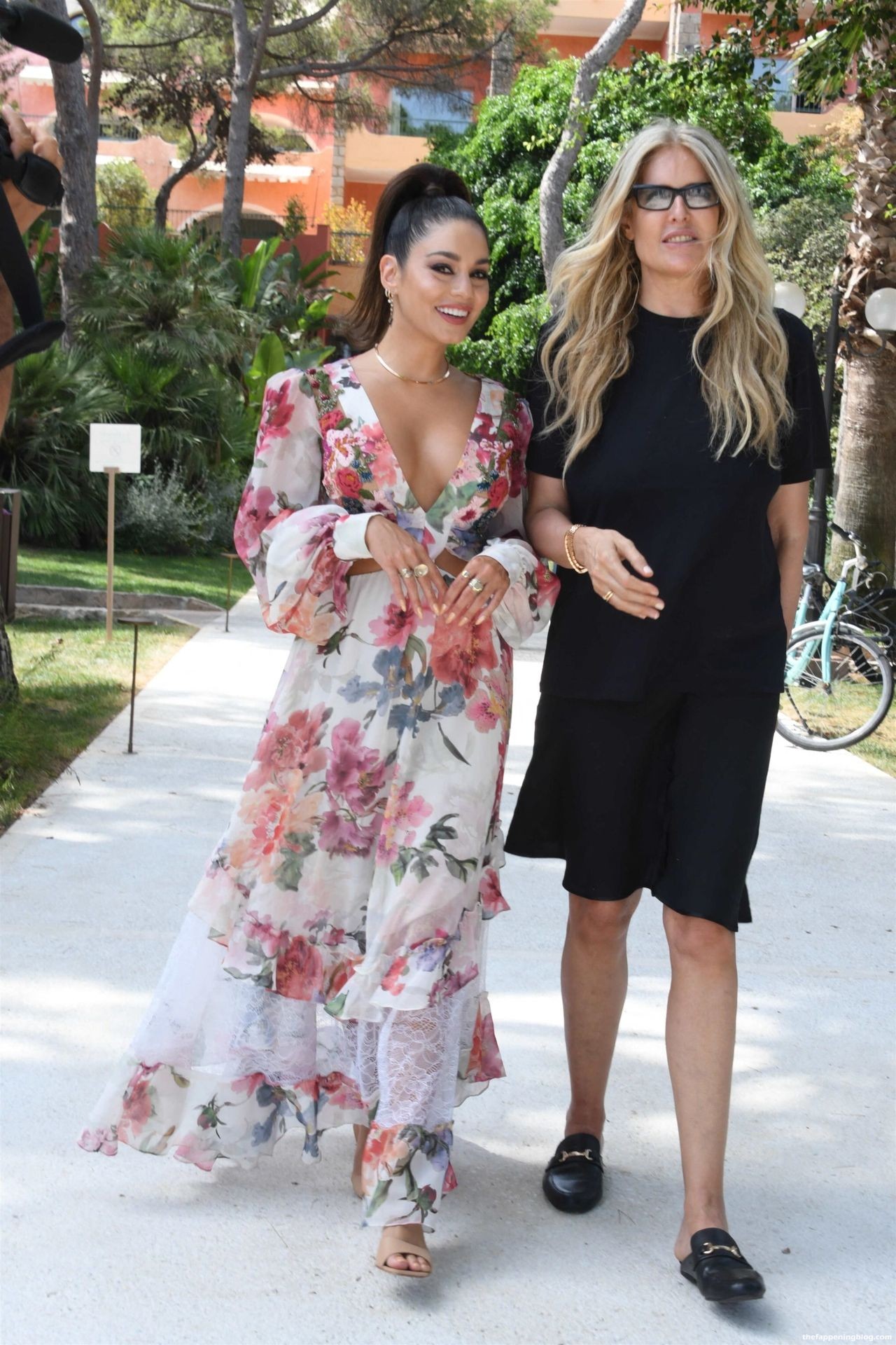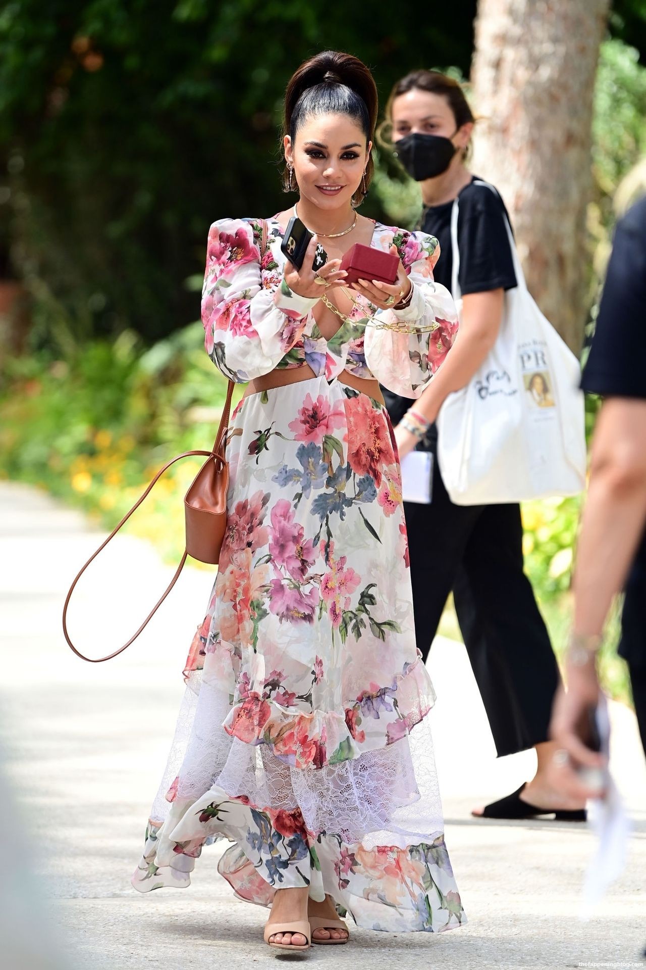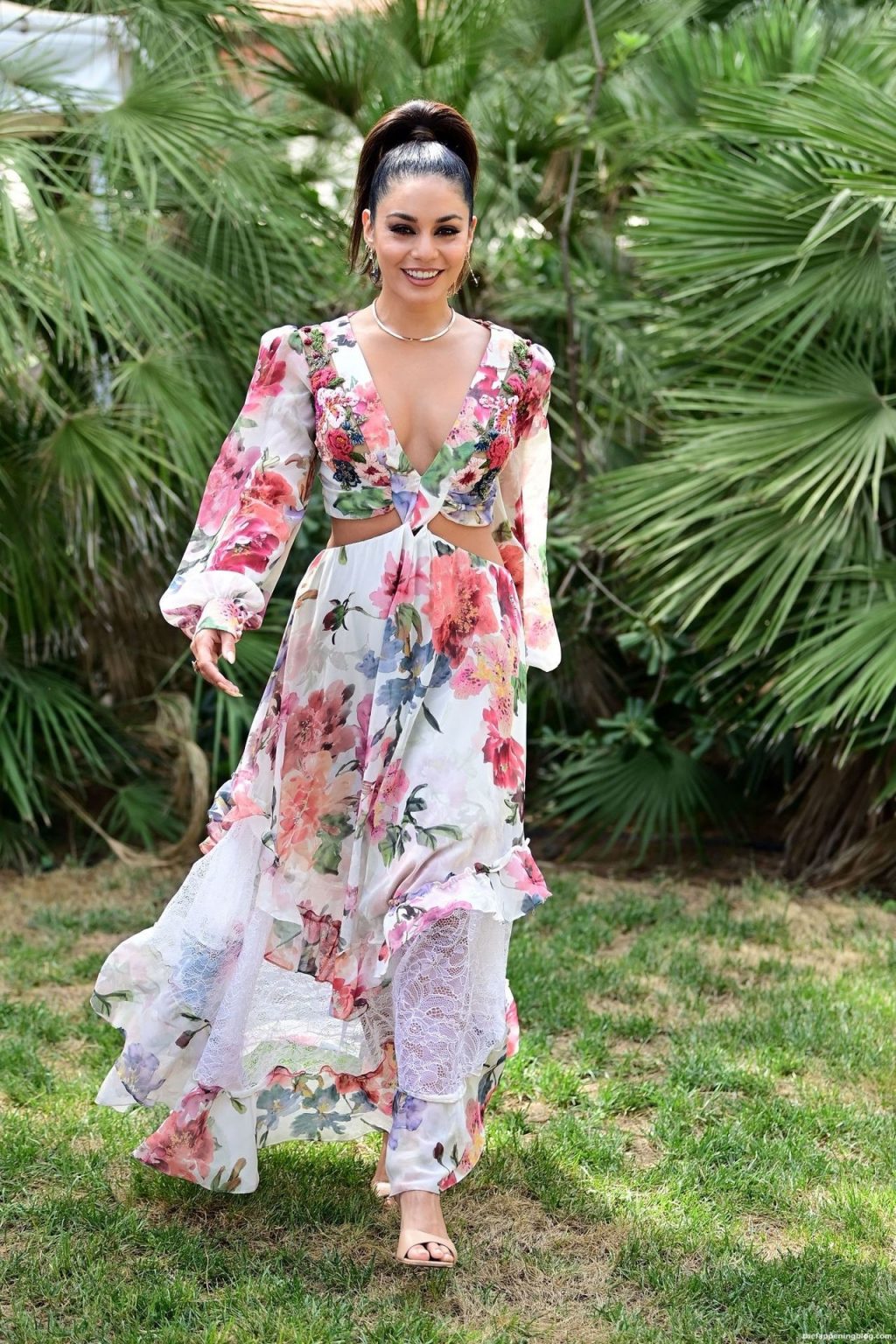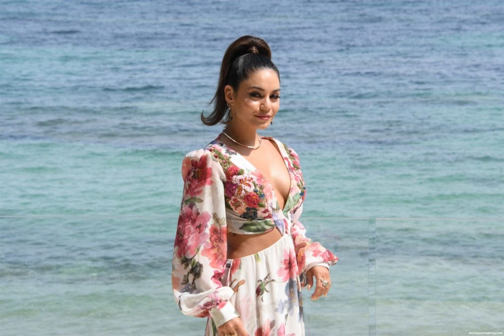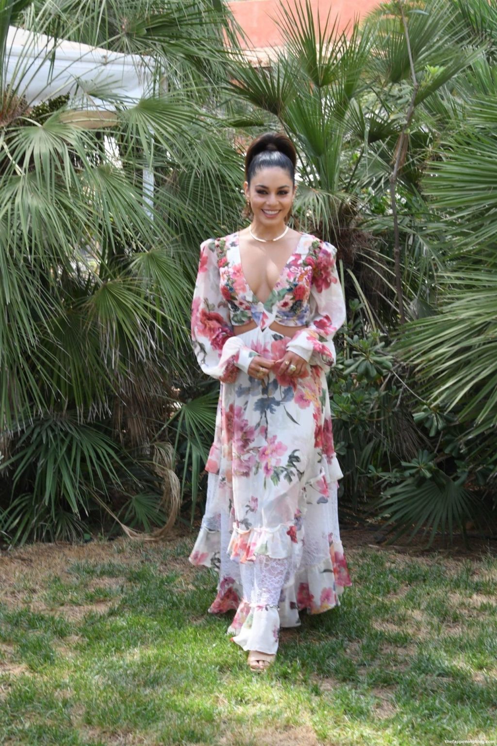 La star de The Fappening et actrice Vanessa Hudgens pose sans soutien-gorge dans une robe d’été au Filming Italy Sardegna Festival, le 24/07/2021.