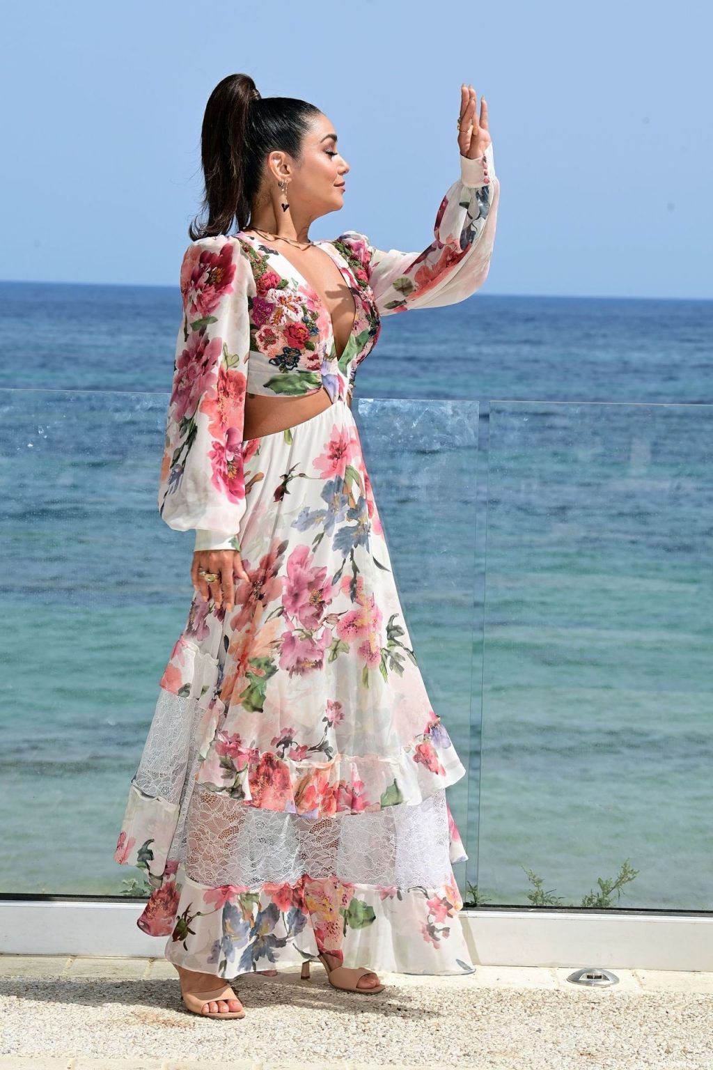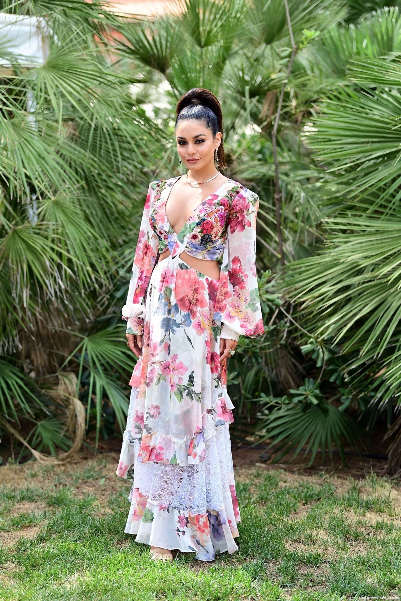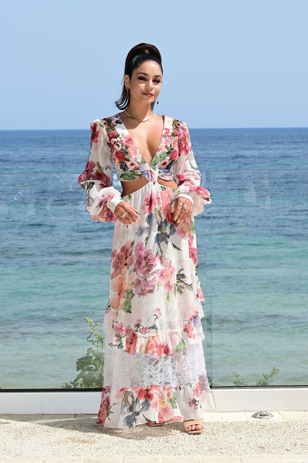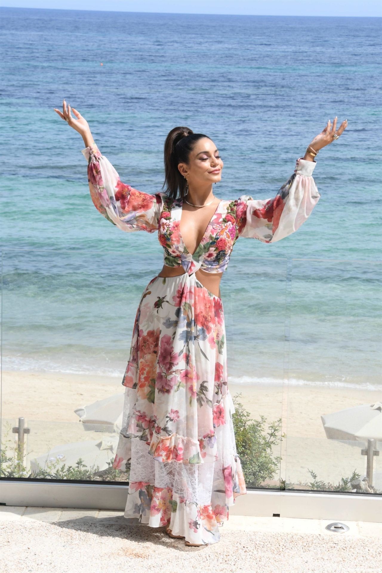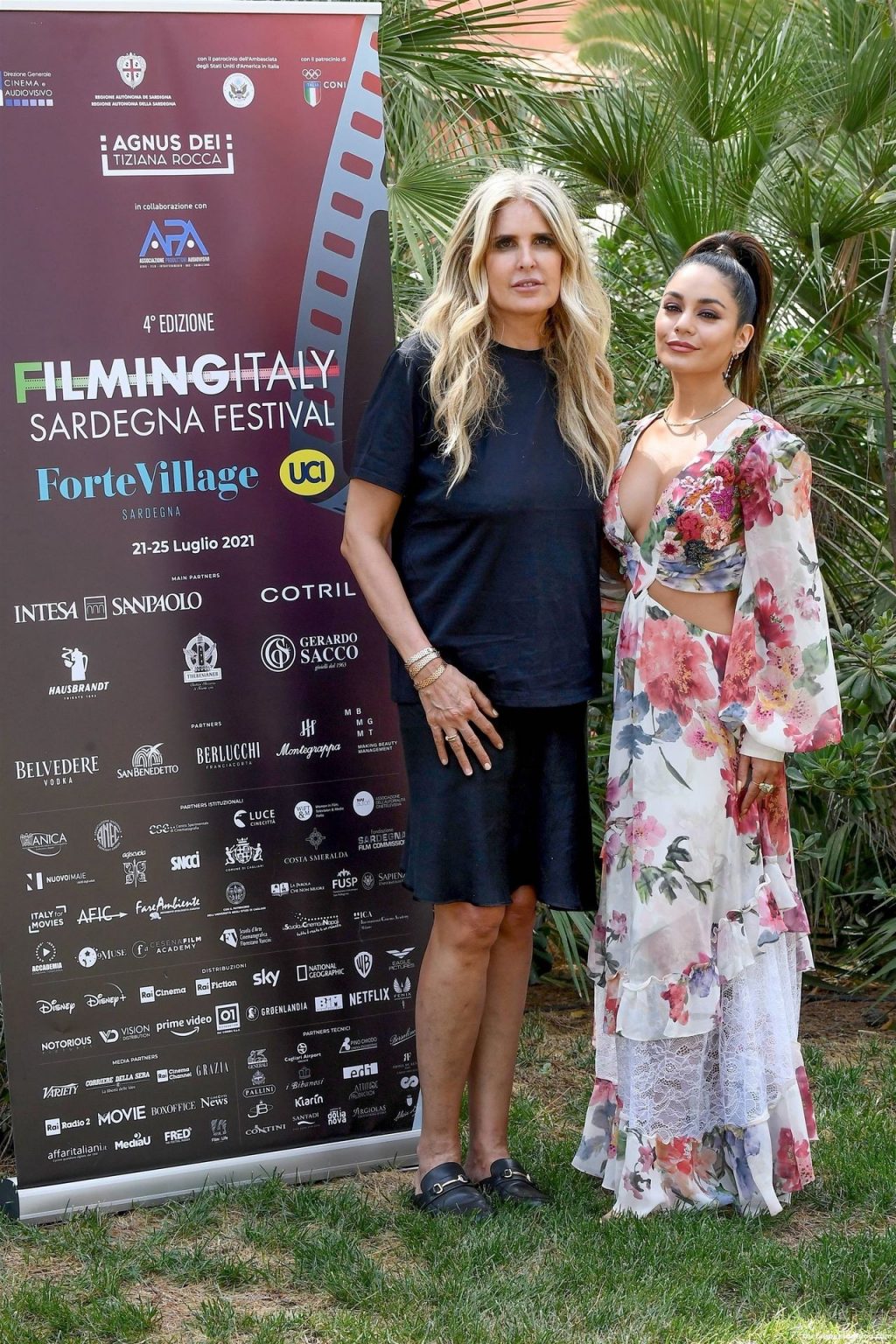 La star de The Fappening et actrice Vanessa Hudgens pose sans soutien-gorge dans une robe d’été au Filming Italy Sardegna Festival, le 24/07/2021.