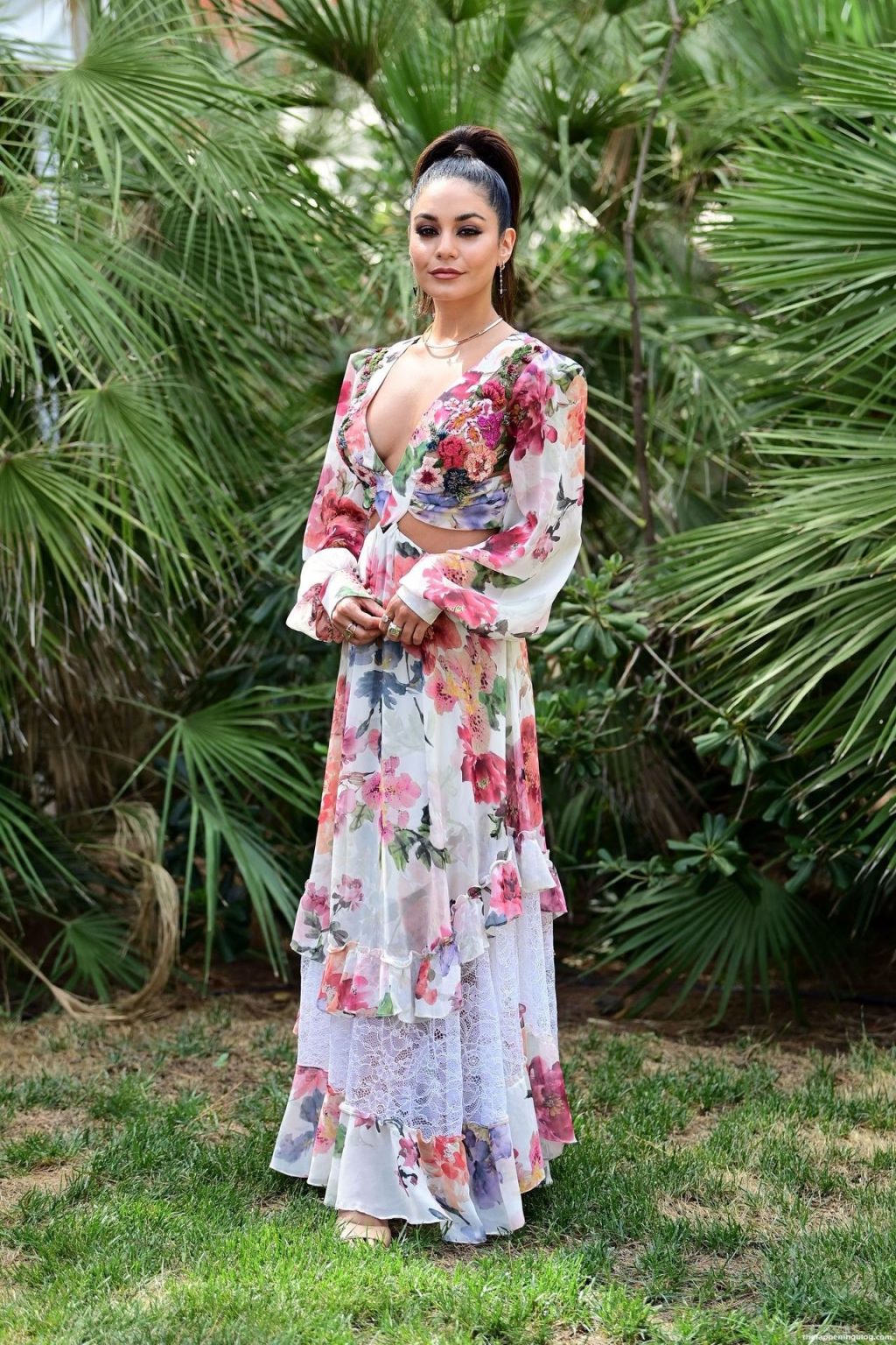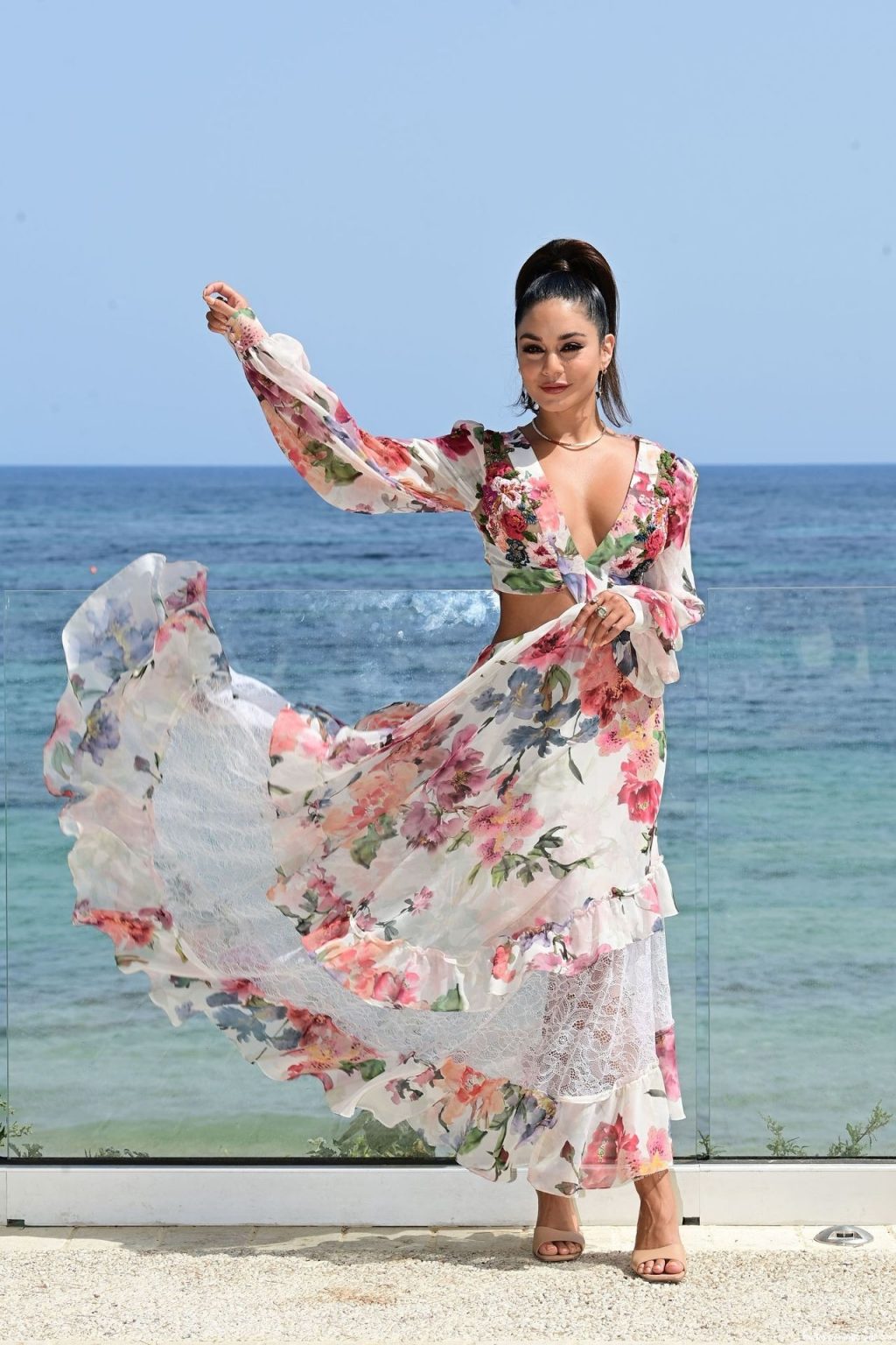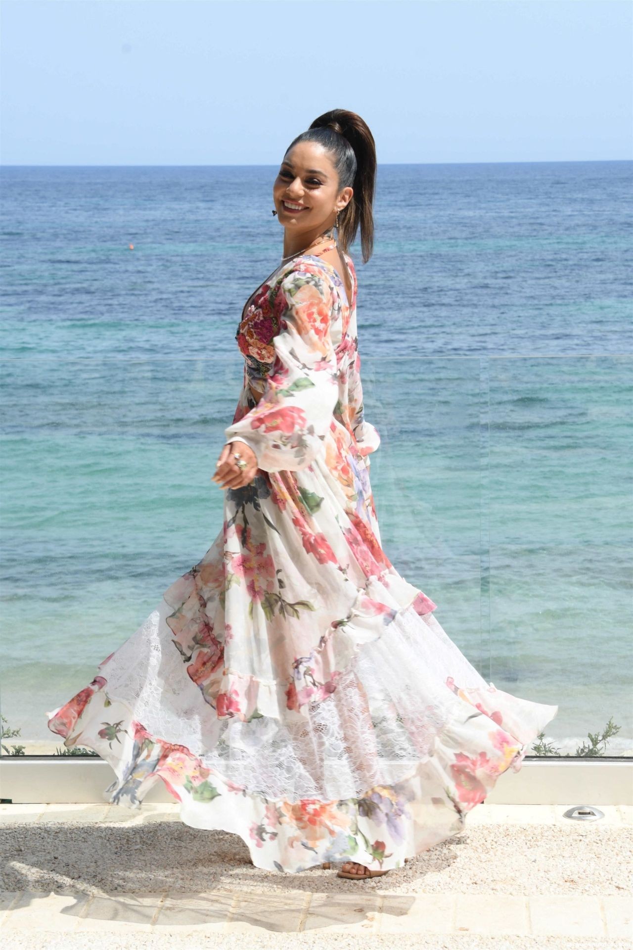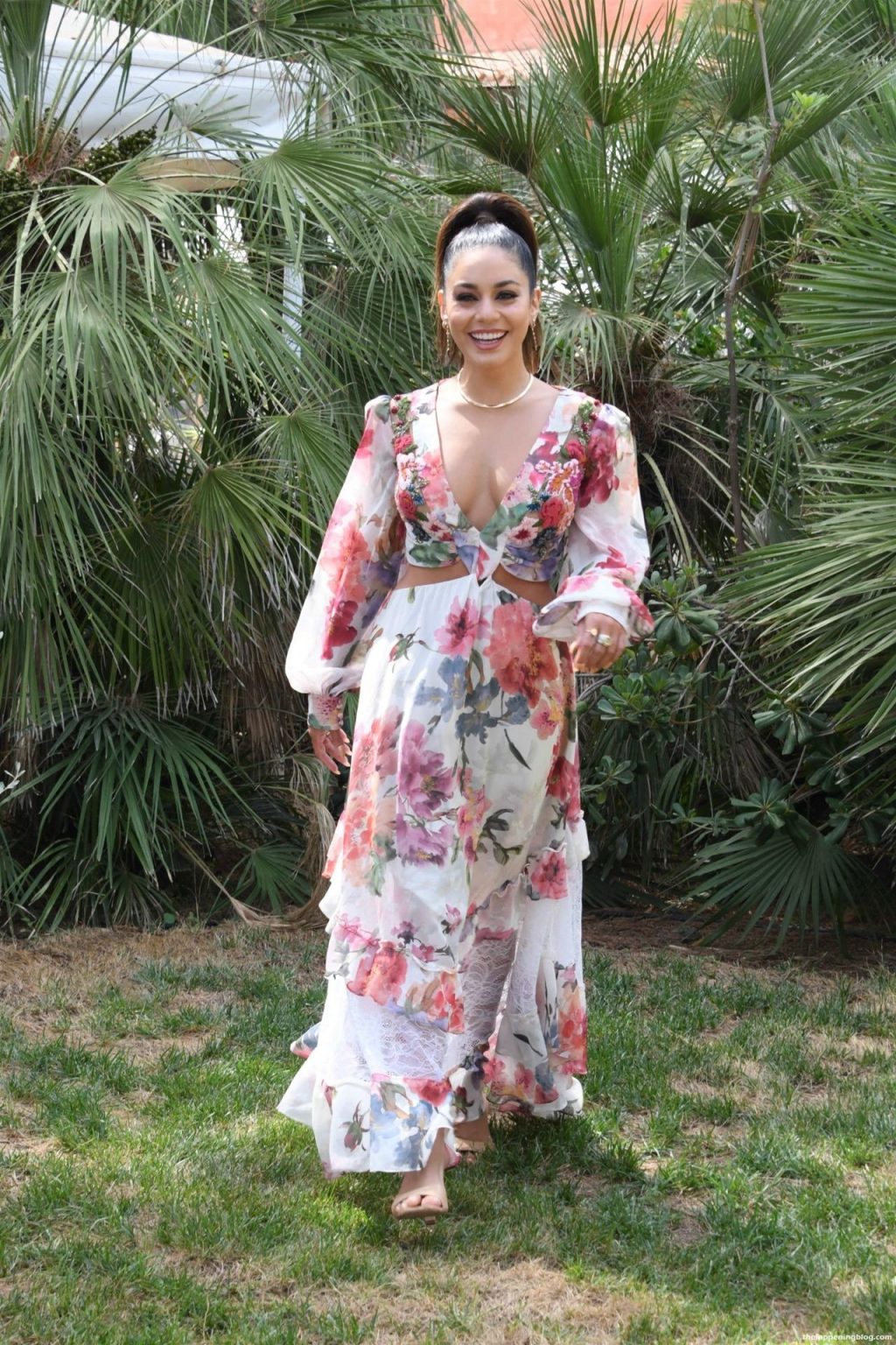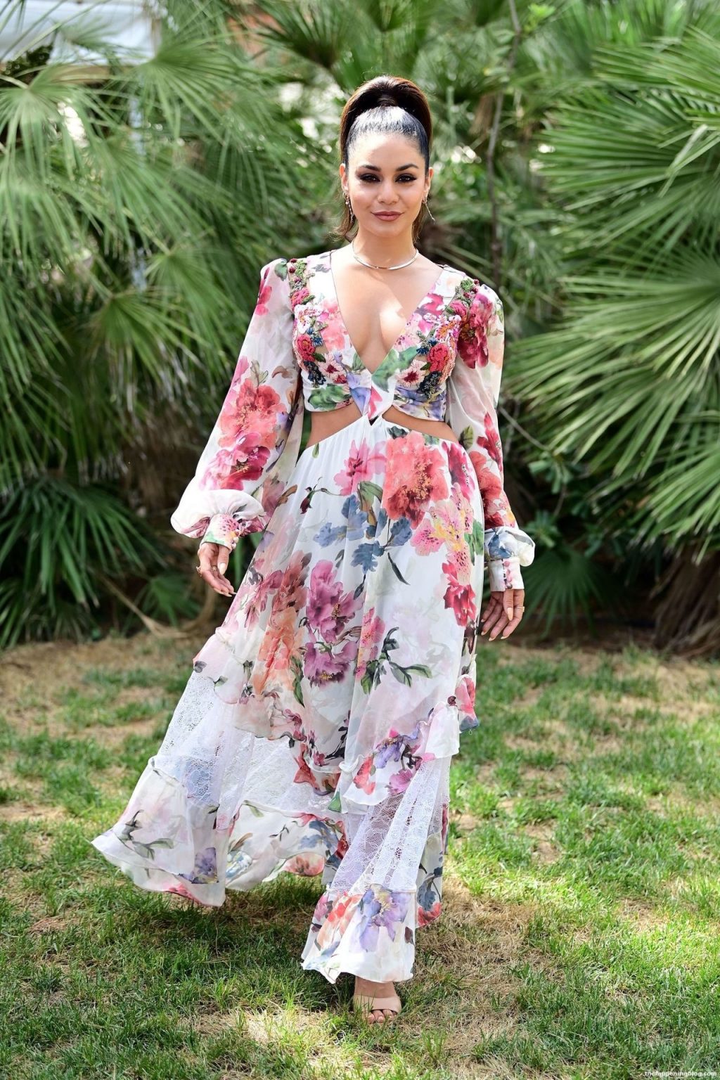 La star de The Fappening et actrice Vanessa Hudgens pose sans soutien-gorge dans une robe d’été au Filming Italy Sardegna Festival, le 24/07/2021.