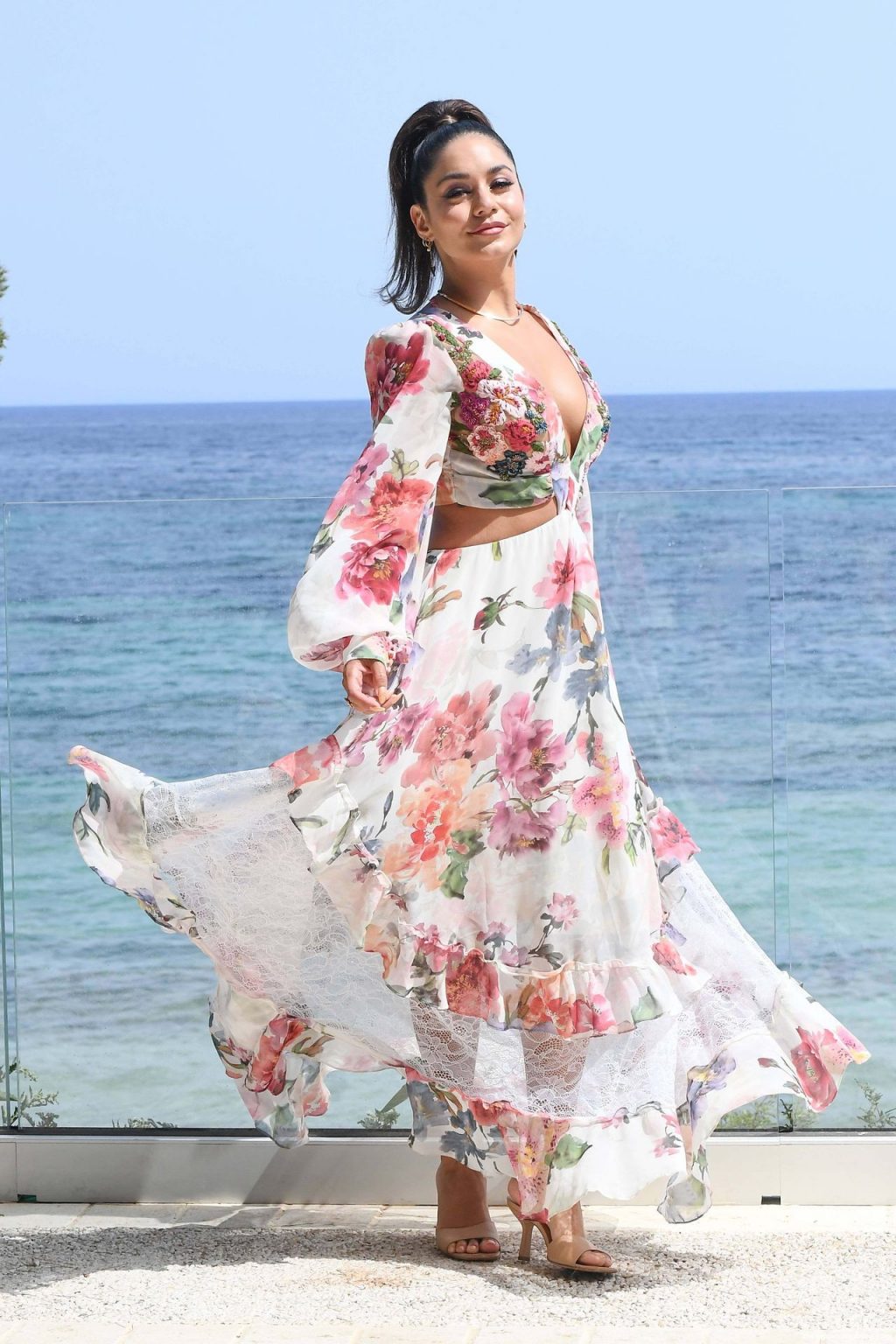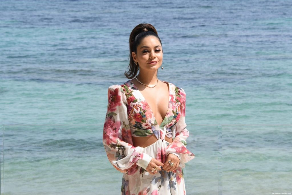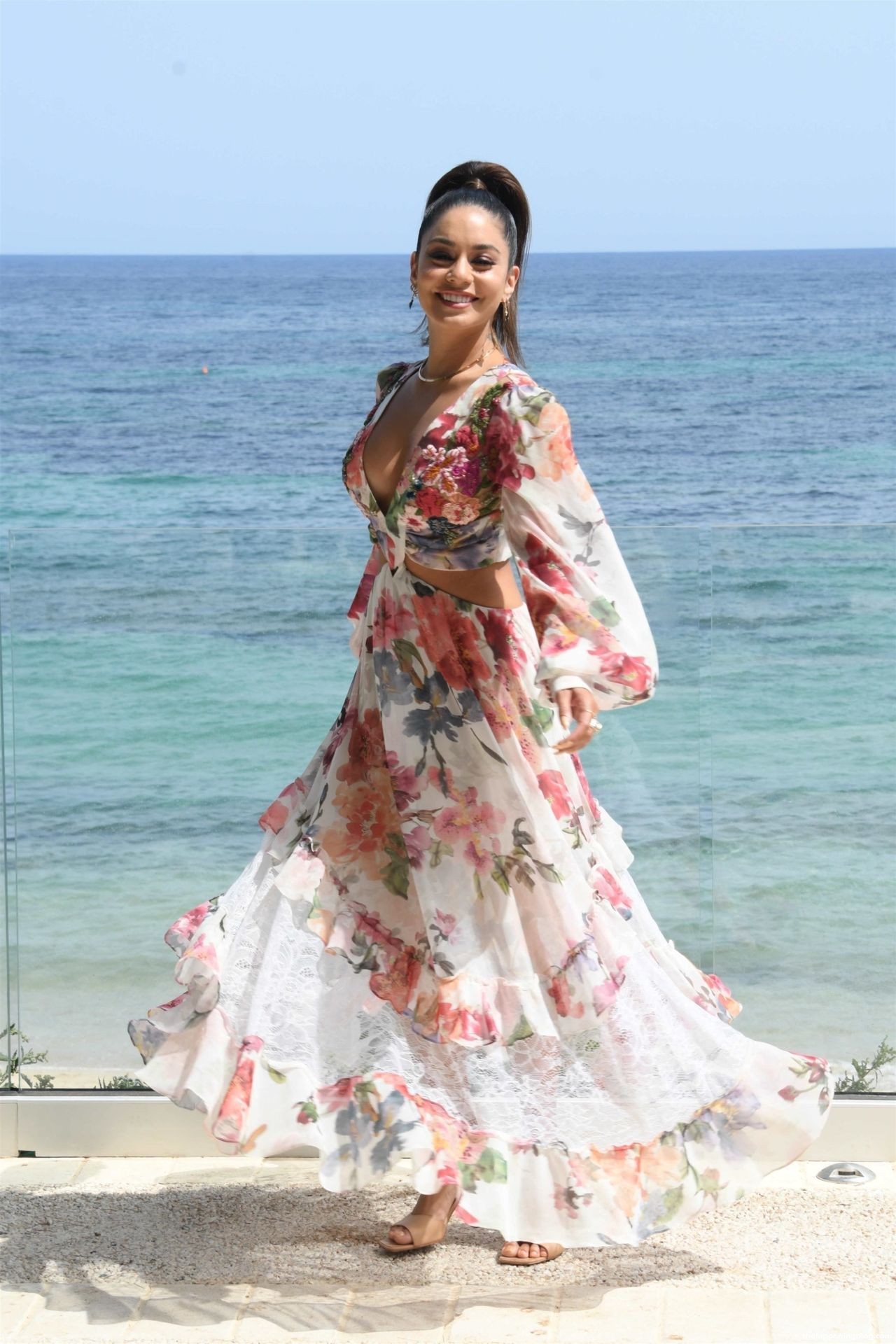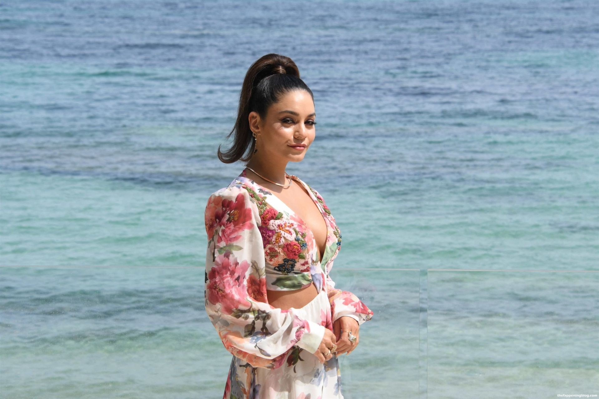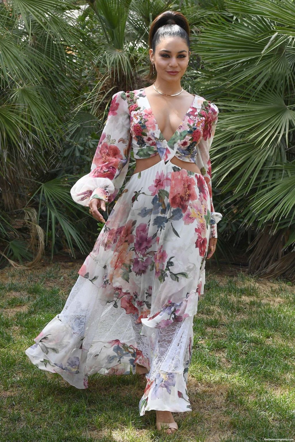 La star de The Fappening et actrice Vanessa Hudgens pose sans soutien-gorge dans une robe d’été au Filming Italy Sardegna Festival, le 24/07/2021.