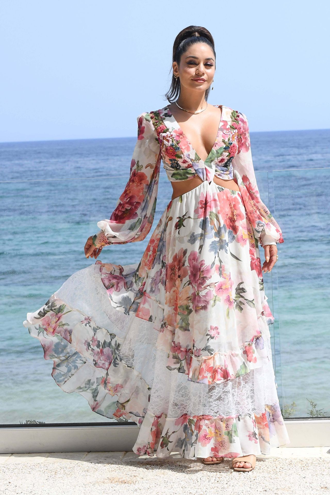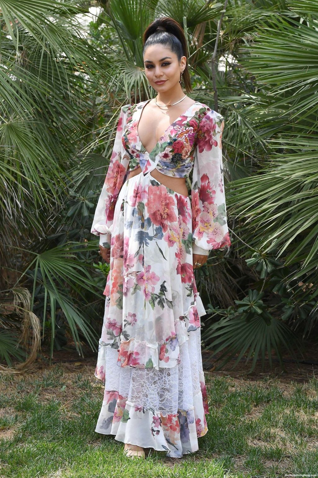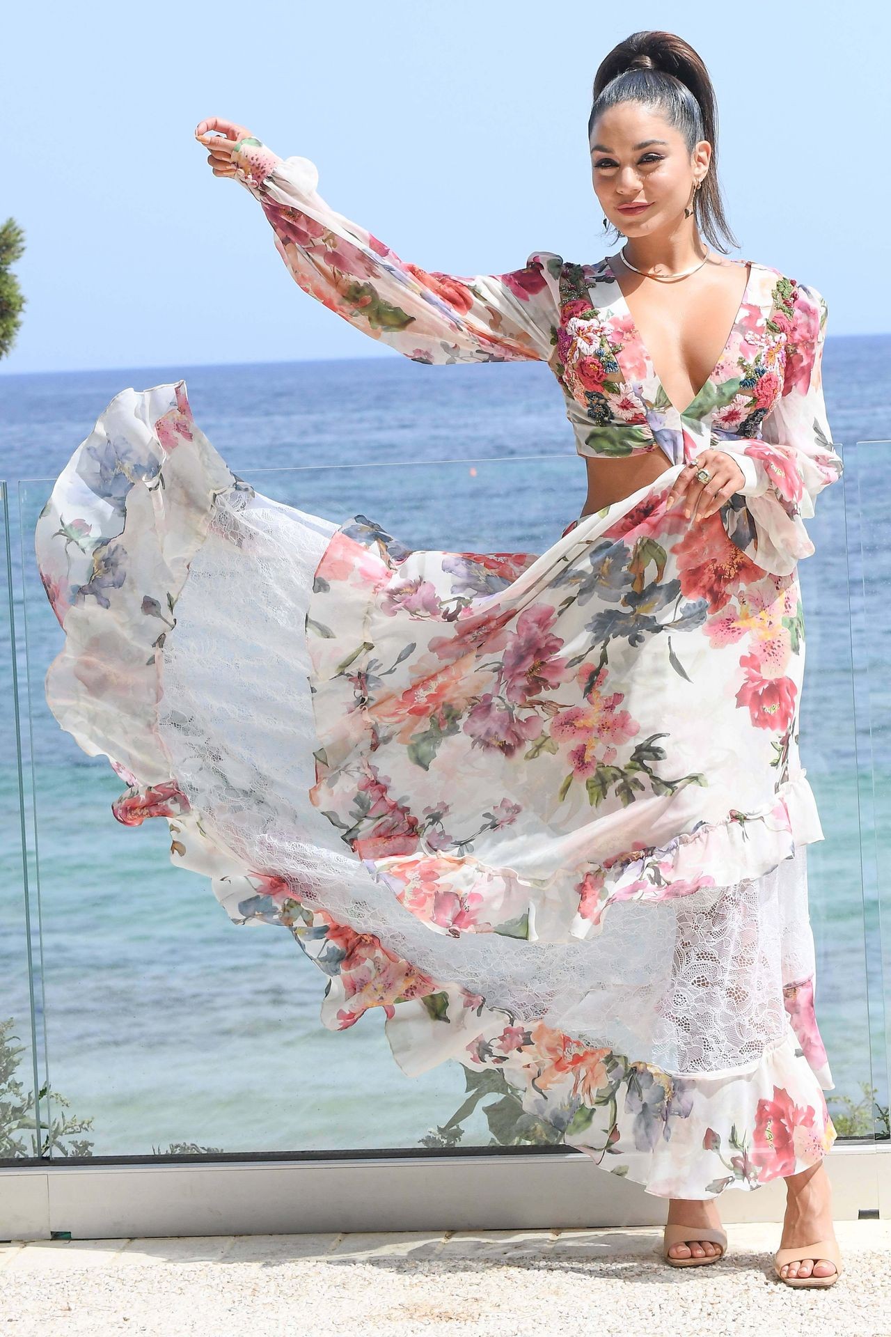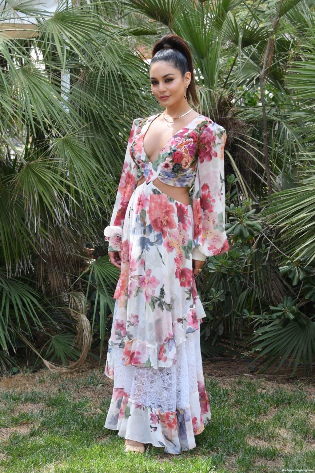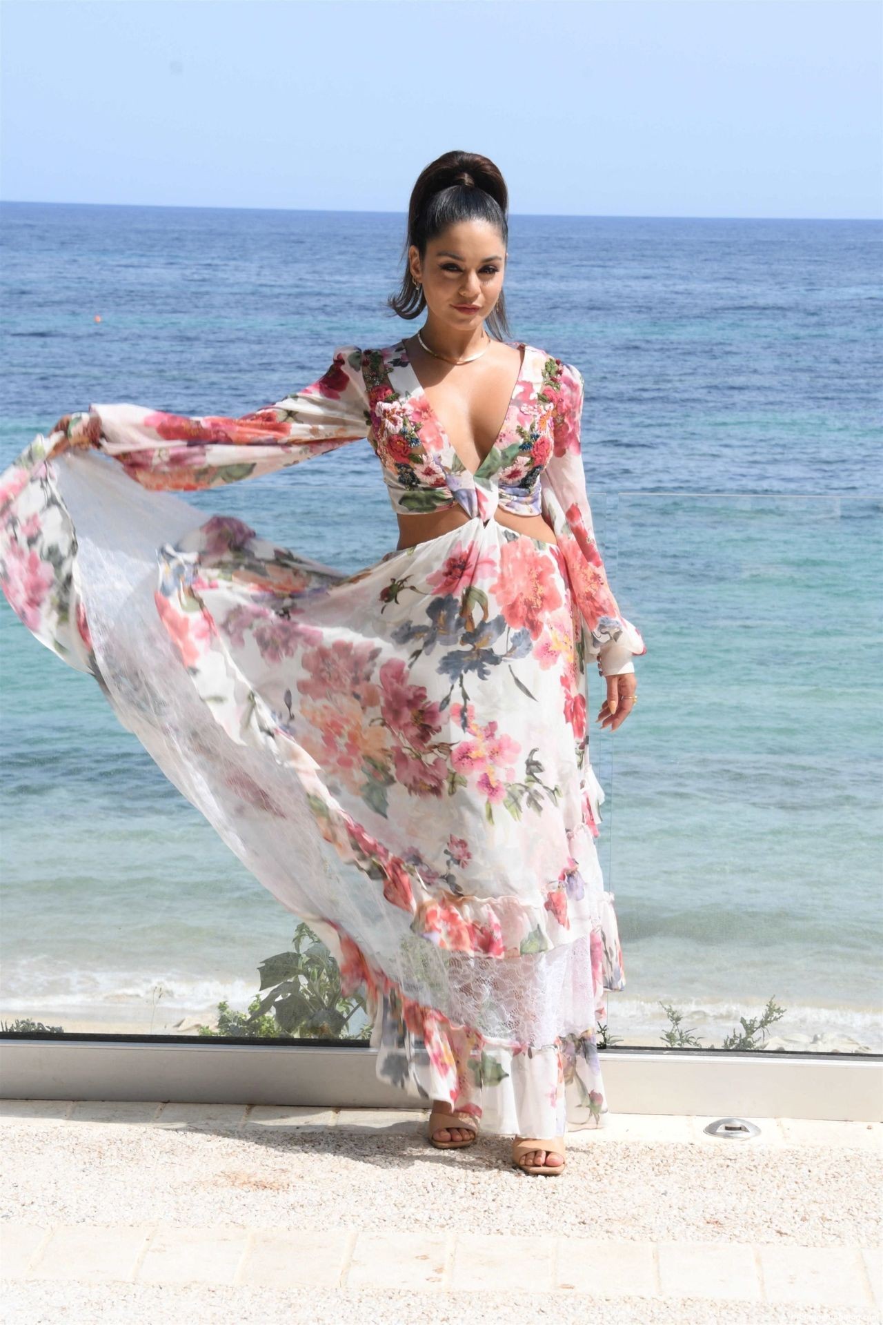 La star de The Fappening et actrice Vanessa Hudgens pose sans soutien-gorge dans une robe d’été au Filming Italy Sardegna Festival, le 24/07/2021.