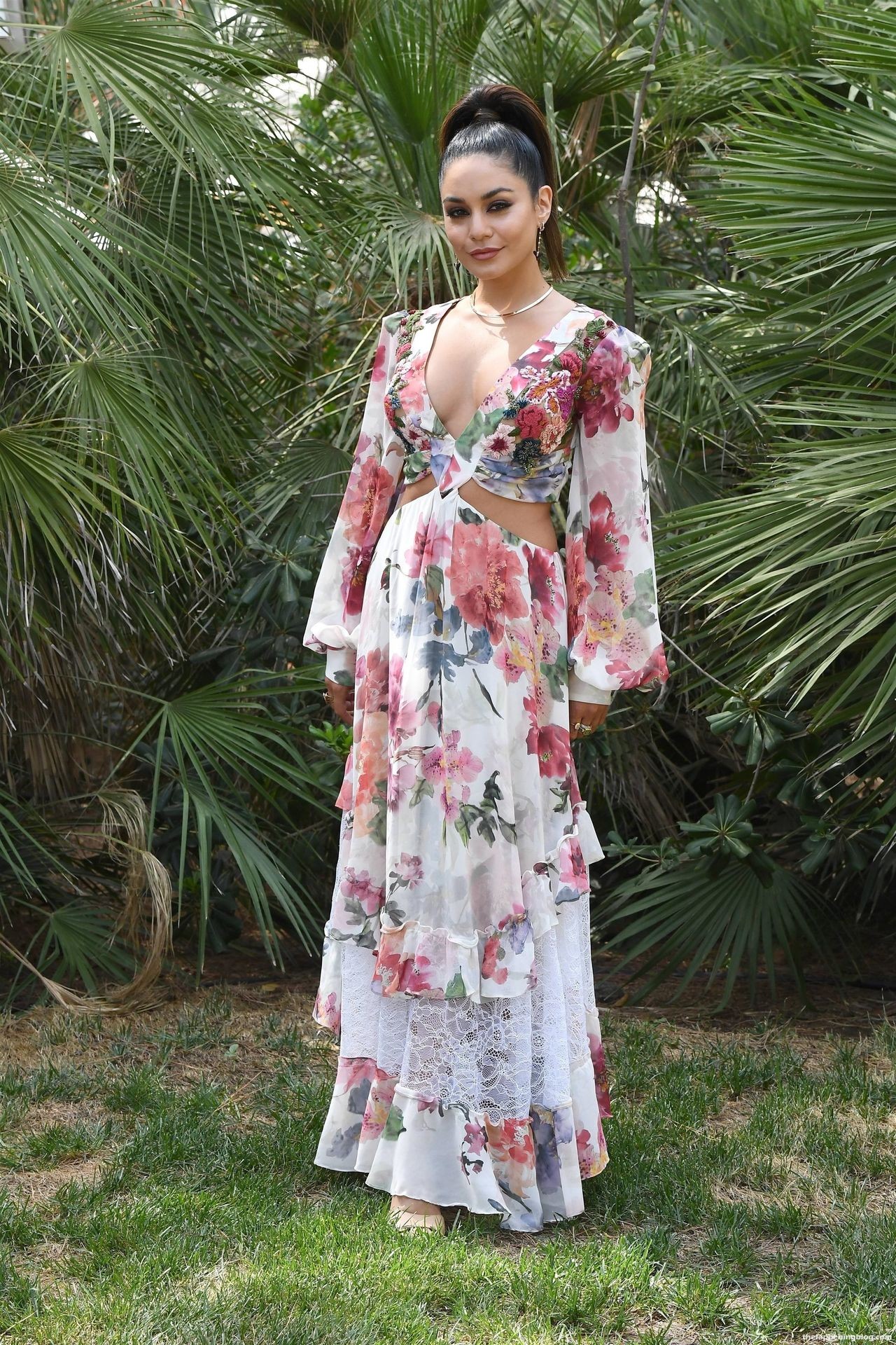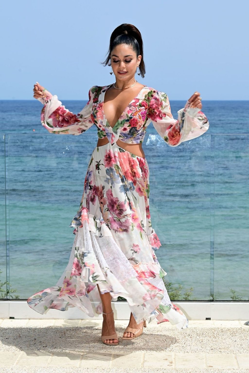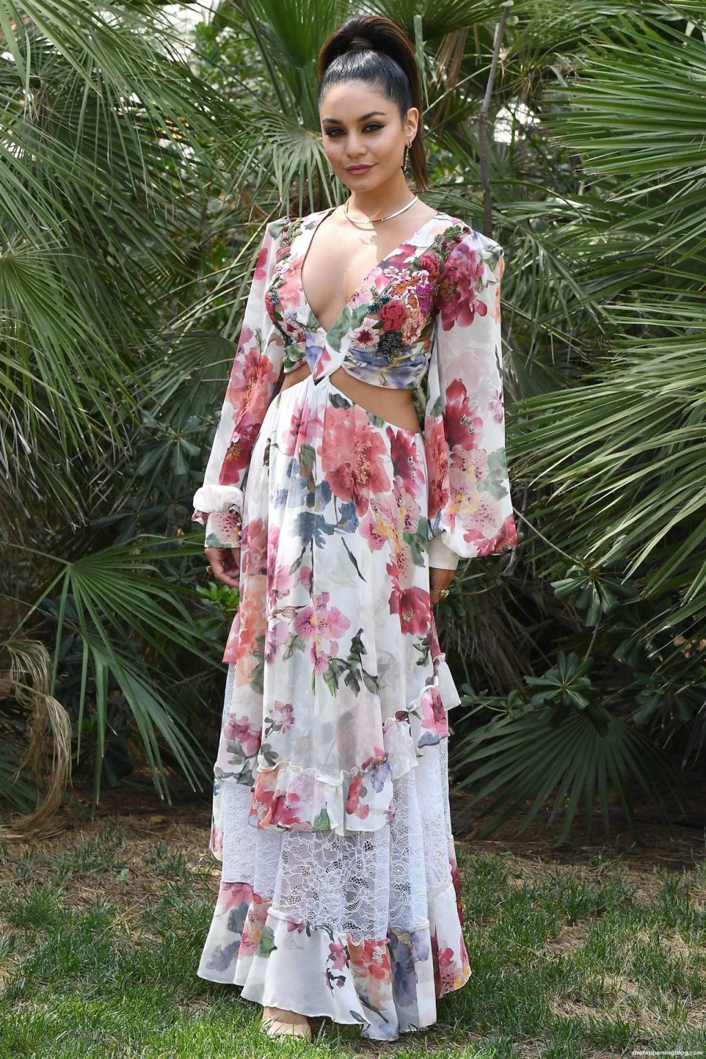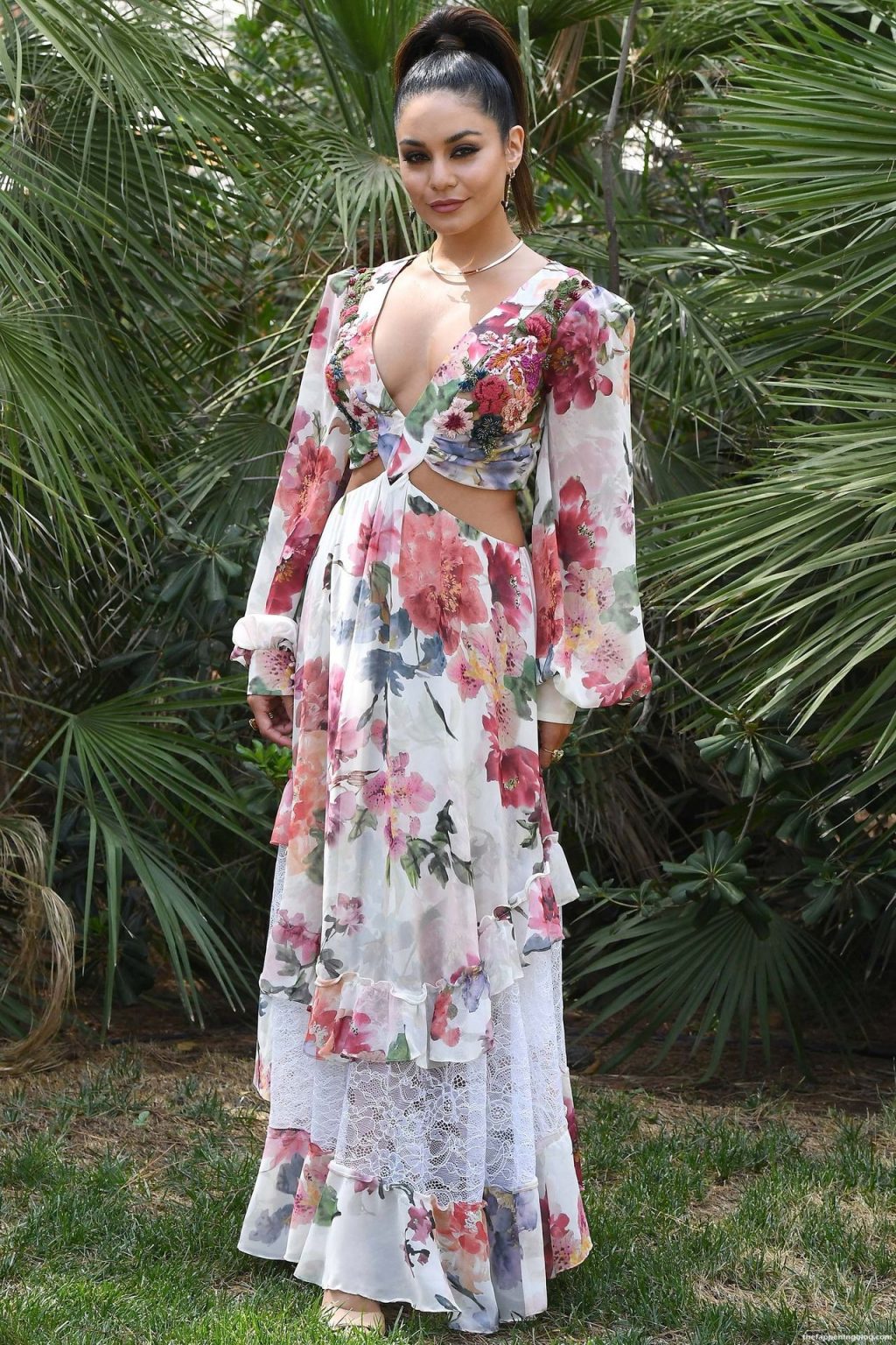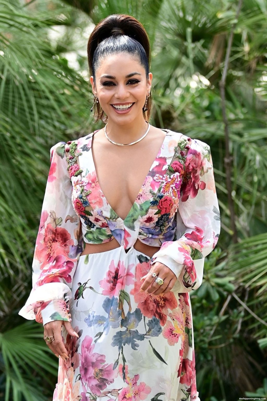 La star de The Fappening et actrice Vanessa Hudgens pose sans soutien-gorge dans une robe d’été au Filming Italy Sardegna Festival, le 24/07/2021.