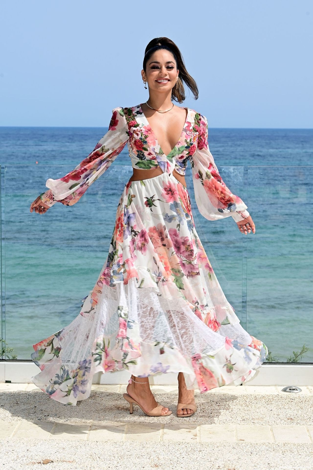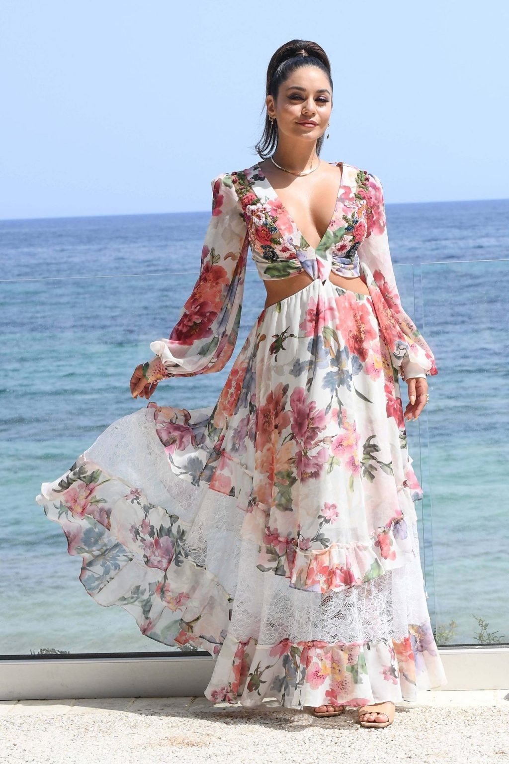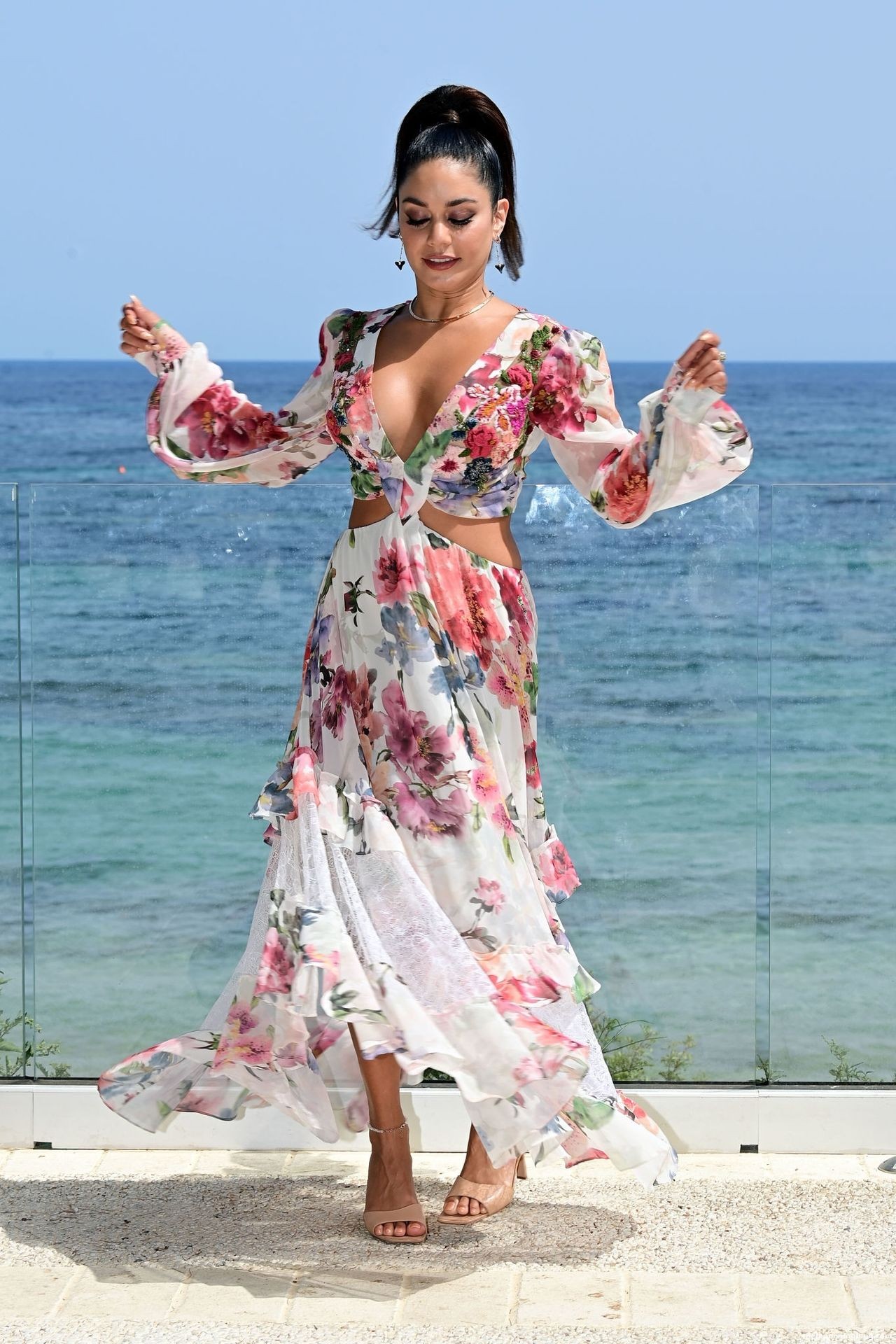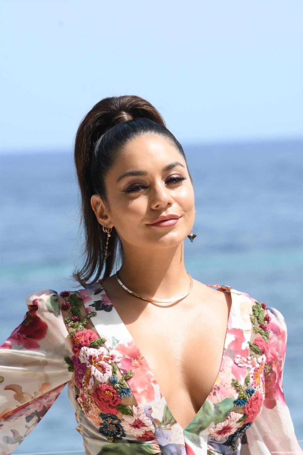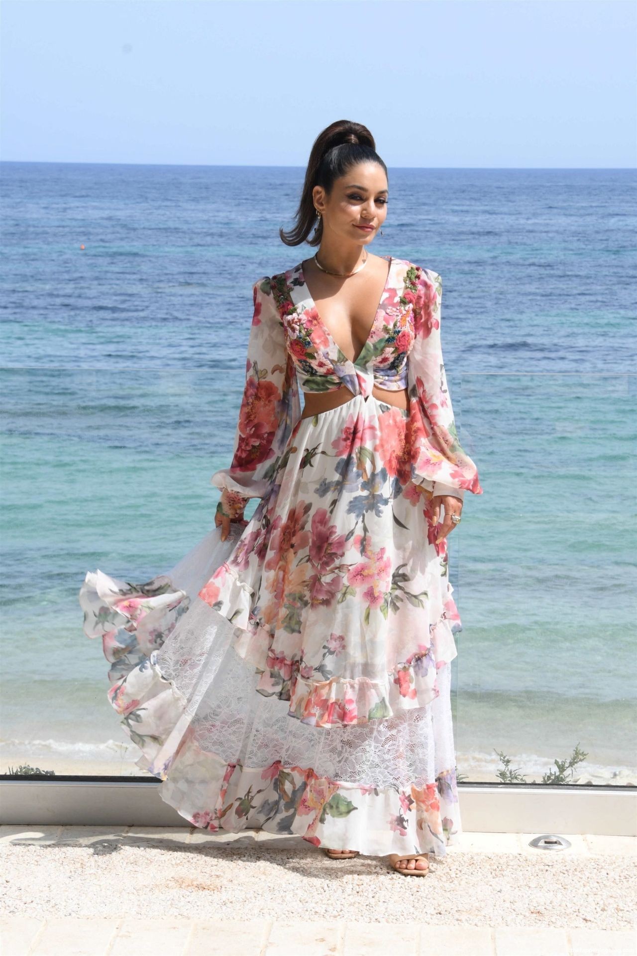La star de The Fappening et actrice Vanessa Hudgens pose sans soutien-gorge dans une robe d’été au Filming Italy Sardegna Festival, le 24/07/2021.