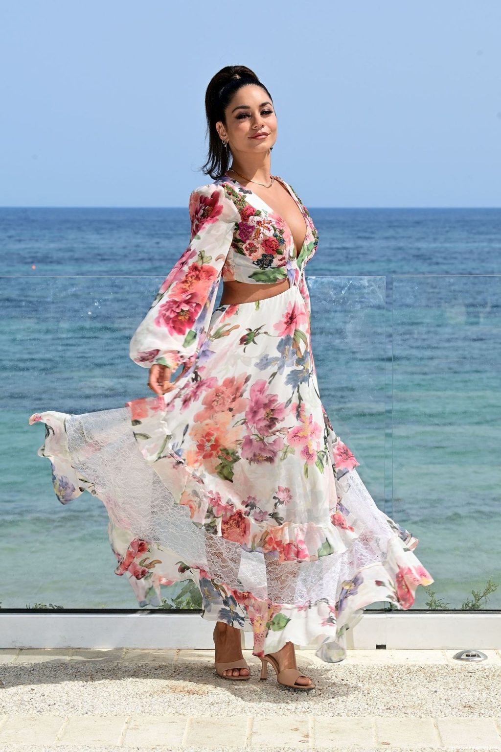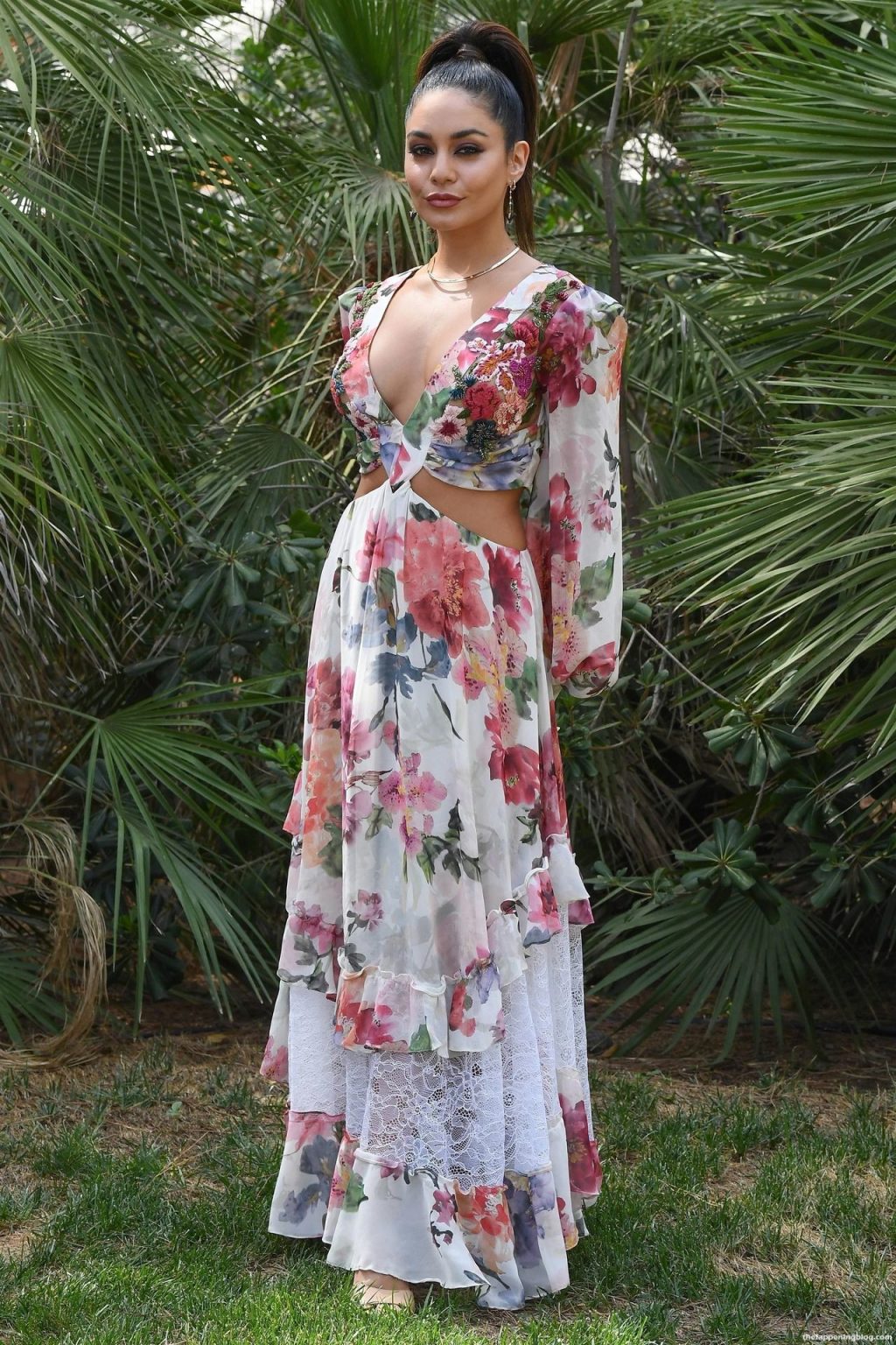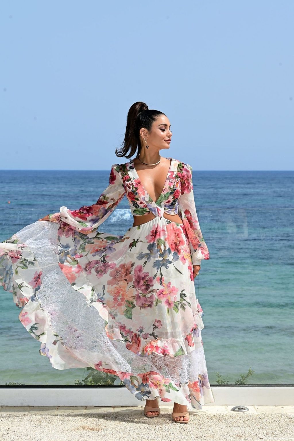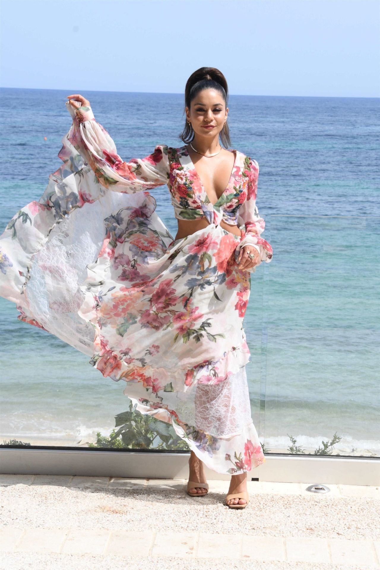 La star de The Fappening et actrice Vanessa Hudgens pose sans soutien-gorge dans une robe d’été au Filming Italy Sardegna Festival, le 24/07/2021.