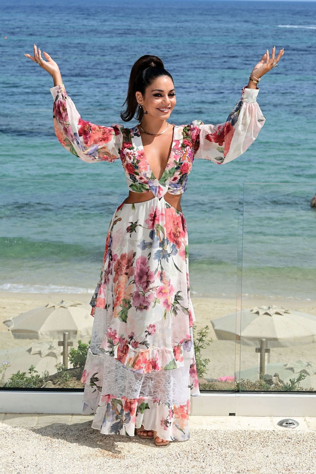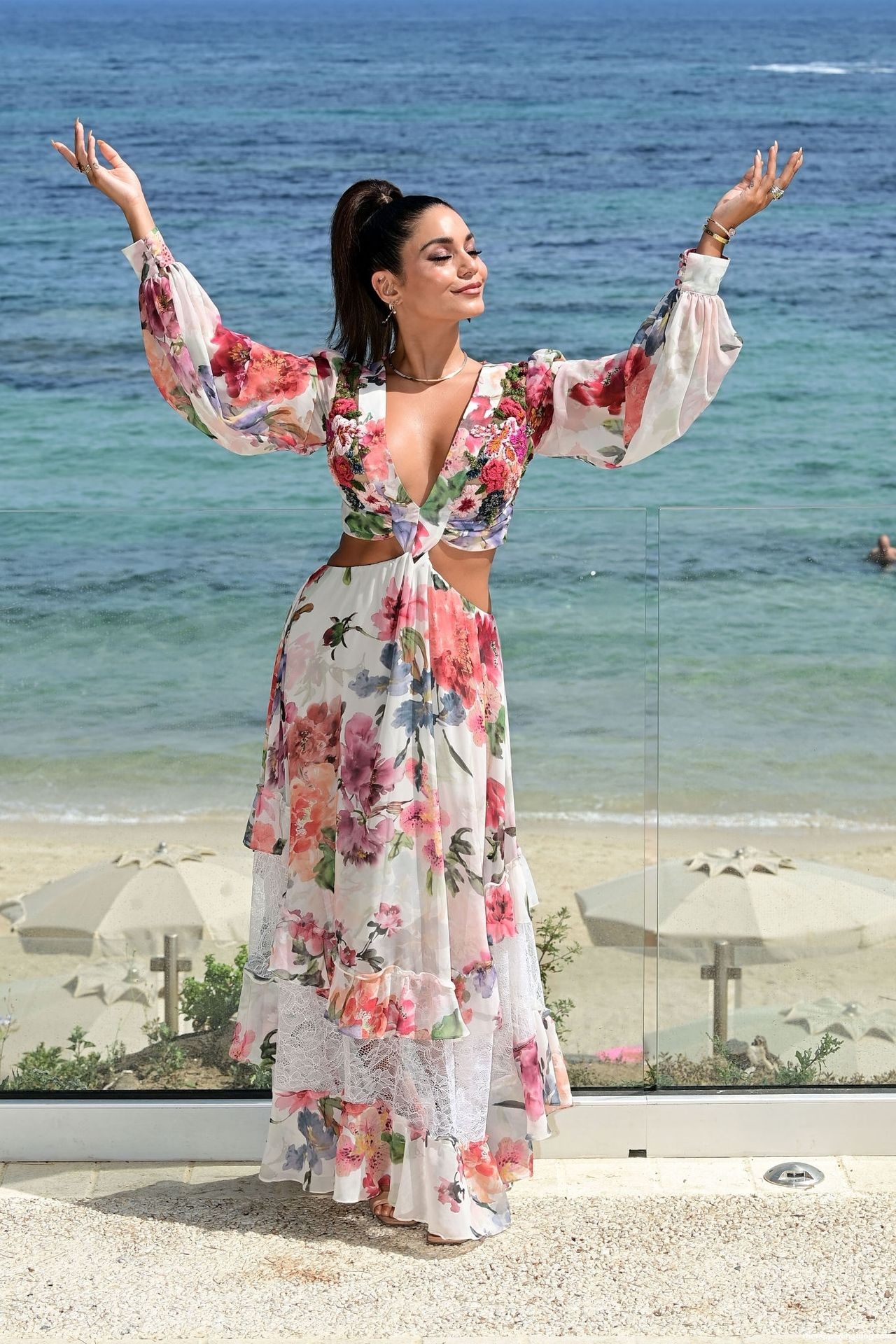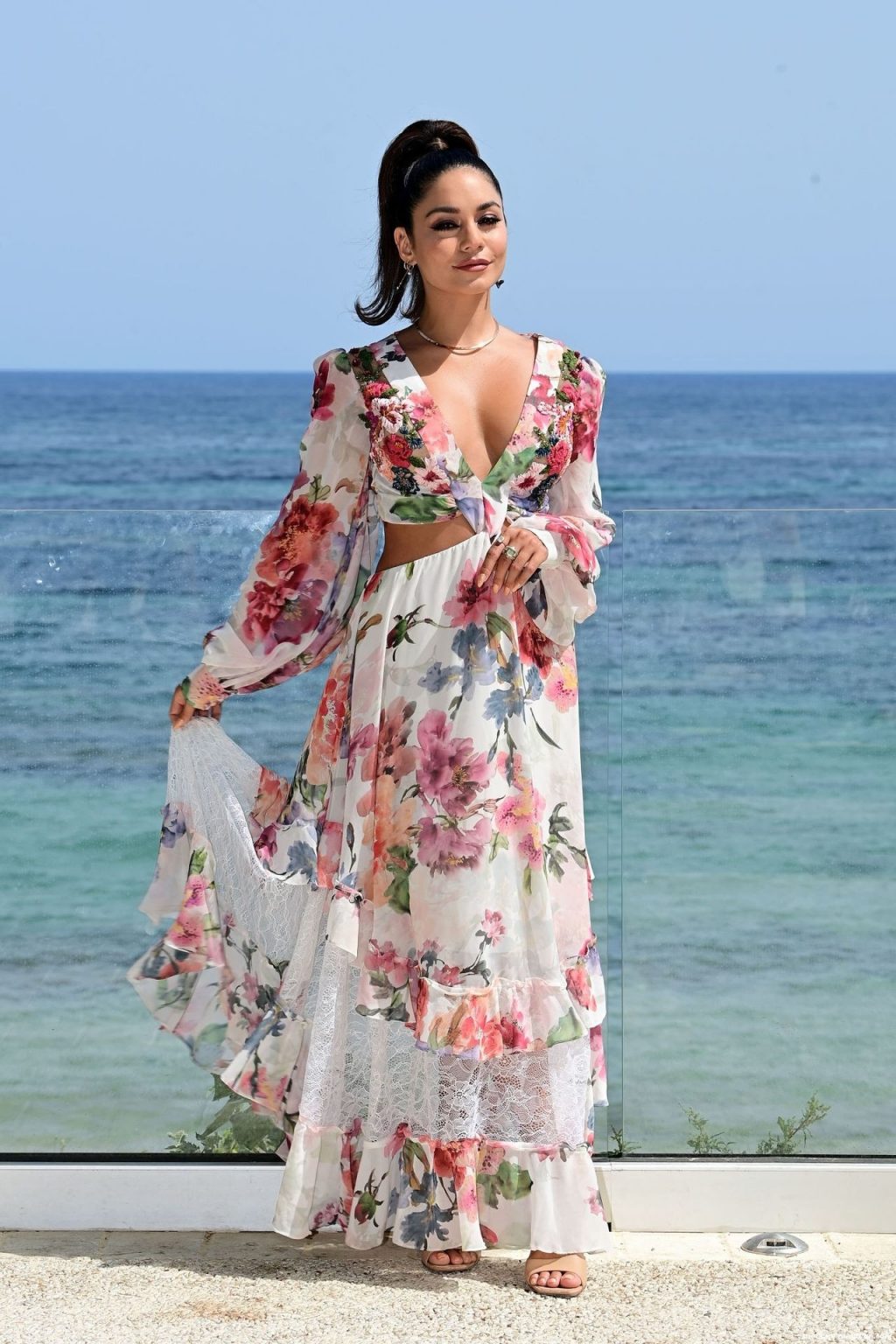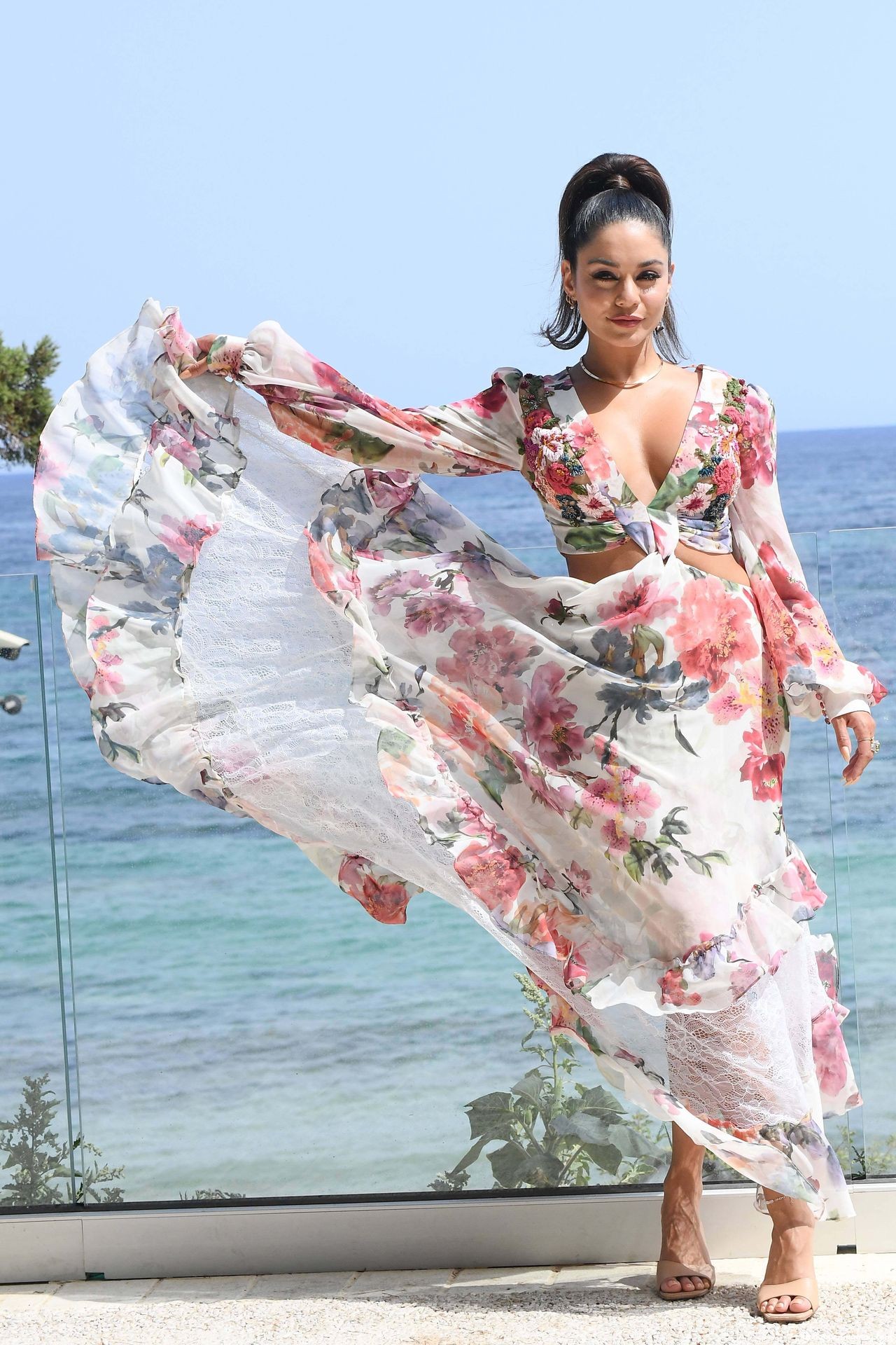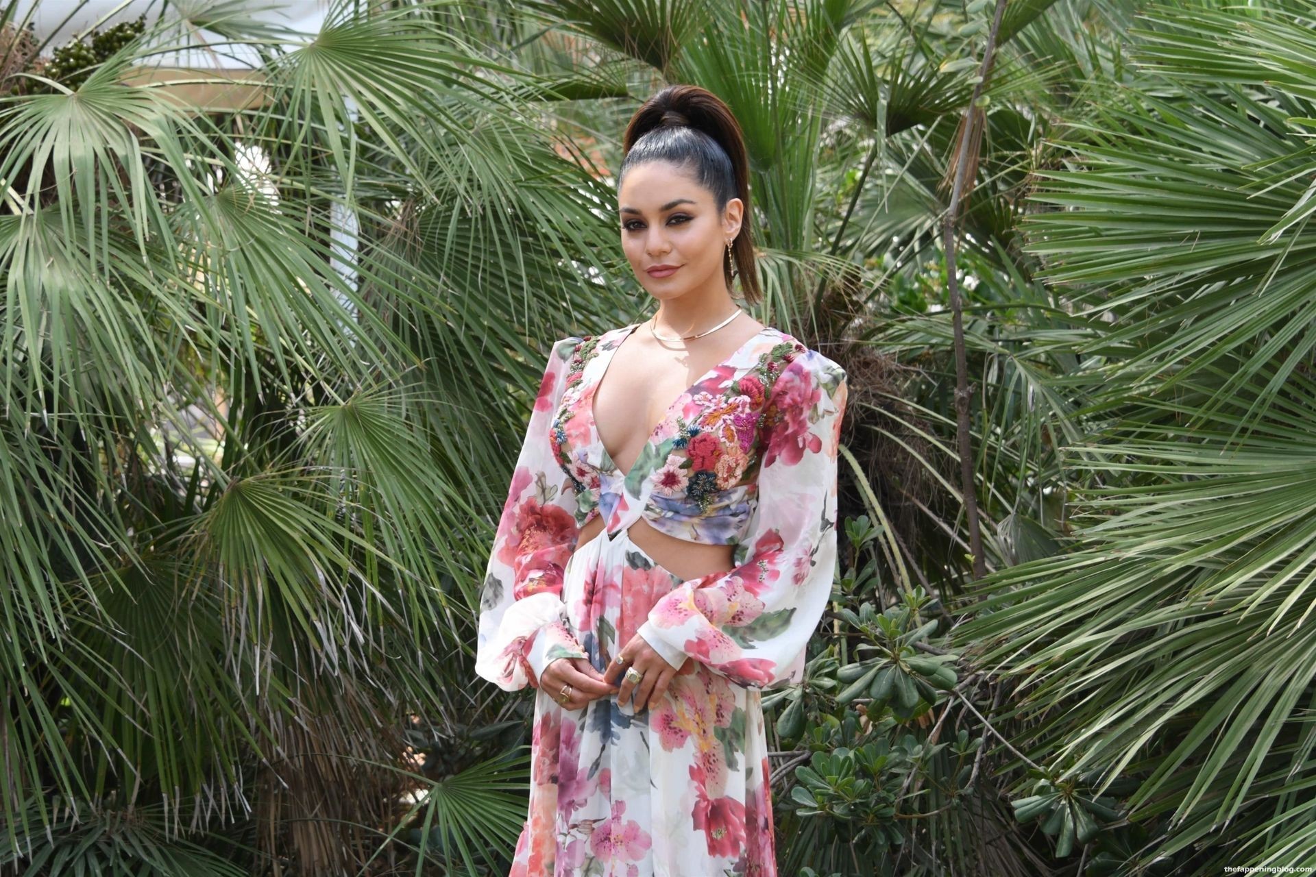 La star de The Fappening et actrice Vanessa Hudgens pose sans soutien-gorge dans une robe d’été au Filming Italy Sardegna Festival, le 24/07/2021.
