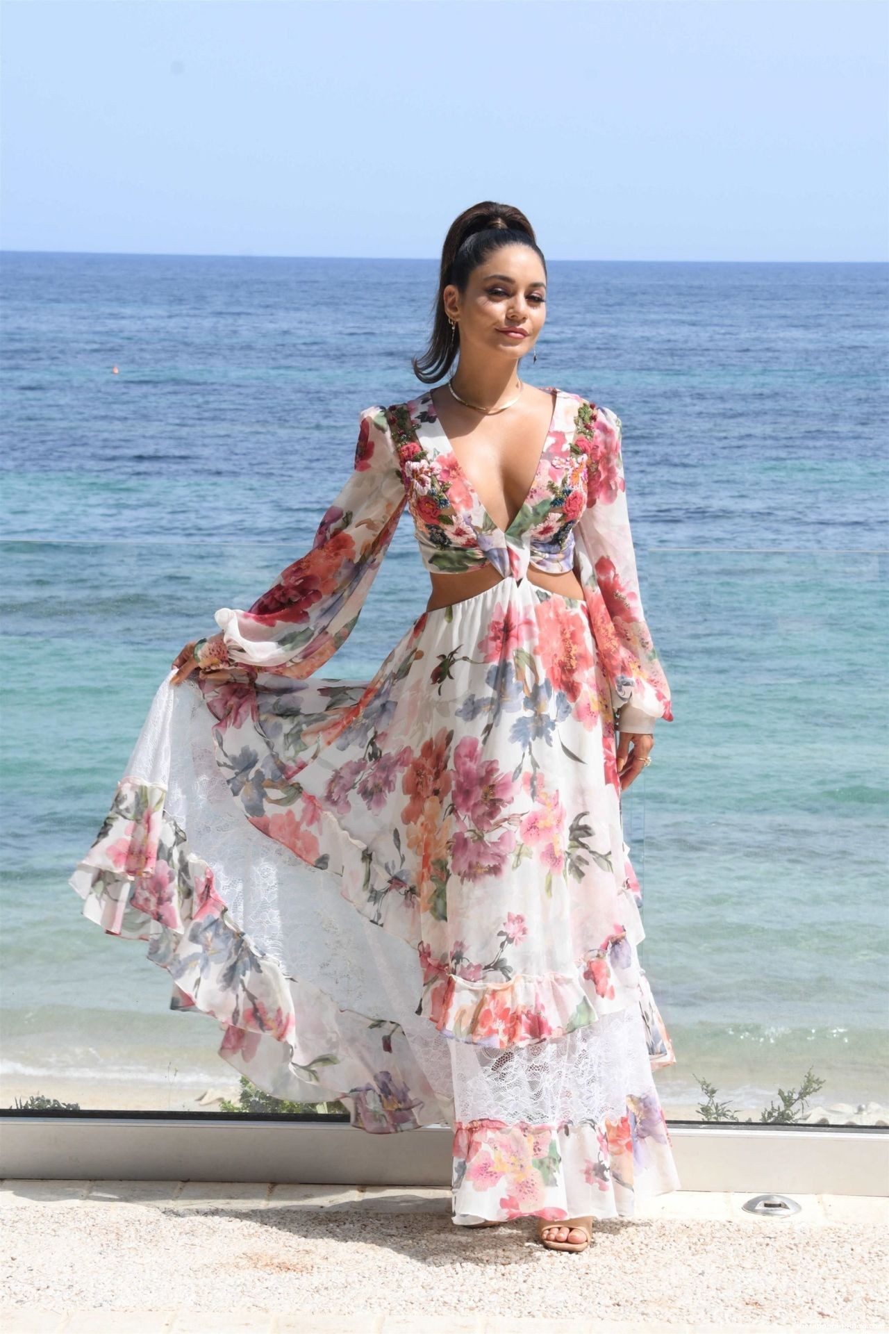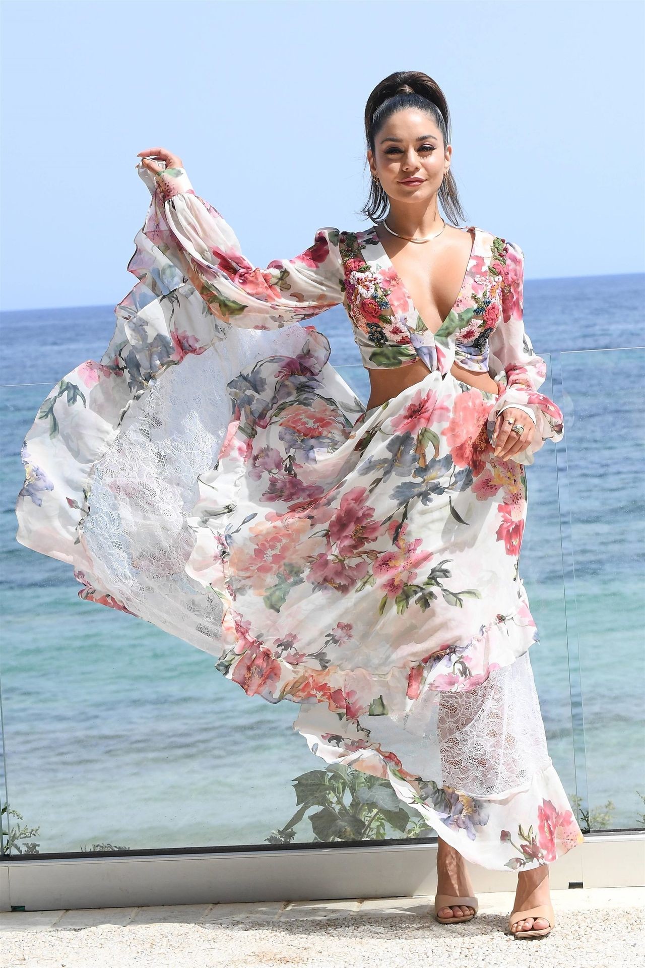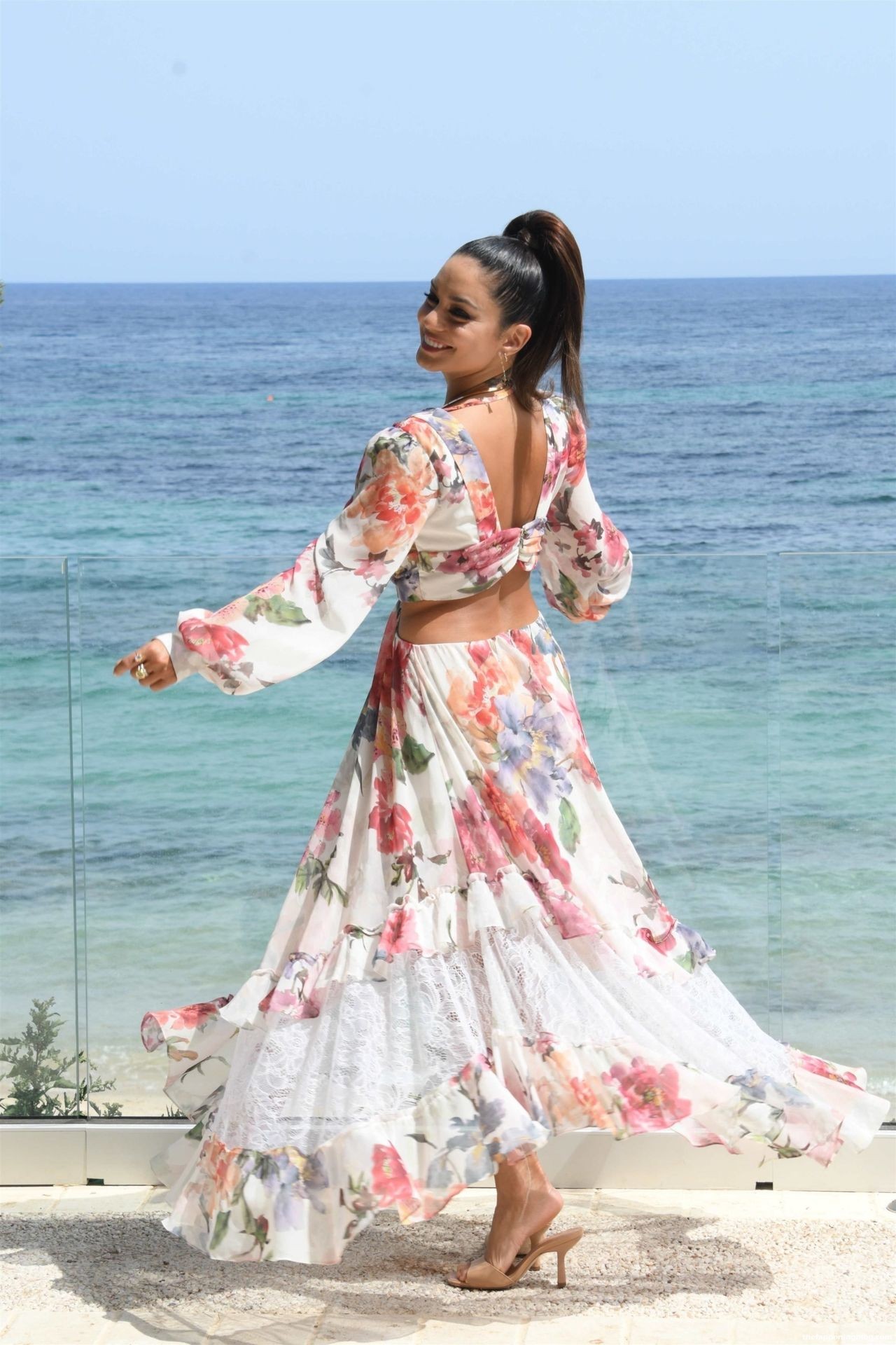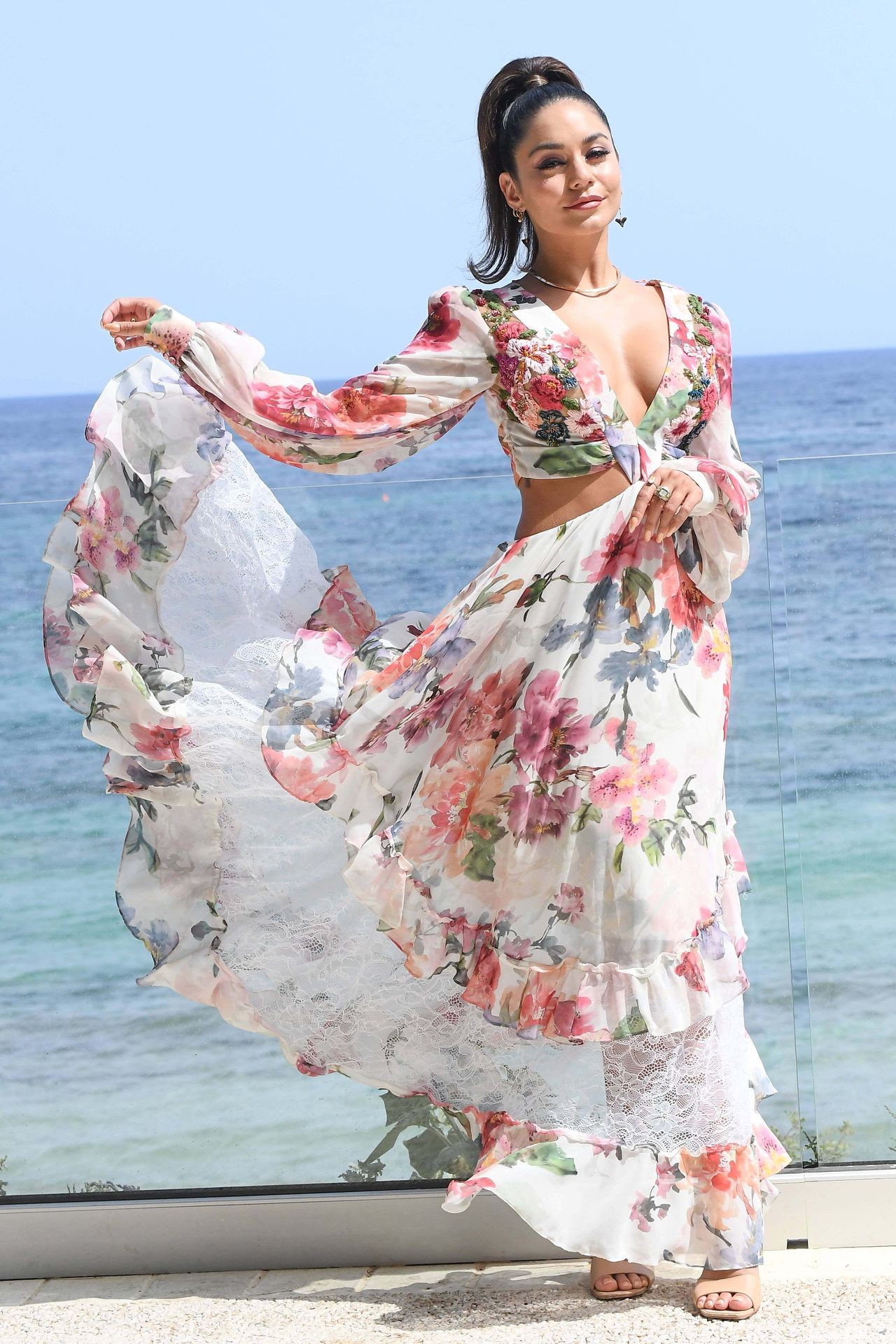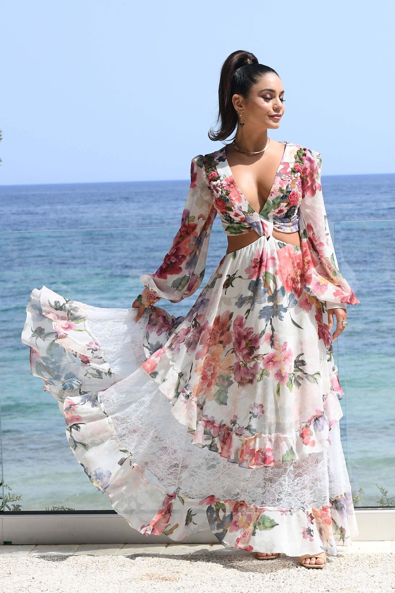 La star de The Fappening et actrice Vanessa Hudgens pose sans soutien-gorge dans une robe d’été au Filming Italy Sardegna Festival, le 24/07/2021.