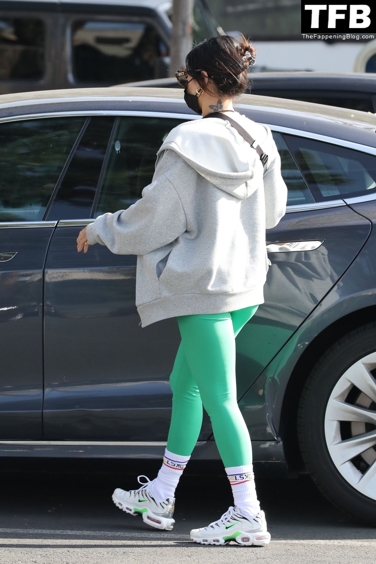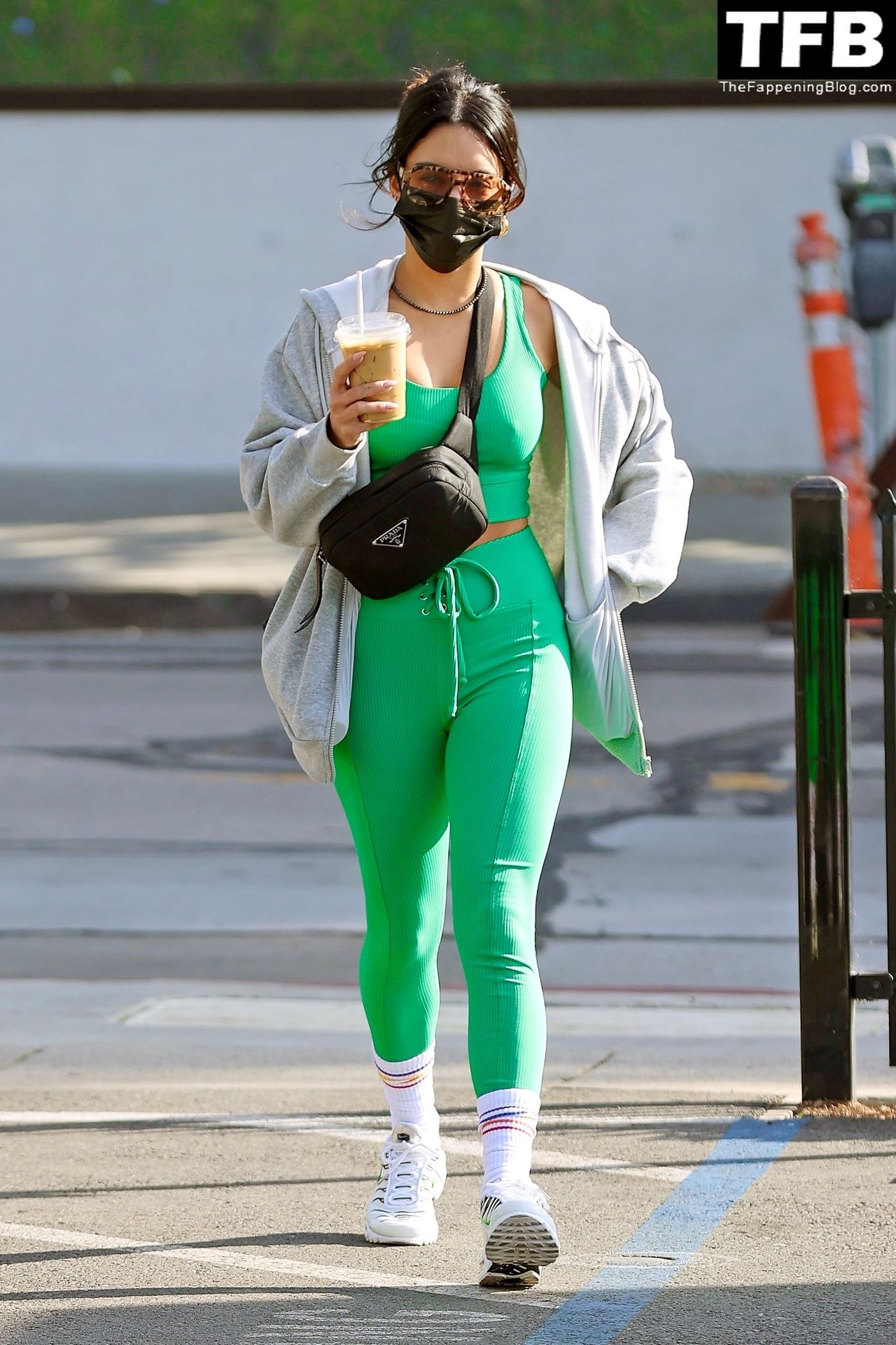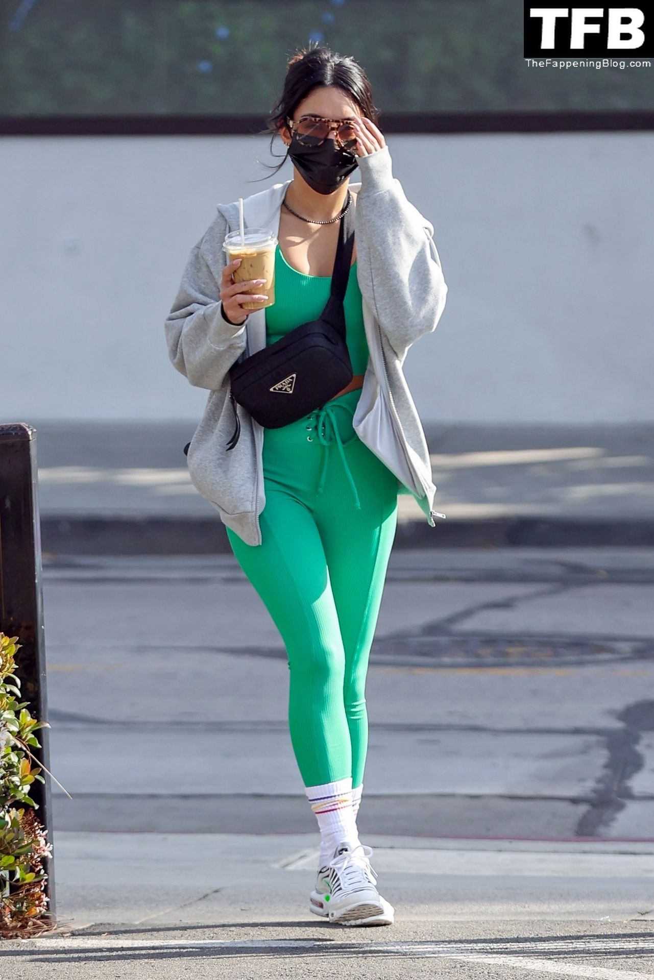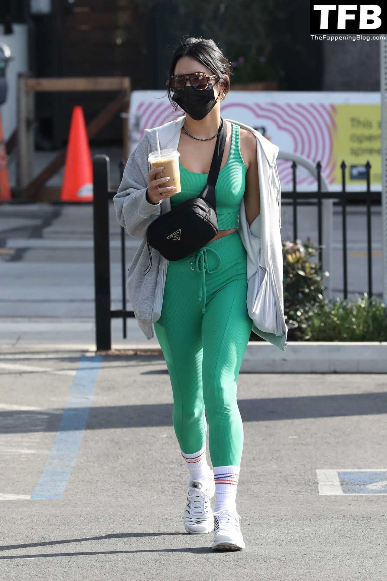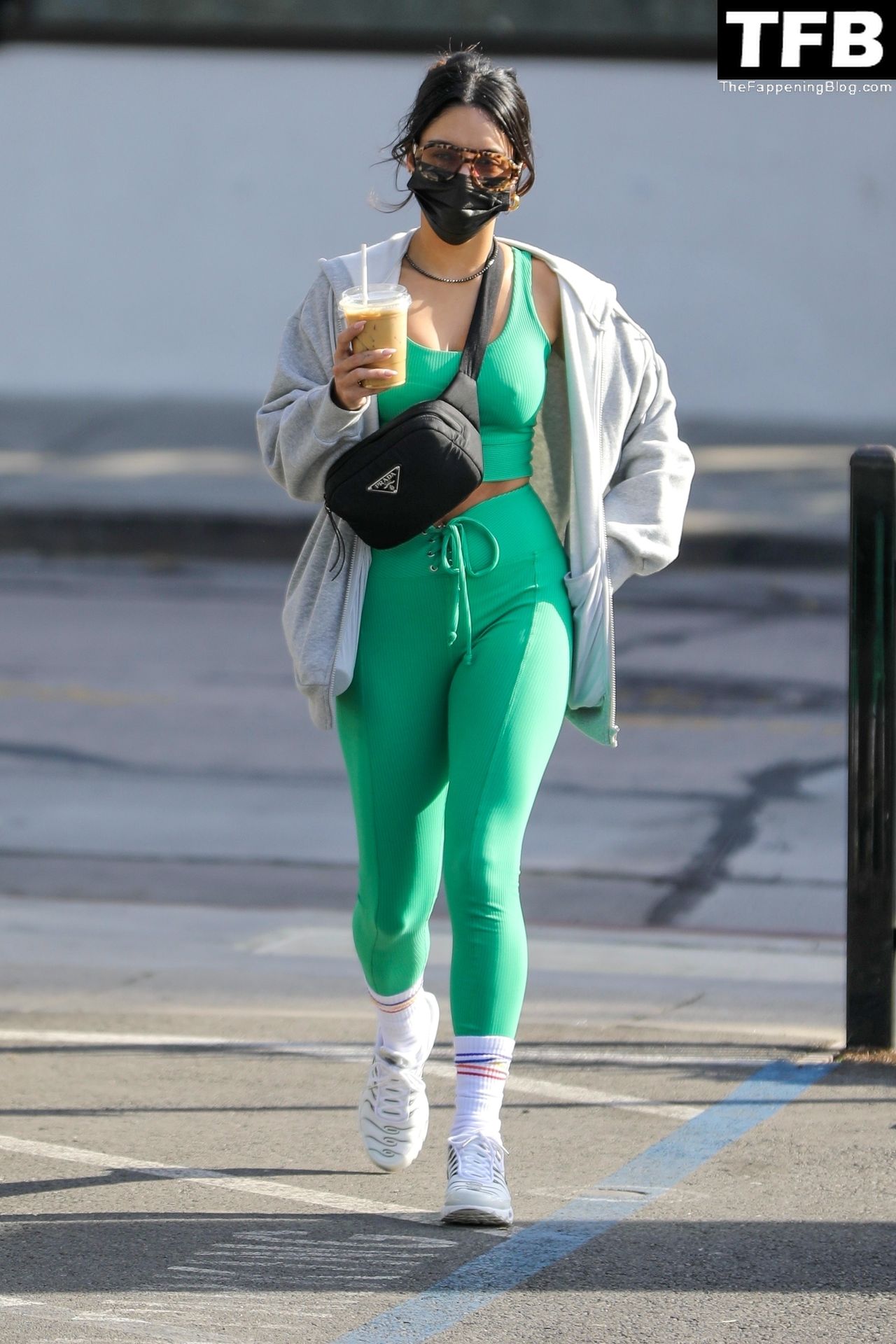 La star de The Fappening Vanessa Hudgens savoure son café glacé après une séance au Dogpound Gym à West Hollywood, 14/01/2022.