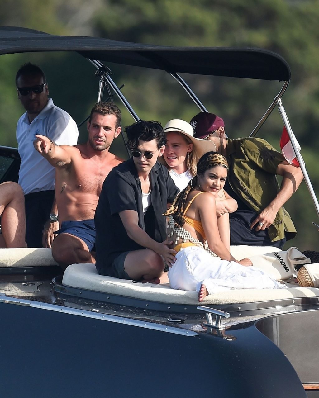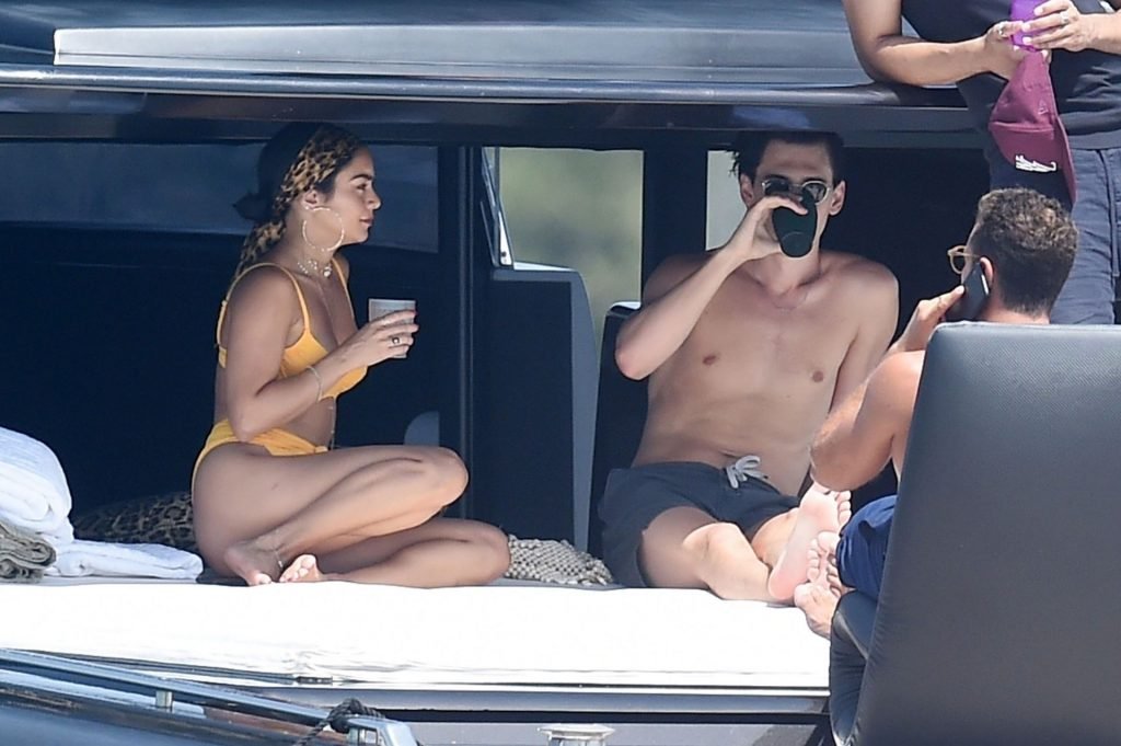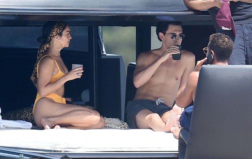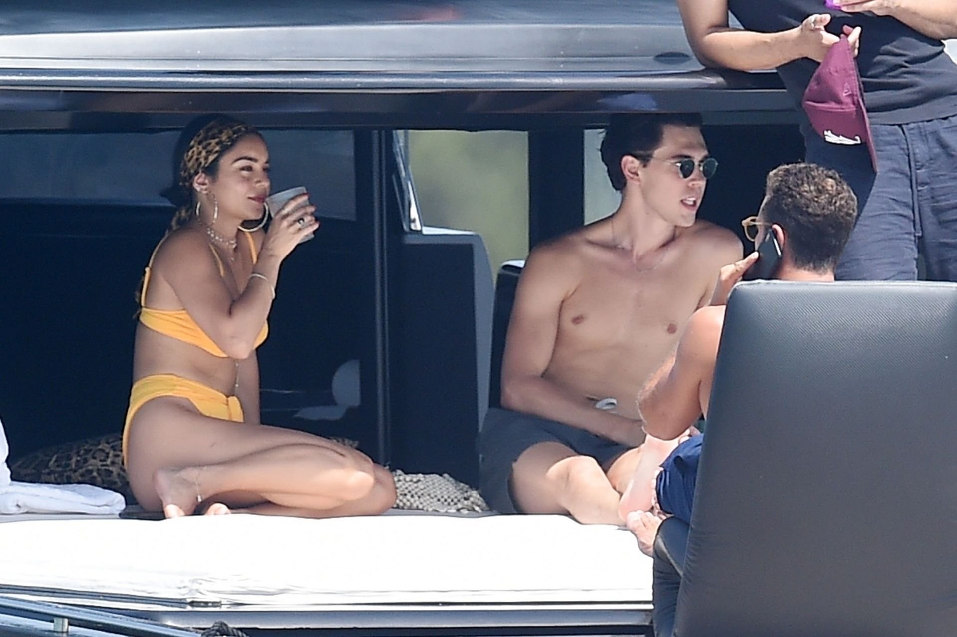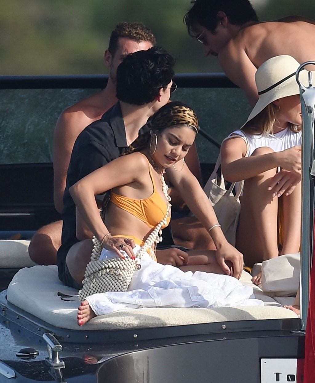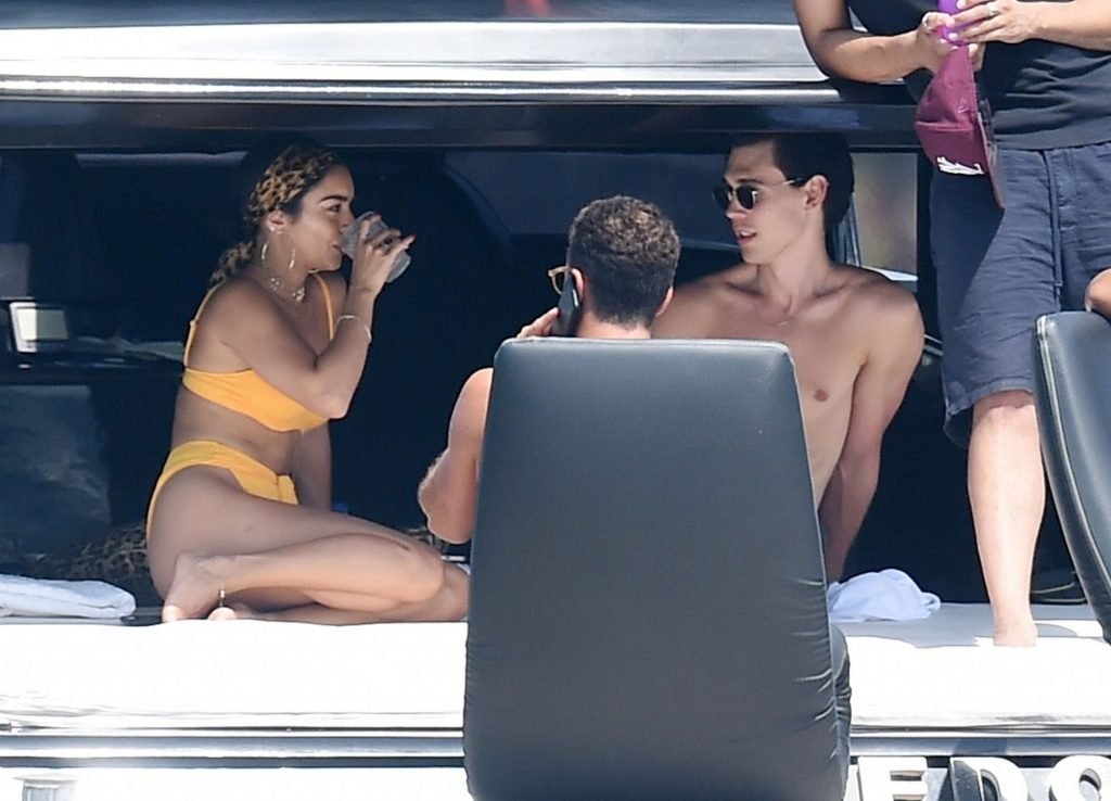 L’actrice américaine Vanessa Hudgens et son petit ami Austin Butler ont été aperçus lors de leurs vacances ensoleillées à bord de leur yacht à Porto Cervo, en Italie, le 12/08/2019.