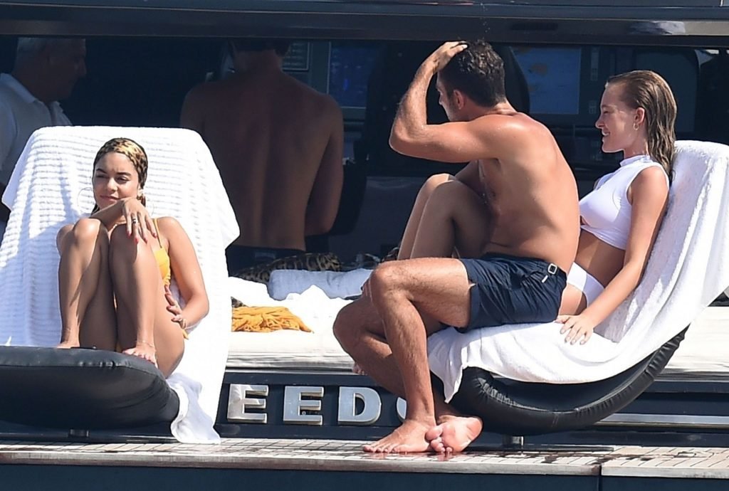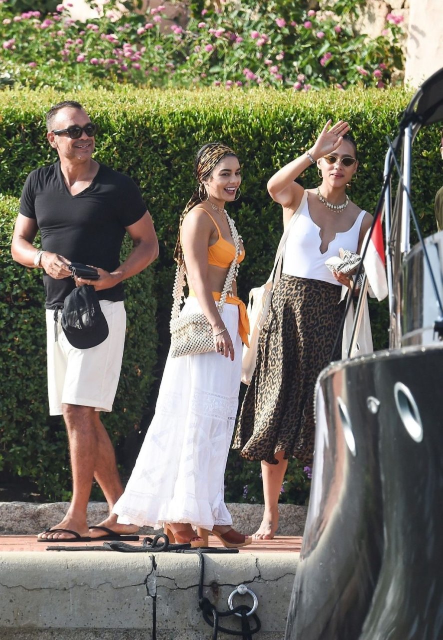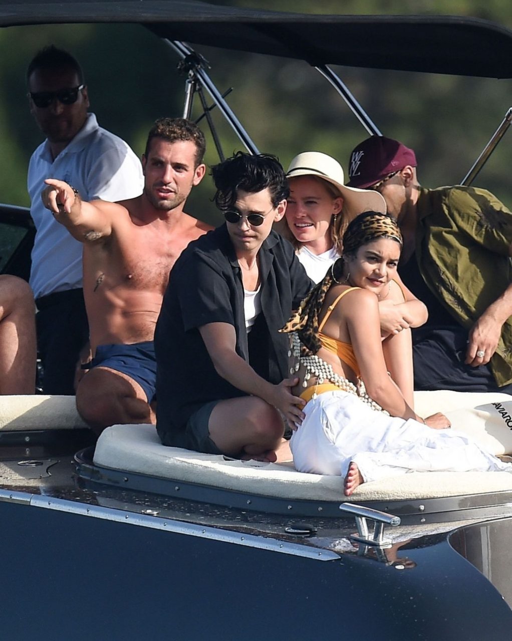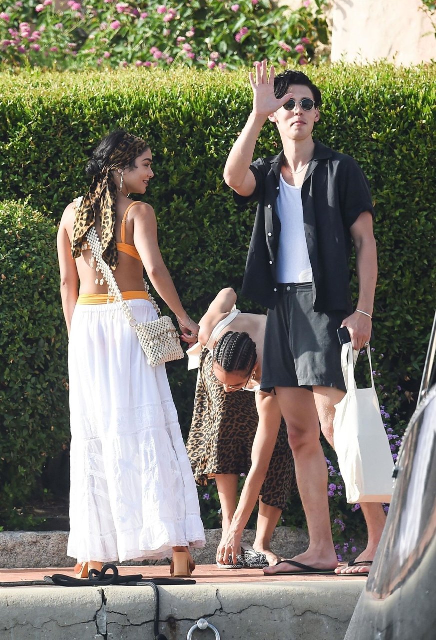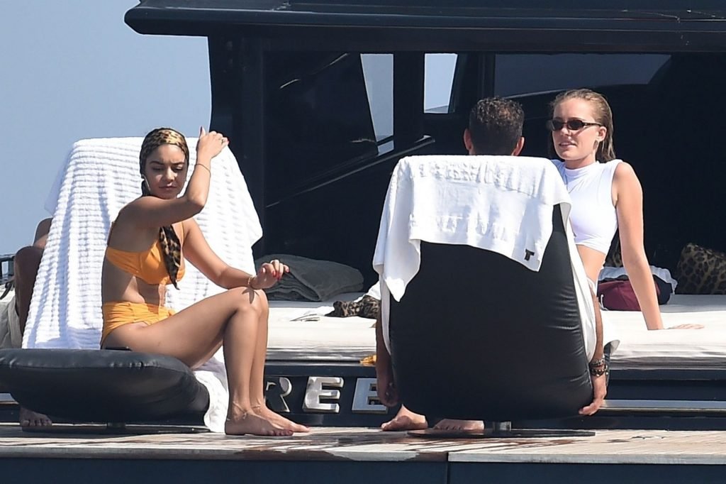 L’actrice américaine Vanessa Hudgens et son petit ami Austin Butler ont été aperçus lors de leurs vacances ensoleillées à bord de leur yacht à Porto Cervo, en Italie, le 12/08/2019.