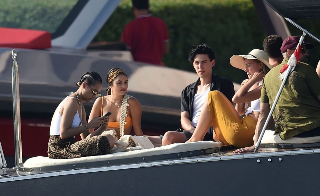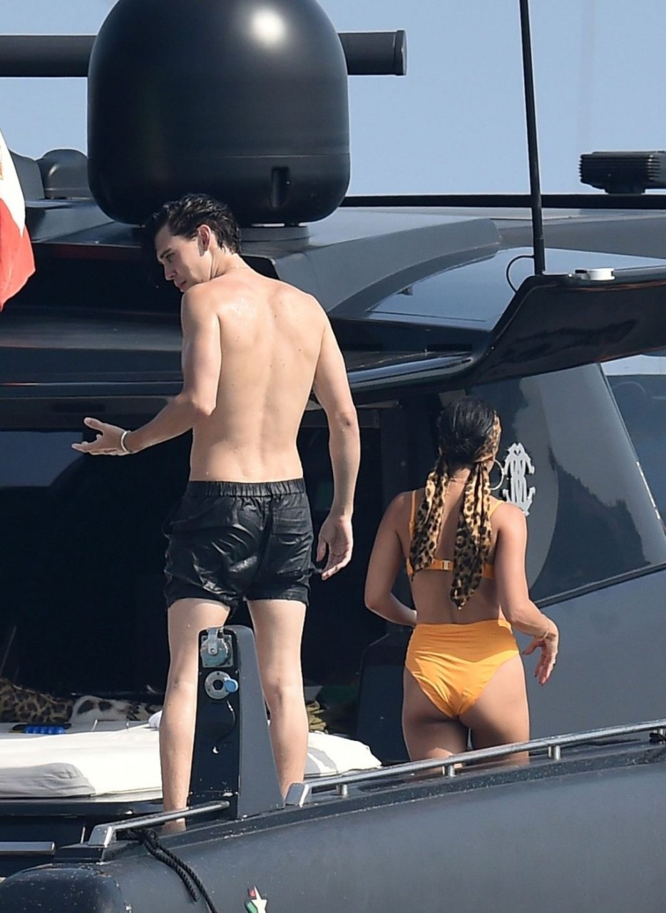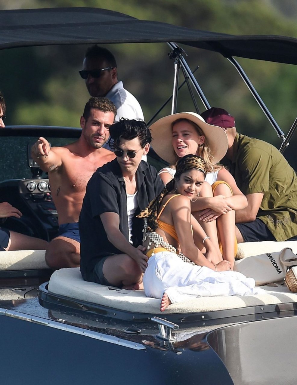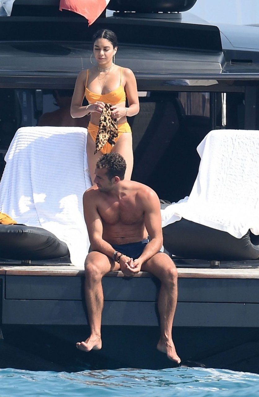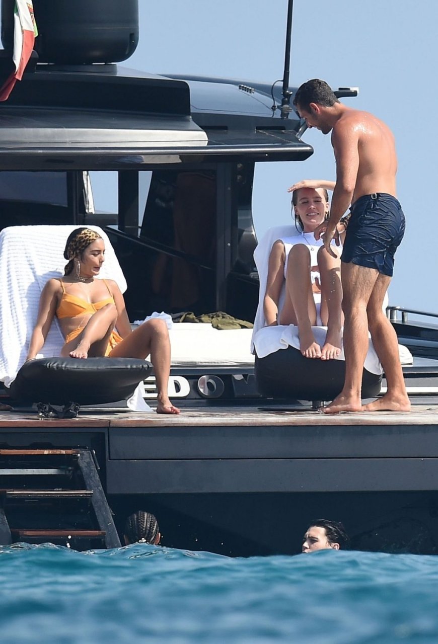 L’actrice américaine Vanessa Hudgens et son petit ami Austin Butler ont été aperçus lors de leurs vacances ensoleillées à bord de leur yacht à Porto Cervo, en Italie, le 12/08/2019.