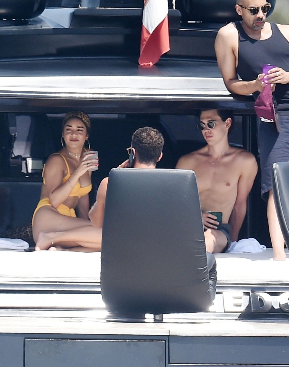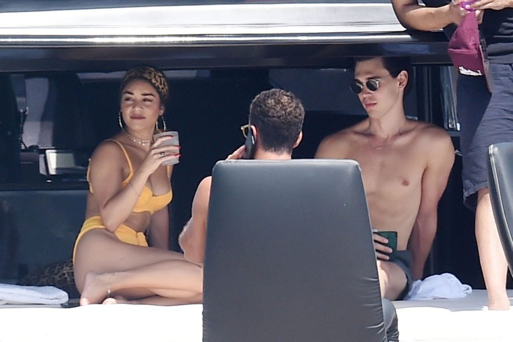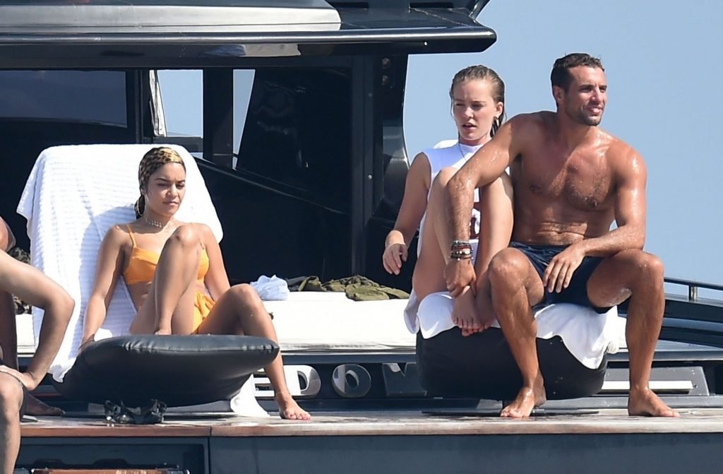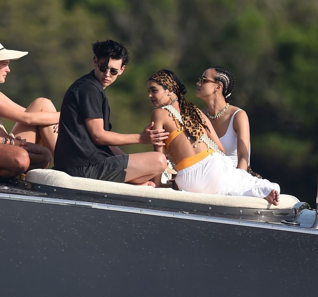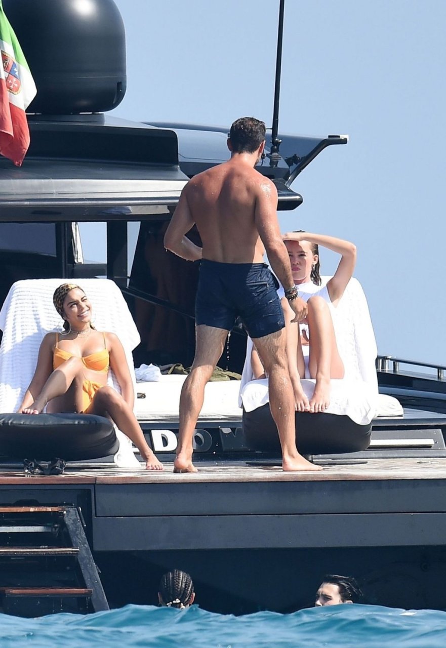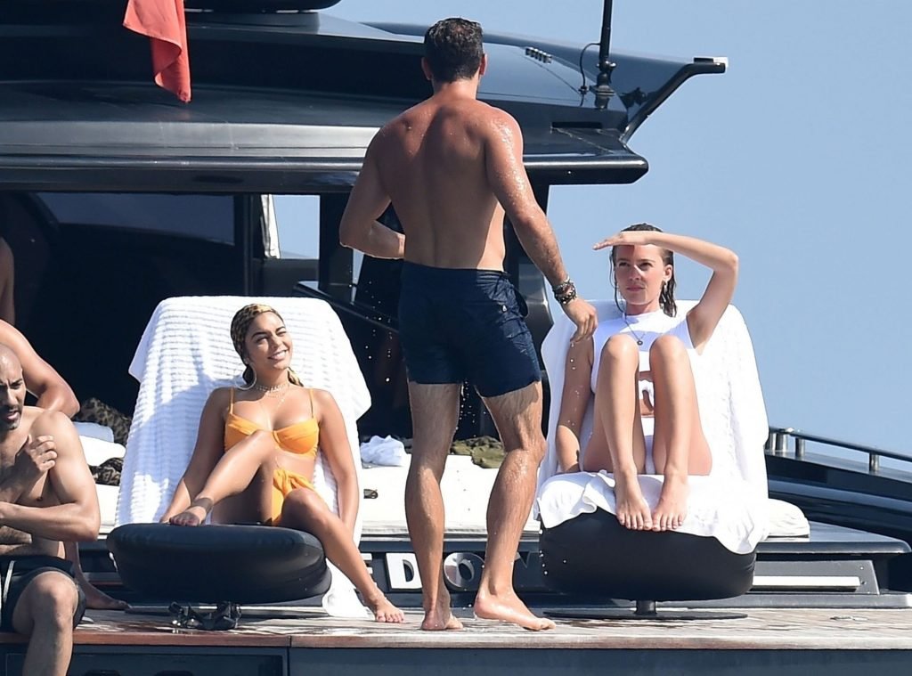 L’actrice américaine Vanessa Hudgens et son petit ami Austin Butler ont été aperçus lors de leurs vacances ensoleillées à bord de leur yacht à Porto Cervo, en Italie, le 12/08/2019.