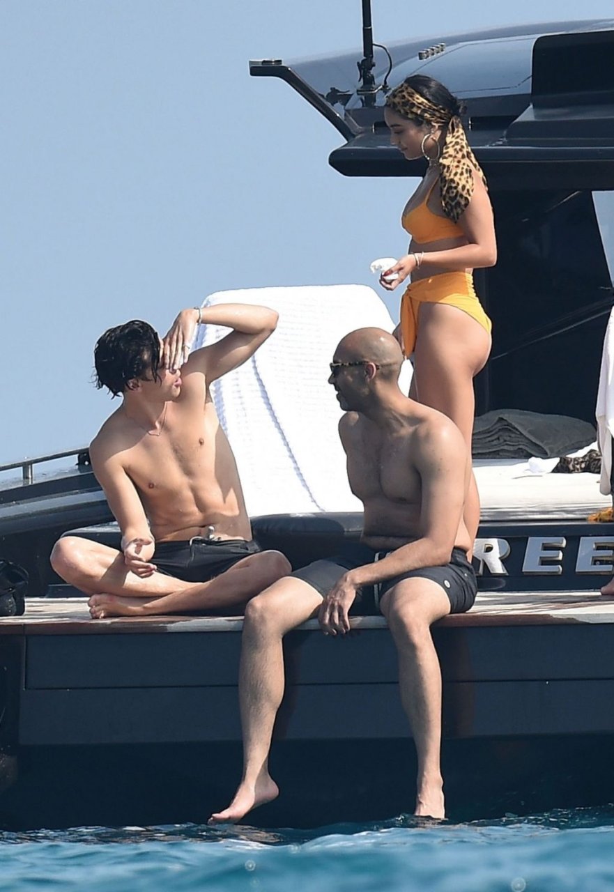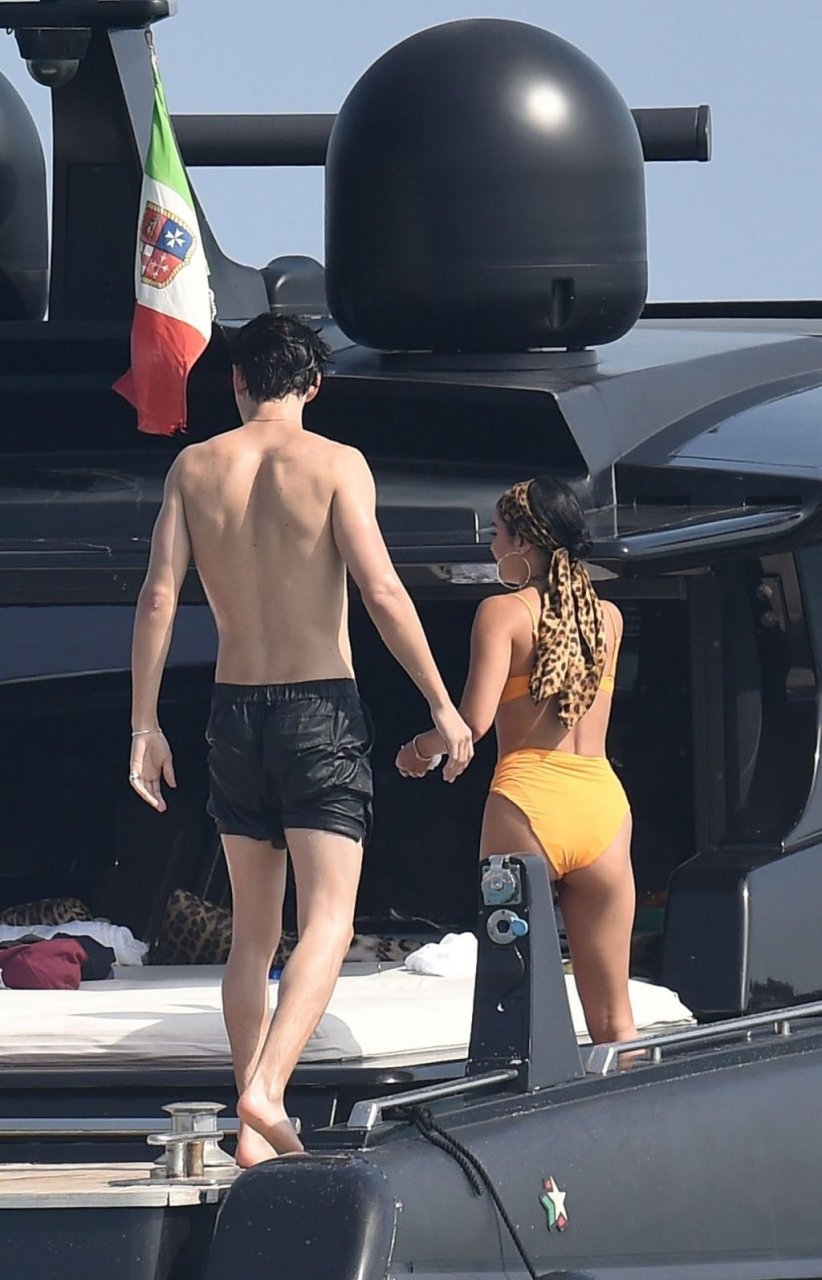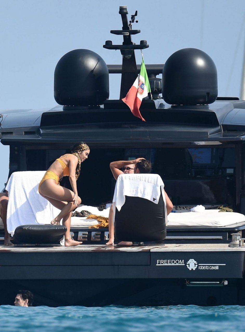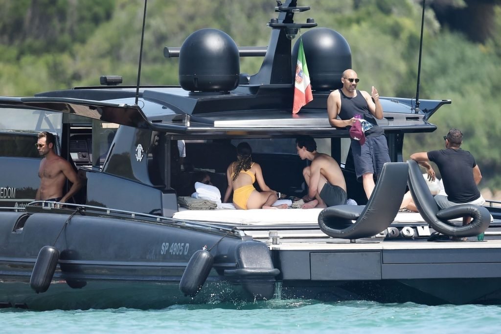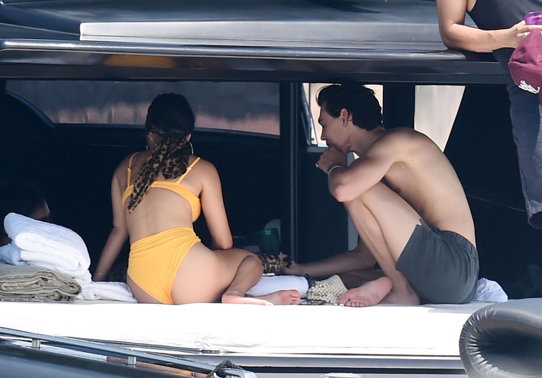 L’actrice américaine Vanessa Hudgens et son petit ami Austin Butler ont été aperçus lors de leurs vacances ensoleillées à bord de leur yacht à Porto Cervo, en Italie, le 12/08/2019.