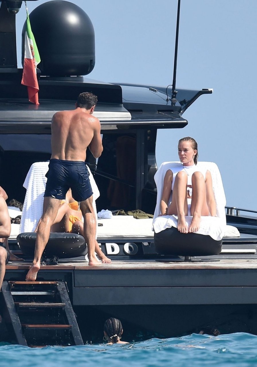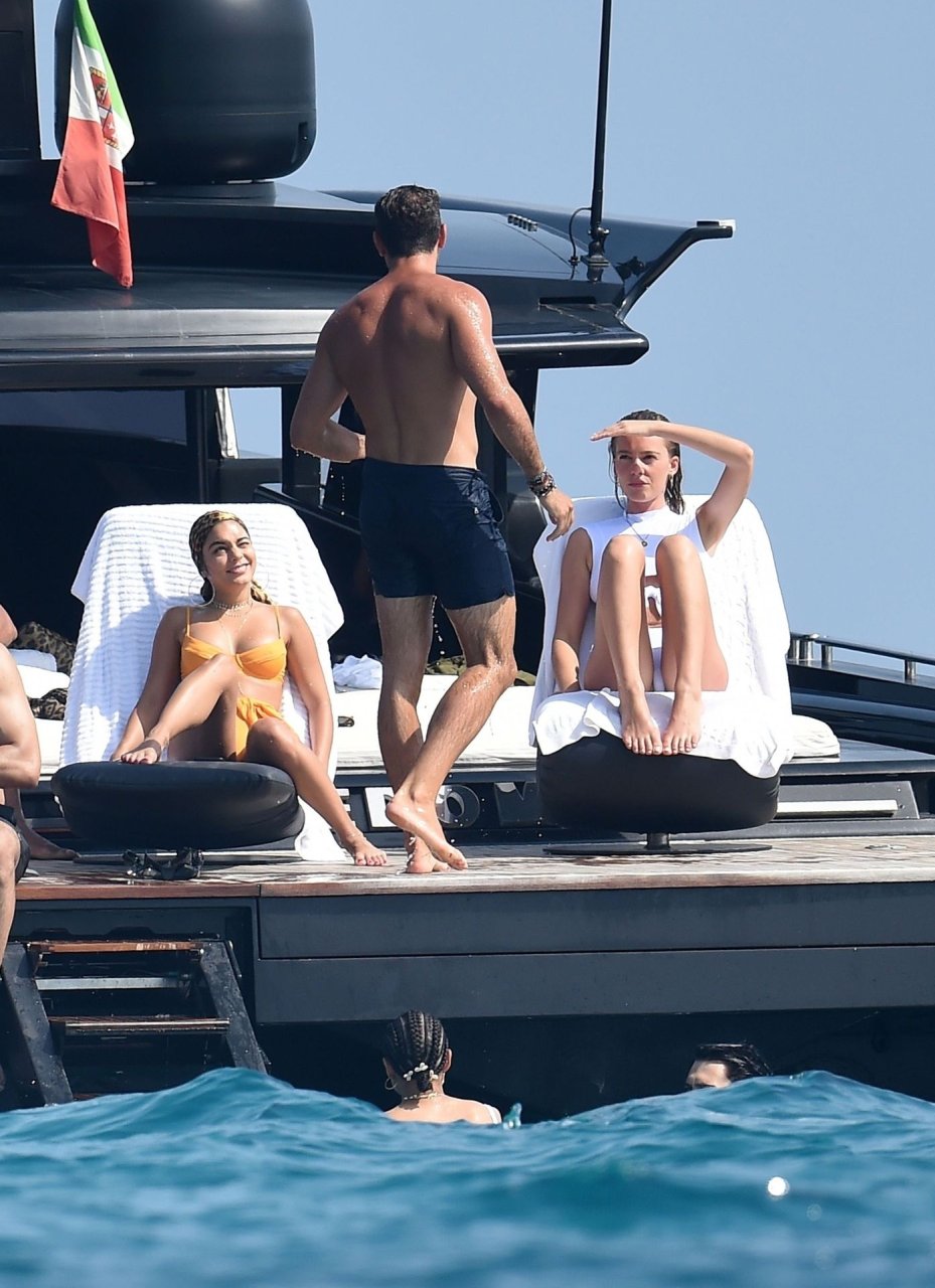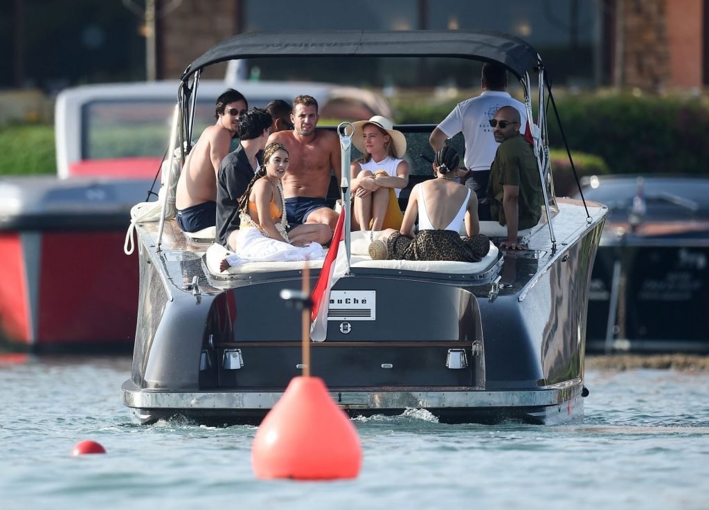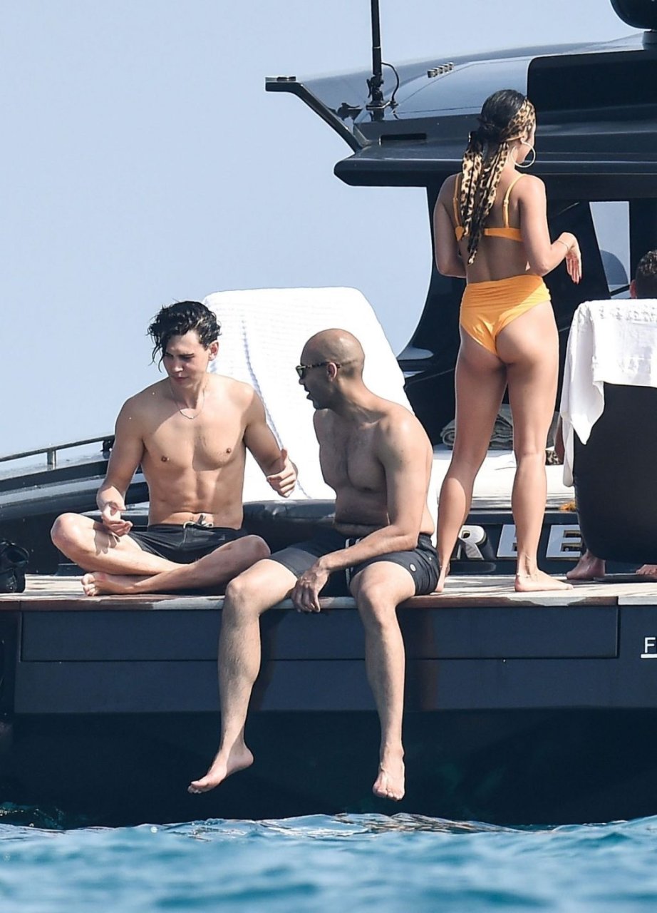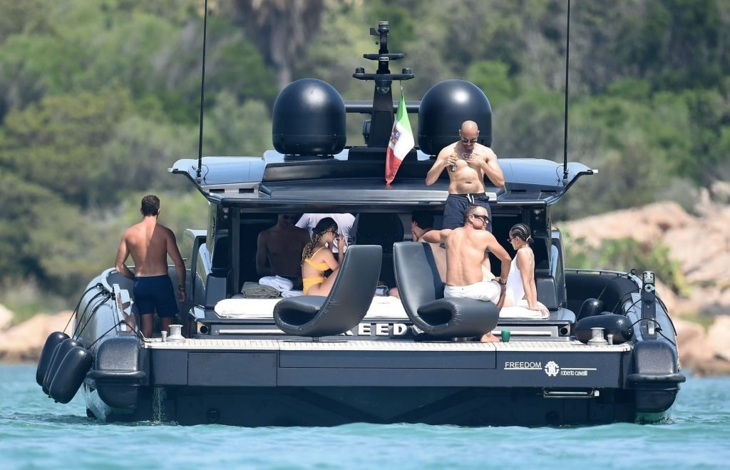 L’actrice américaine Vanessa Hudgens et son petit ami Austin Butler ont été aperçus lors de leurs vacances ensoleillées à bord de leur yacht à Porto Cervo, en Italie, le 12/08/2019.