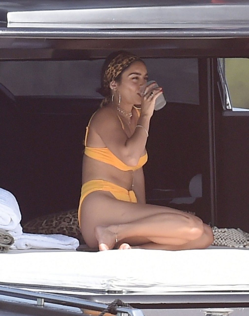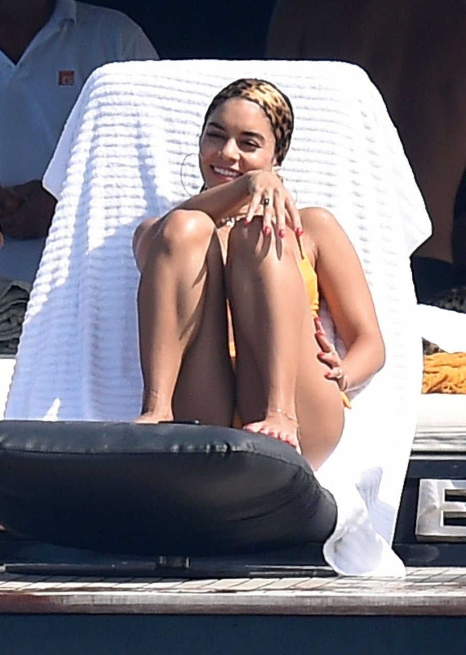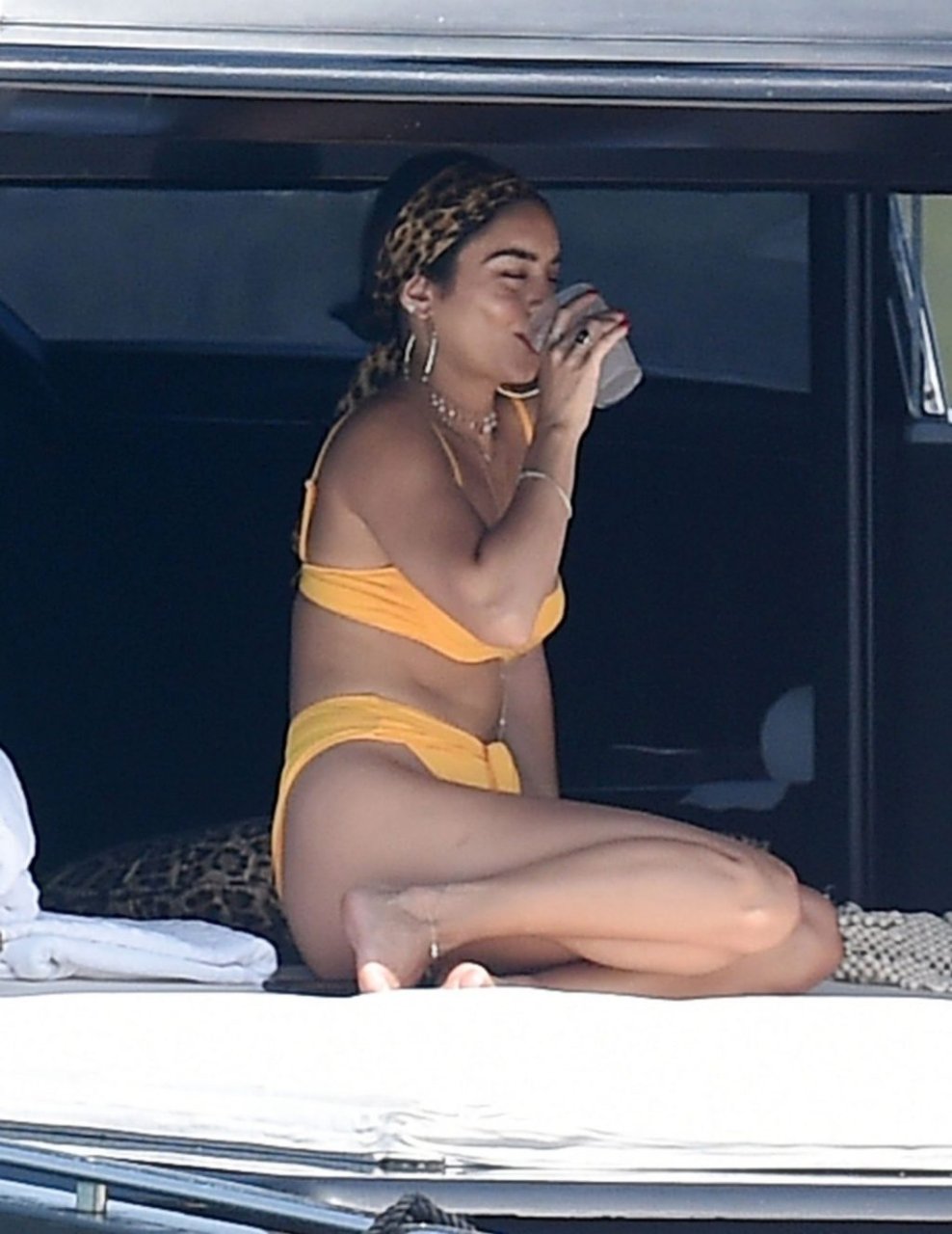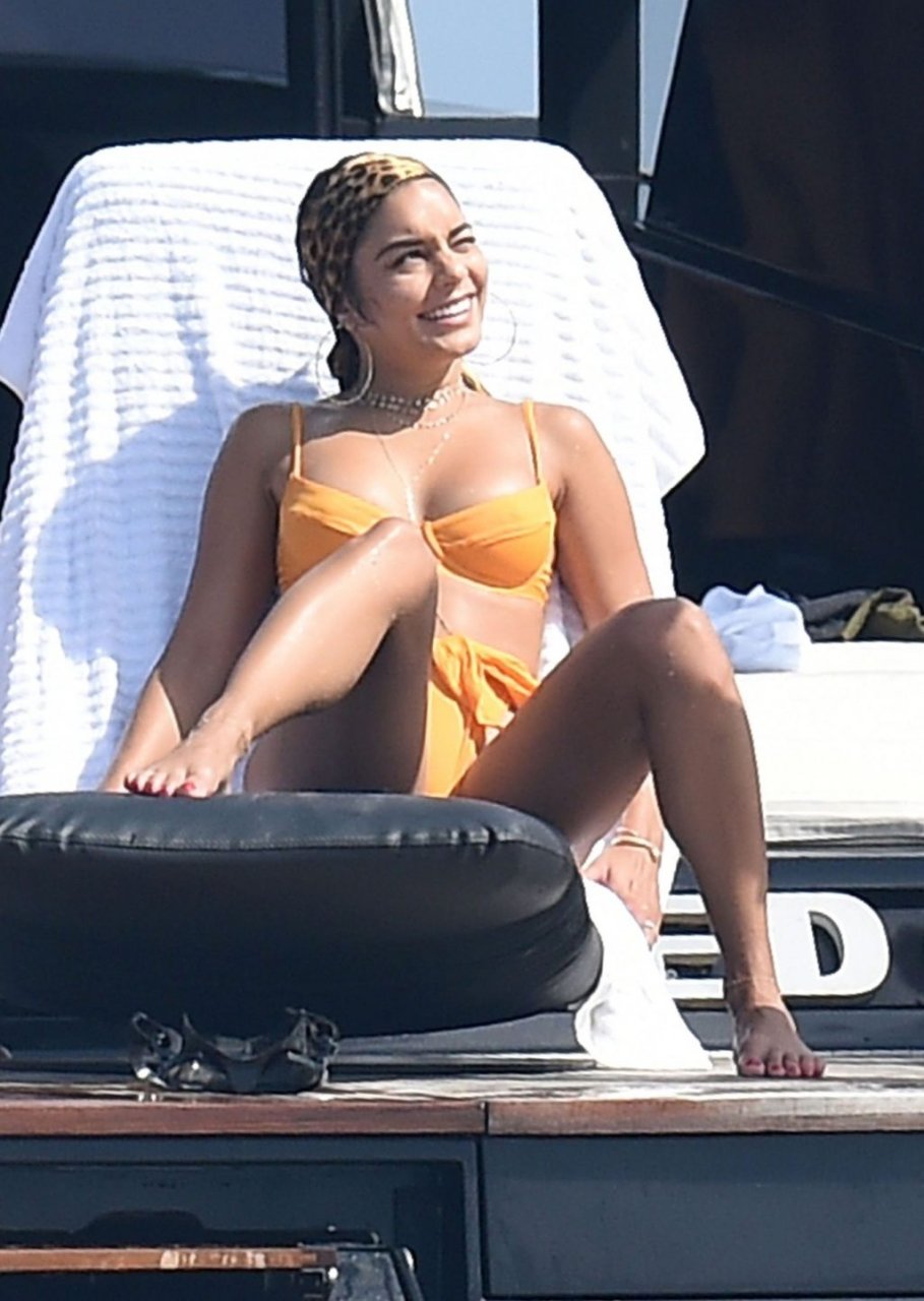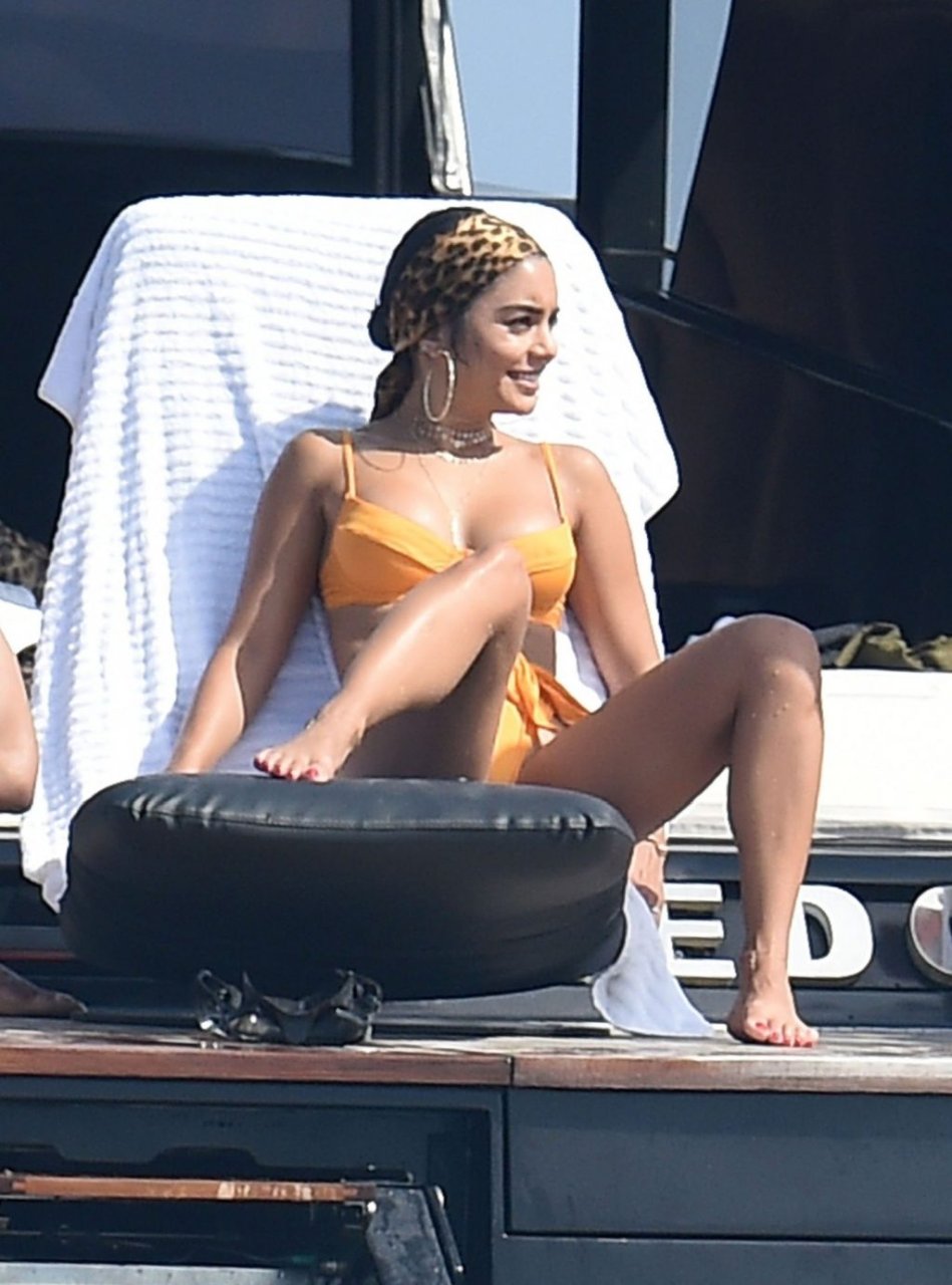 Vanessa portait un bikini orange séduisant mettant en valeur ce corps chaud et sexy et était accompagnée lors du voyage par le mannequin Georgia Gibbs et son nouveau petit ami Tommy Chiabra ainsi que l’actrice britannique Nathalie Emmanuel tandis que le groupe s’amuse un peu au soleil.