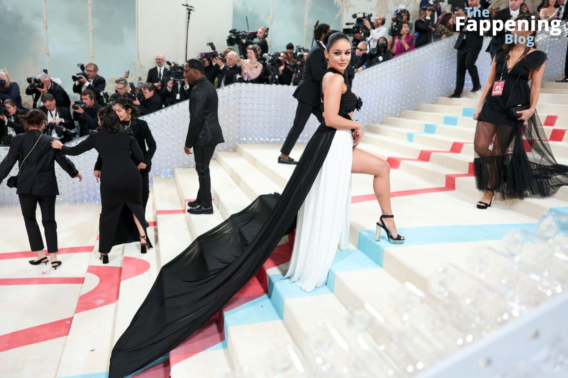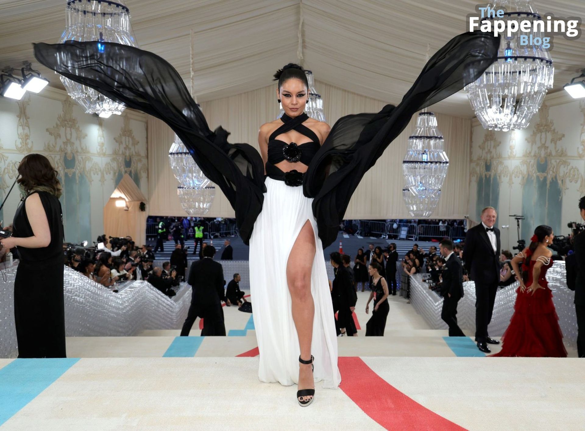 La star du Fappening Vanessa Hudgens est vue marchant sur le tapis rouge du gala 2023 du Costume Institute du Metropolitan Museum of Art célébrant l’ouverture de l’exposition intitulée Karl Lagerfeld : Une ligne de beauté tenue au Metropolitan Museum of Art à New York, 01/05/2023.