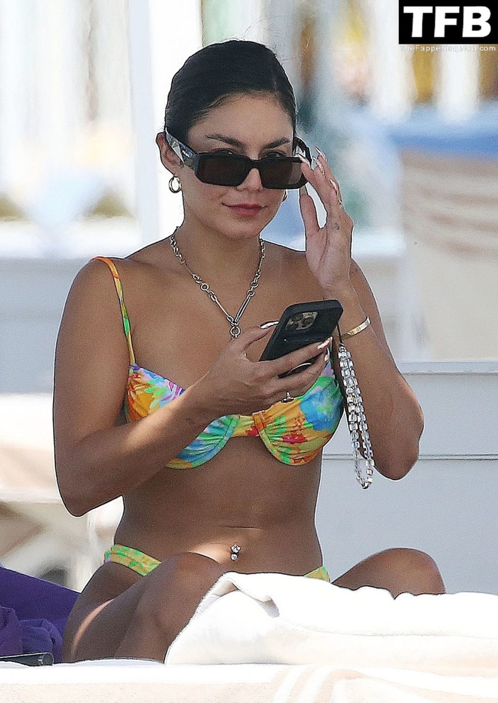 L’actrice américaine de 33 ans, chanteuse et star de The Fappening Vanessa Hudgens exhibe son incroyable silhouette de plage tout en profitant de vacances d’été avec sa sœur Stella en Italie, 28/07/202.