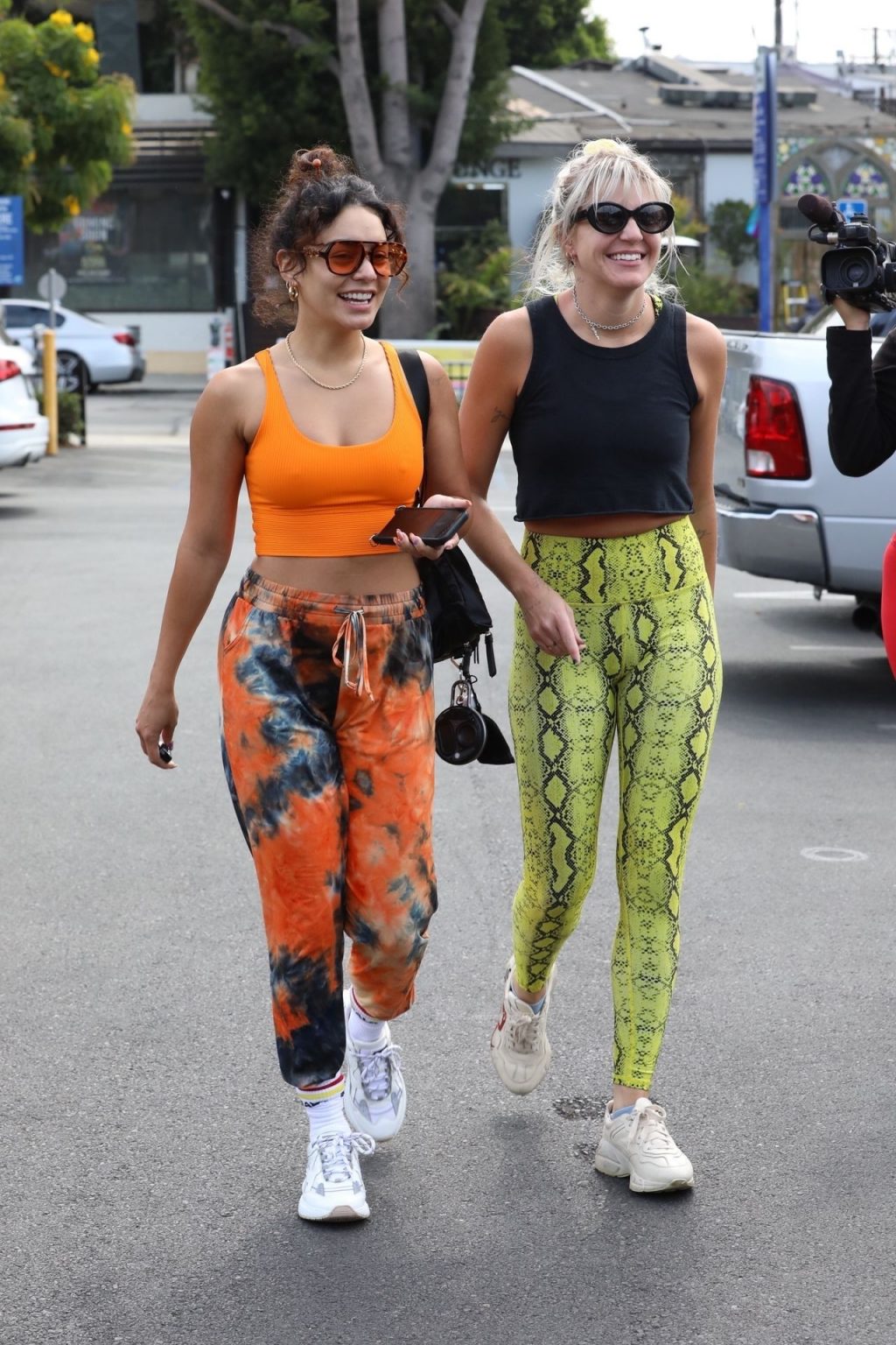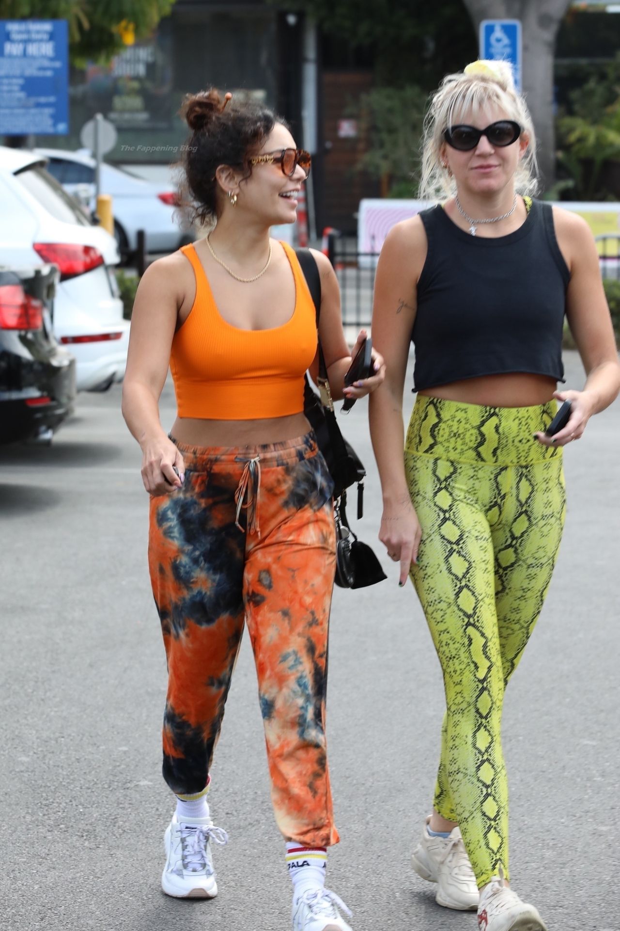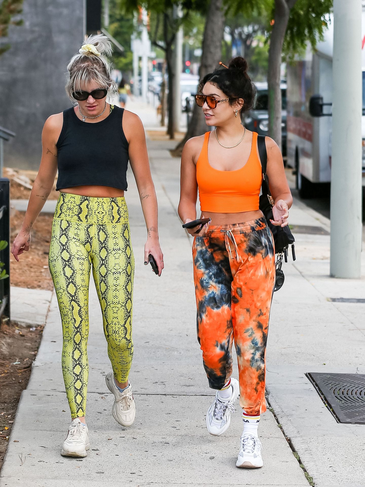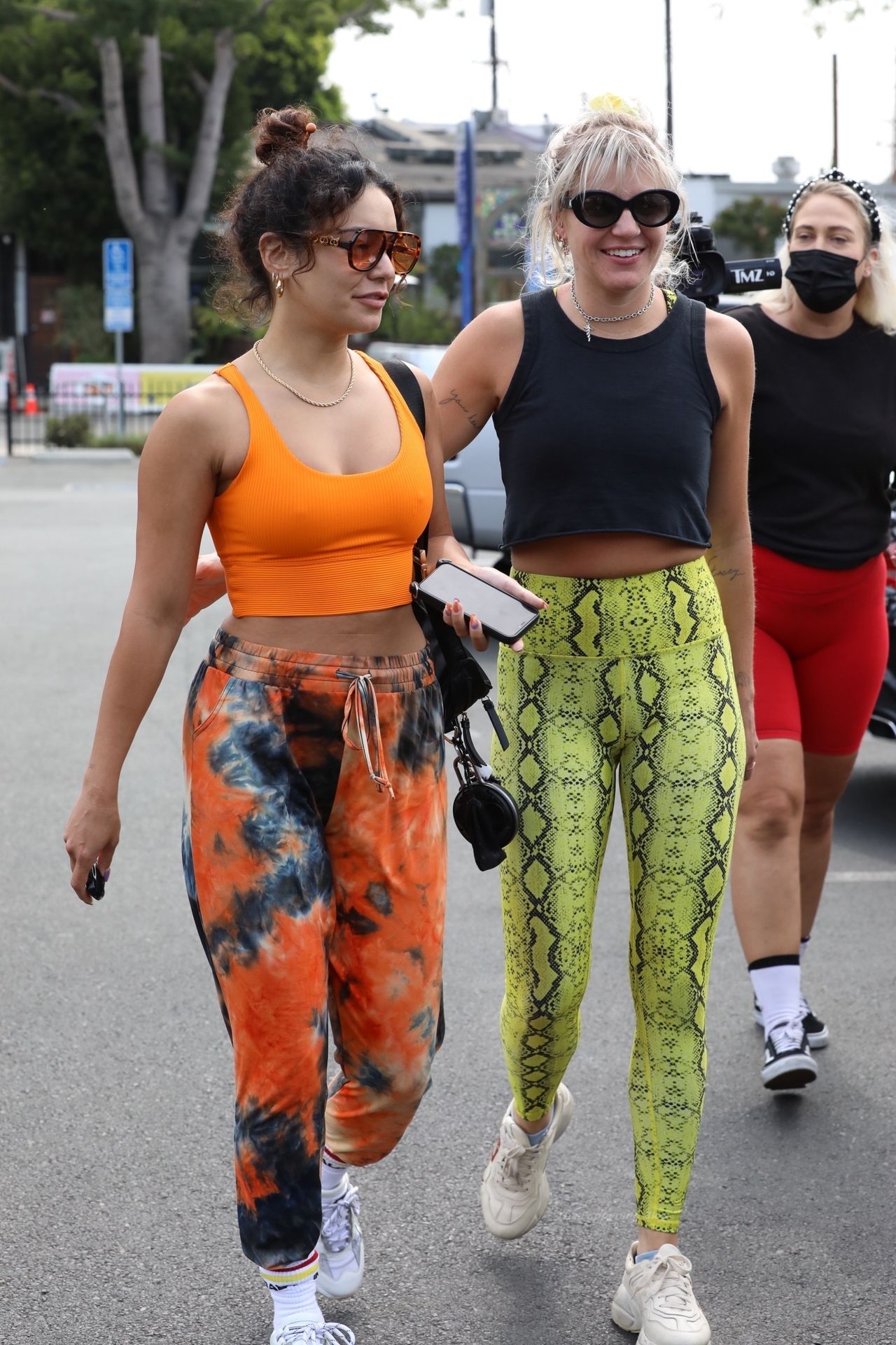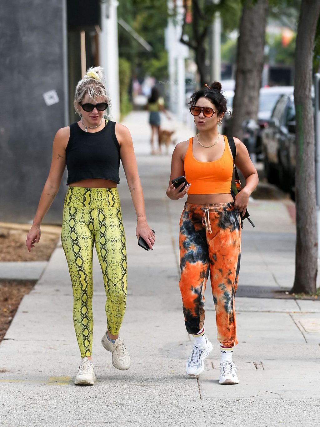 La star de The Fappening, l’actrice Vanessa Hudgens et sa meilleure amie, la chanteuse GG Magree, quittent la salle de sport Dogpound à West Hollywood et leur mode de gym ne passe pas inaperçue, 29/06/2021.