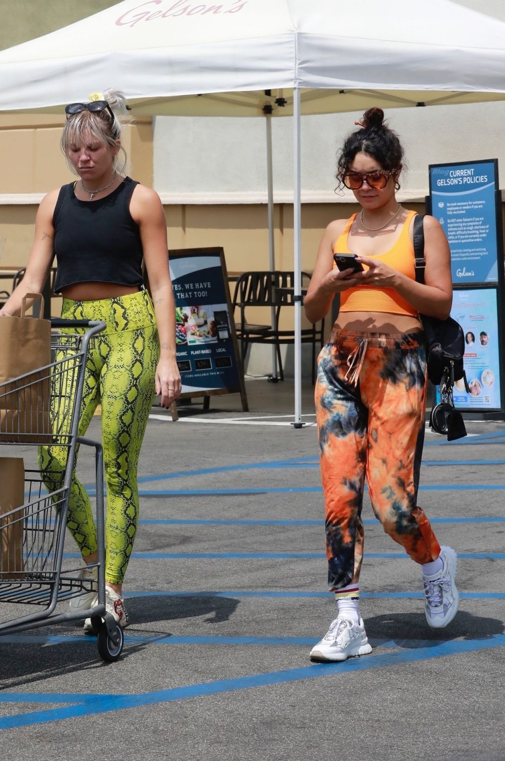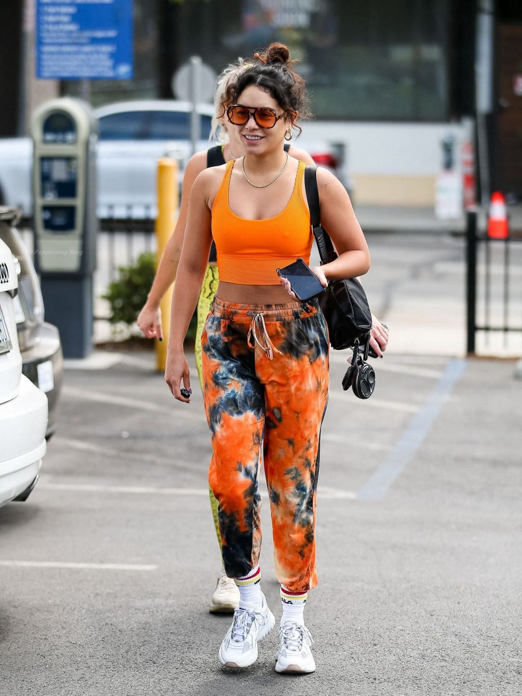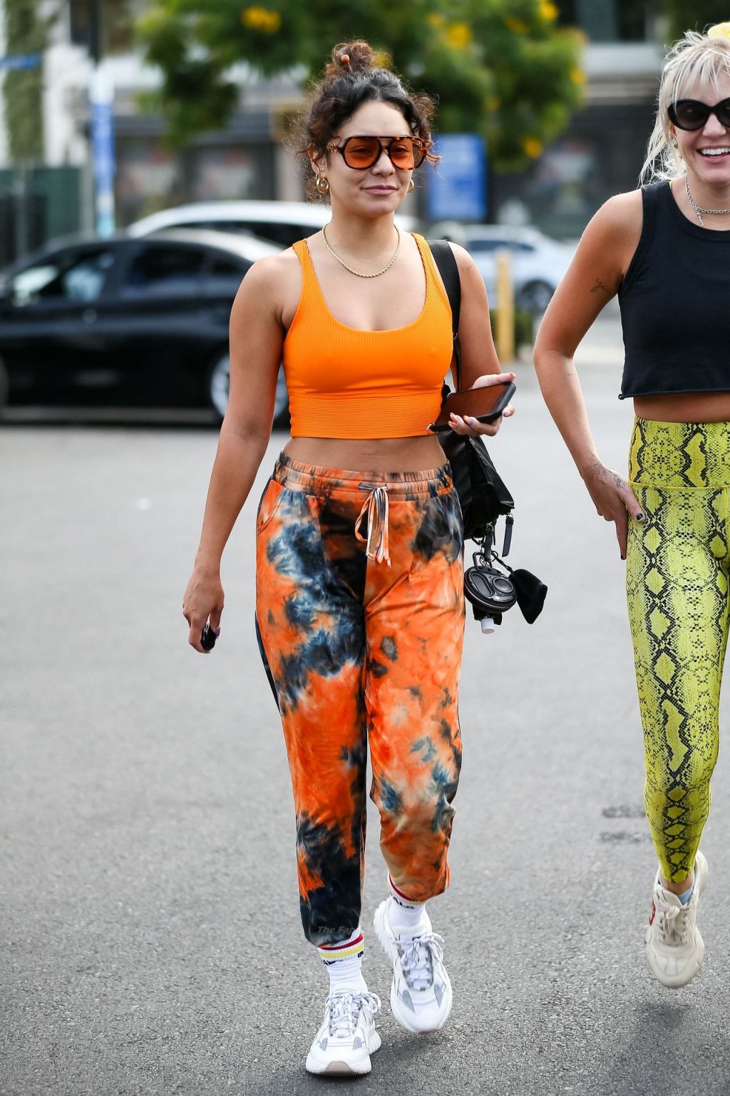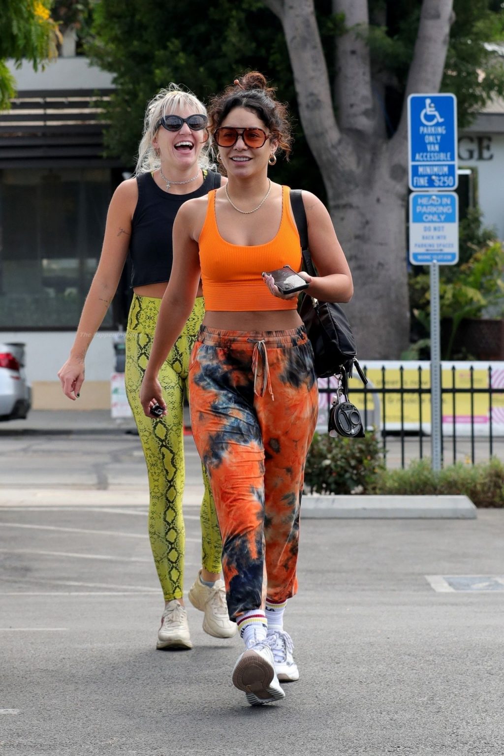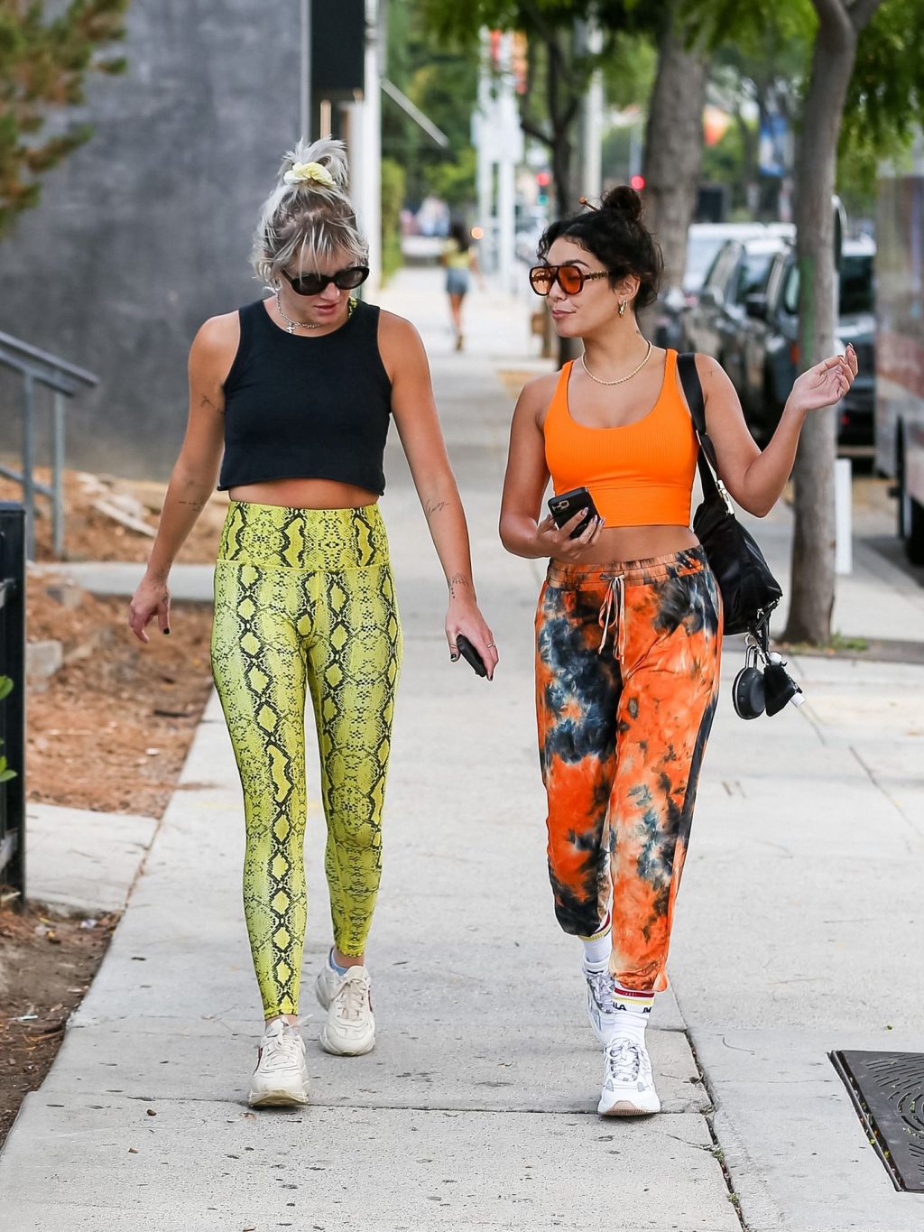 La star de The Fappening, l’actrice Vanessa Hudgens et sa meilleure amie, la chanteuse GG Magree, quittent la salle de sport Dogpound à West Hollywood et leur mode de gym ne passe pas inaperçue, 29/06/2021.