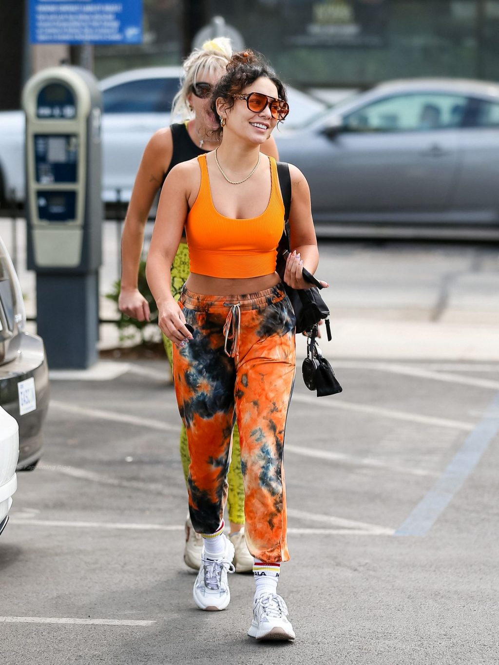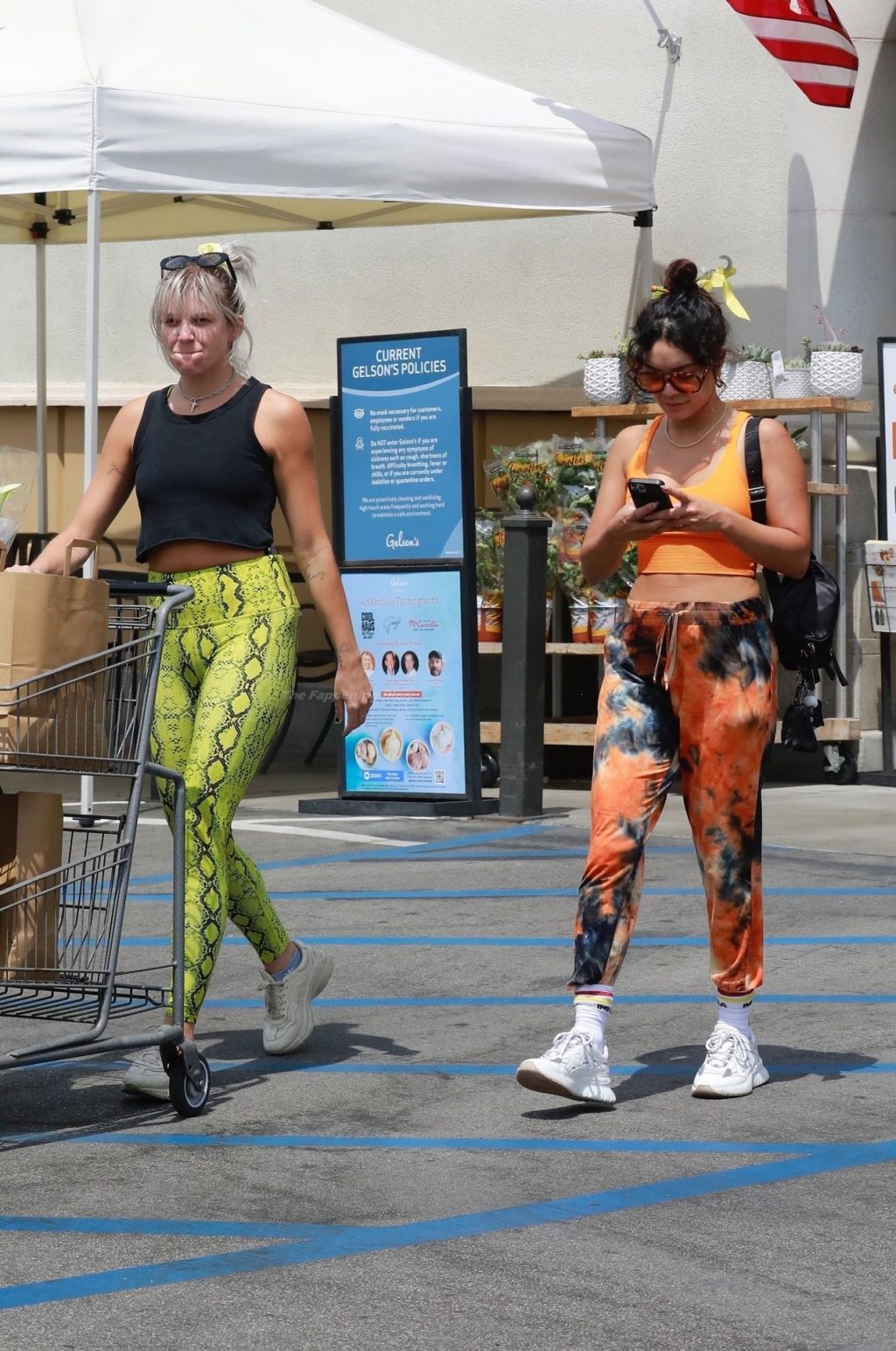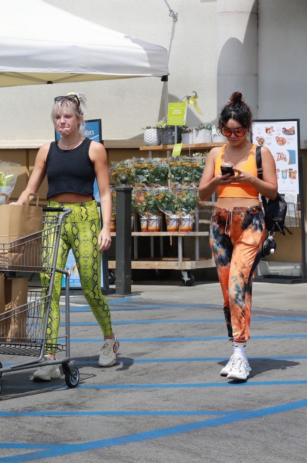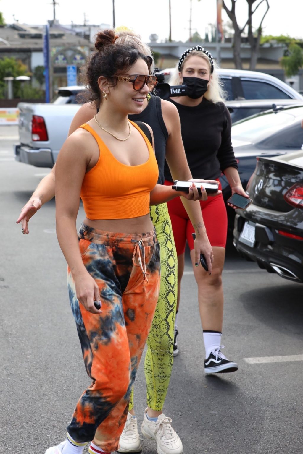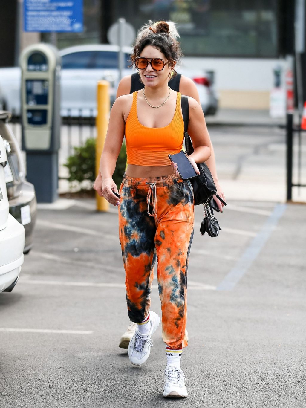 La star de The Fappening, l’actrice Vanessa Hudgens et sa meilleure amie, la chanteuse GG Magree, quittent la salle de sport Dogpound à West Hollywood et leur mode de gym ne passe pas inaperçue, 29/06/2021.