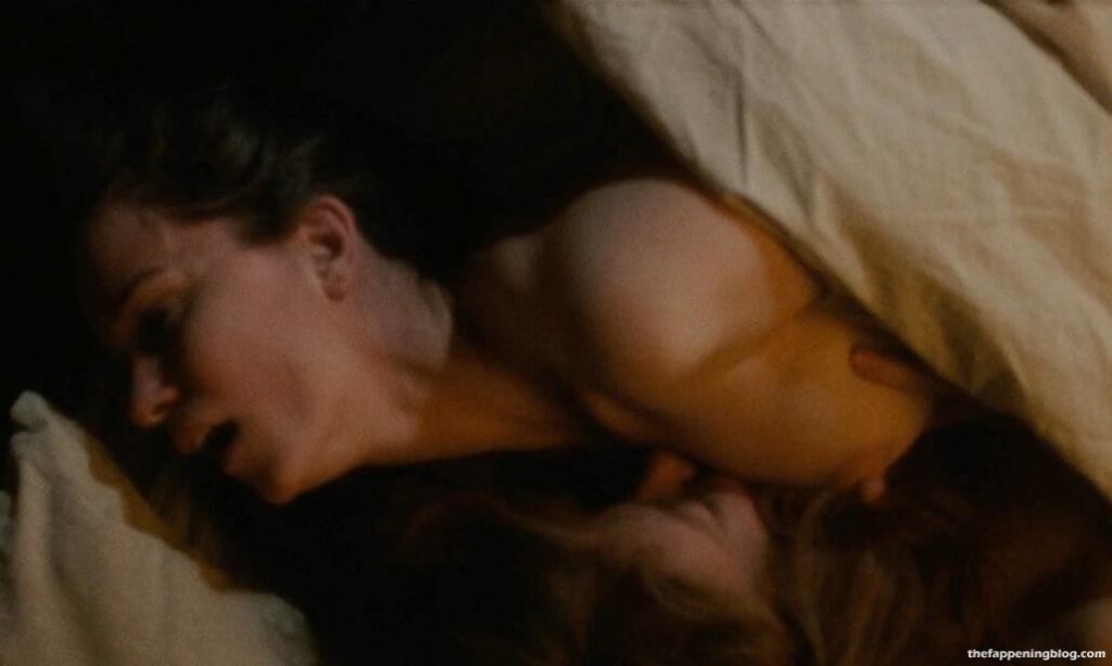 Katherine Waterston et Vanessa Kirby apparaissent toutes deux seins nus dans un montage de scènes lesbiennes où les filles s’embrassent et font l’amour ensemble au lit. Vanessa est celle aux cheveux plus clairs, roux, et Katherine a les cheveux plus foncés.