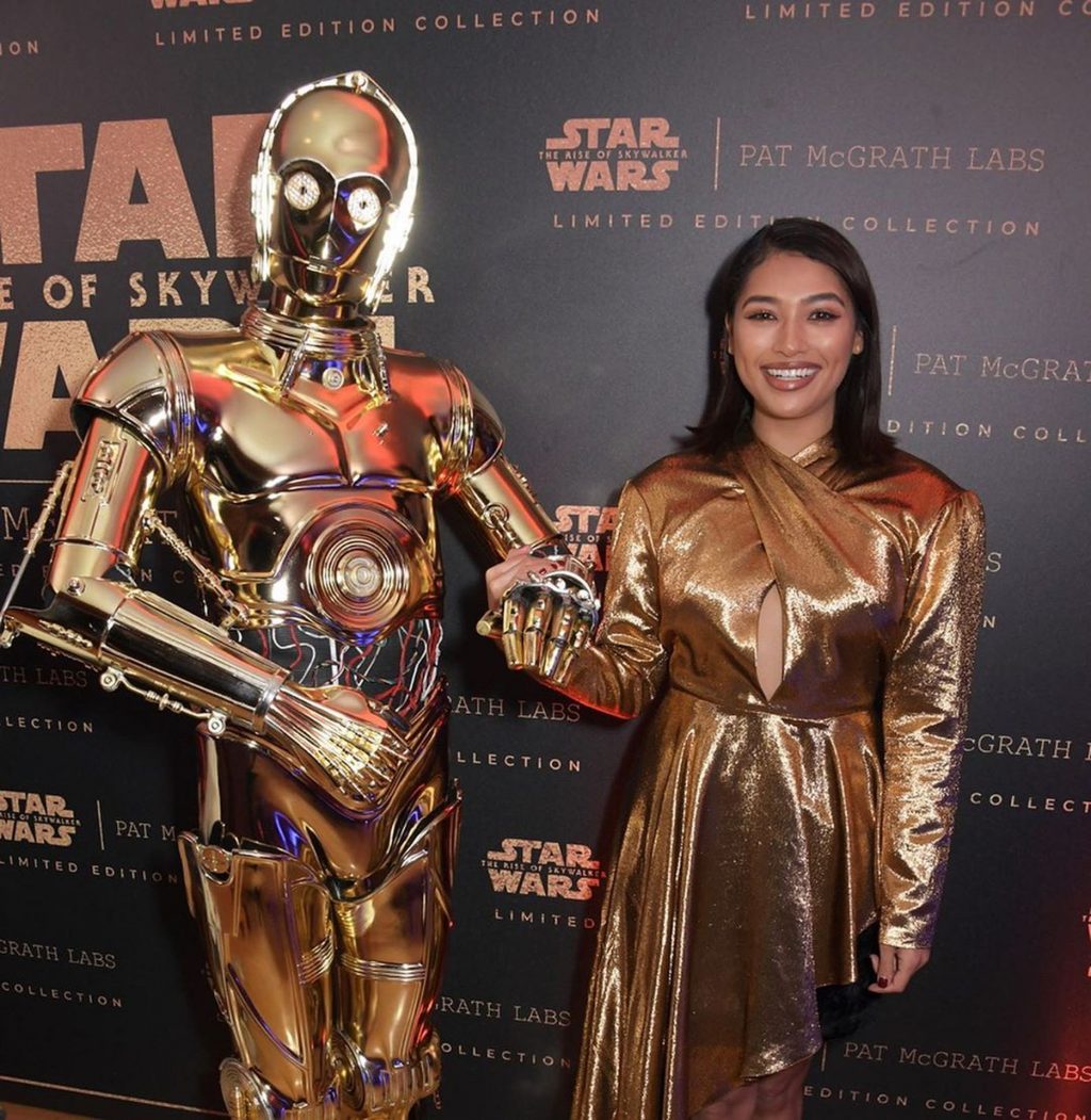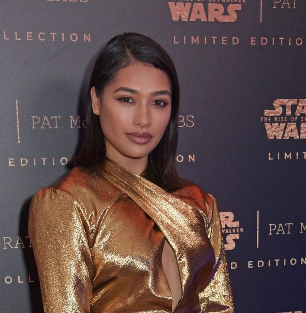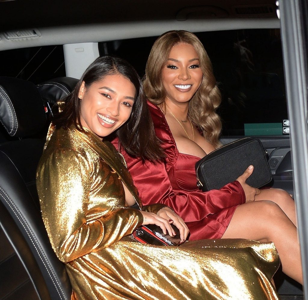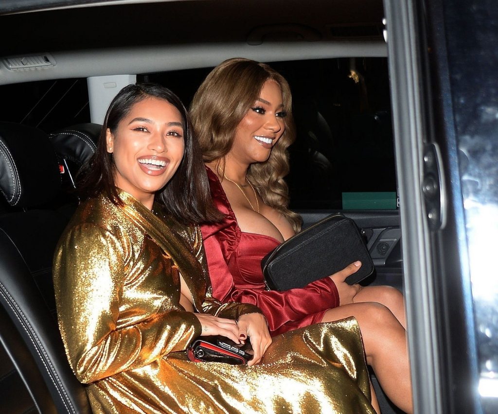 La chanteuse Vanessa White a été photographiée sans soutien-gorge dans une robe dorée en quittant la fête de Pat McGrath avec Munroe Bergdorf à Londres, le 12/03/2019.
