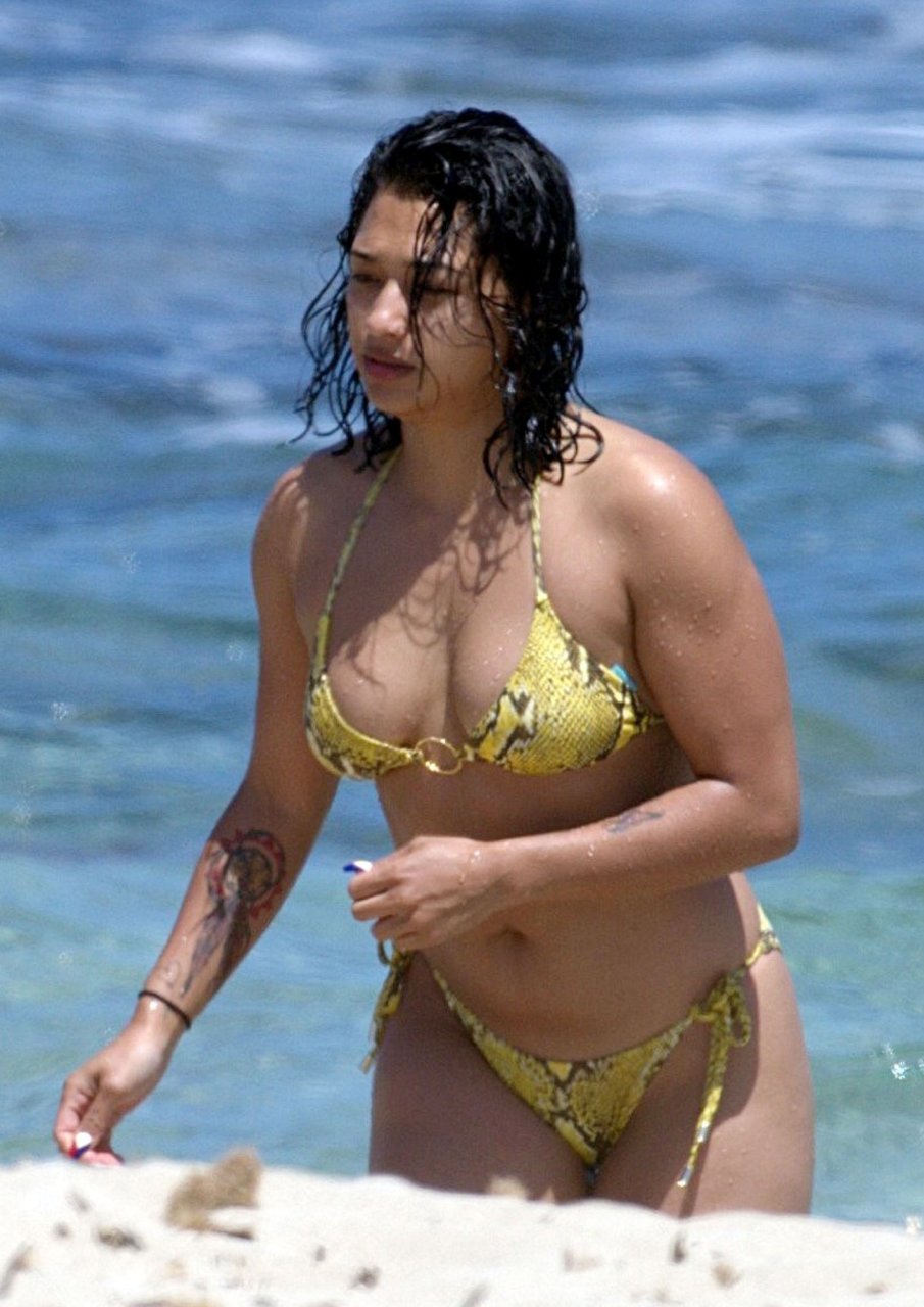 Vanessa White est vue en train de s’amuser sur la plage à Ibiza, 07/06/2017. Vanessa White est une chanteuse/auteure-compositrice anglaise, danseuse, actrice. Âge : 27 ans (née le 30 octobre 1989).