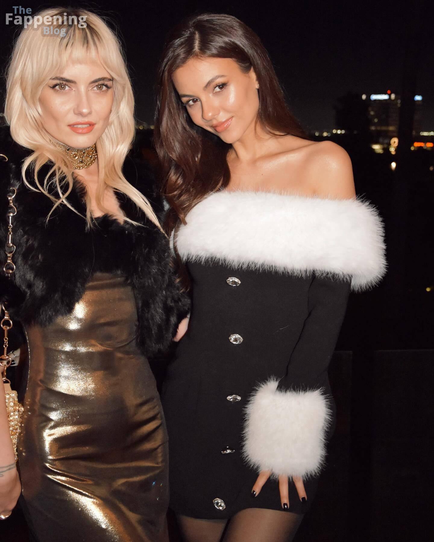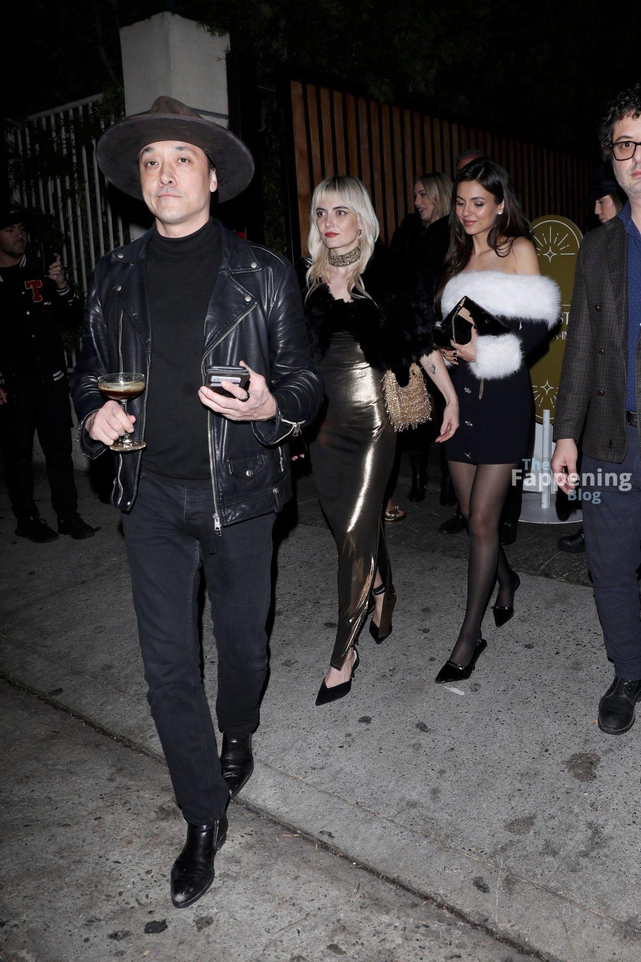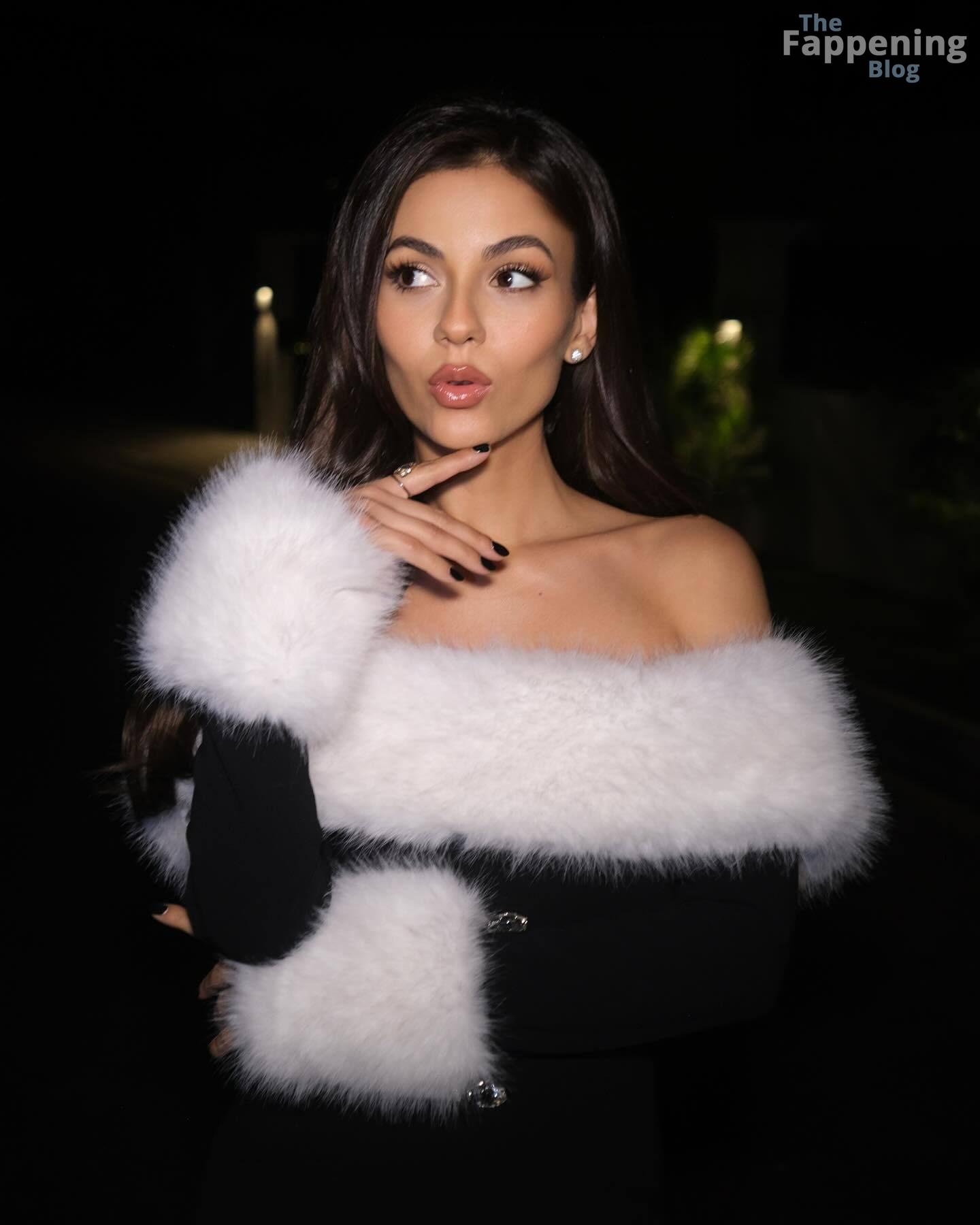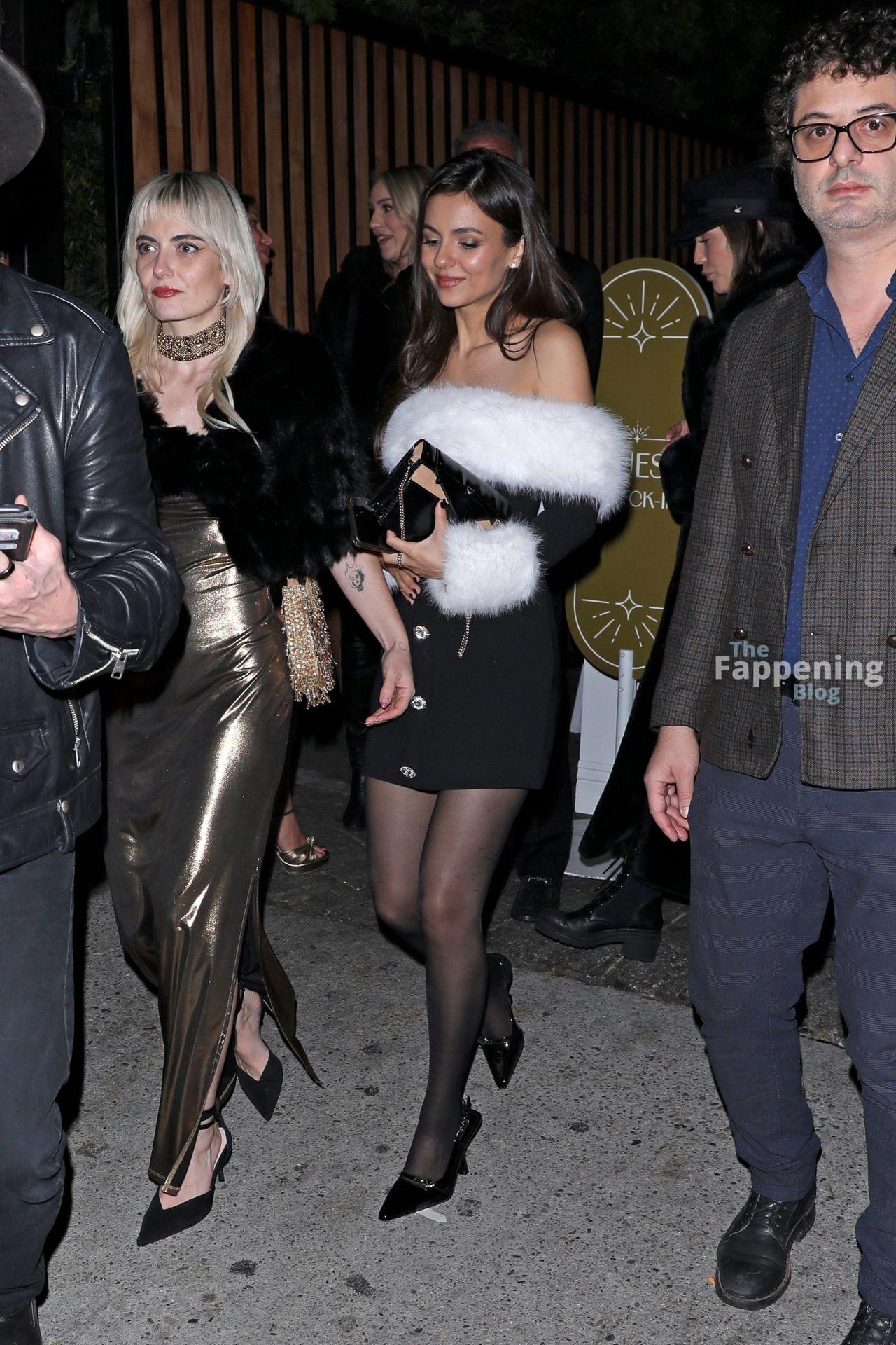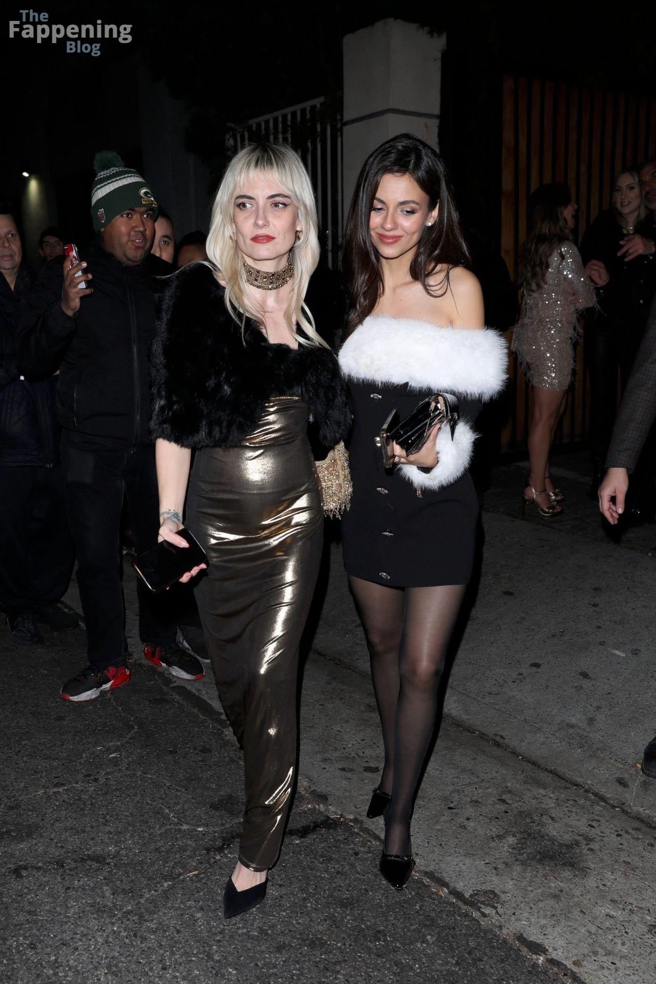 Victoria Justice brille à la fête de Noël de Seth MacFarlane, superbe dans une robe noire sexy et des bas qui mettent en valeur sa beauté. La star du Fappening tient un bouquet de roses rouges alors qu’elle est aperçue quittant l’événement à Los Angeles.