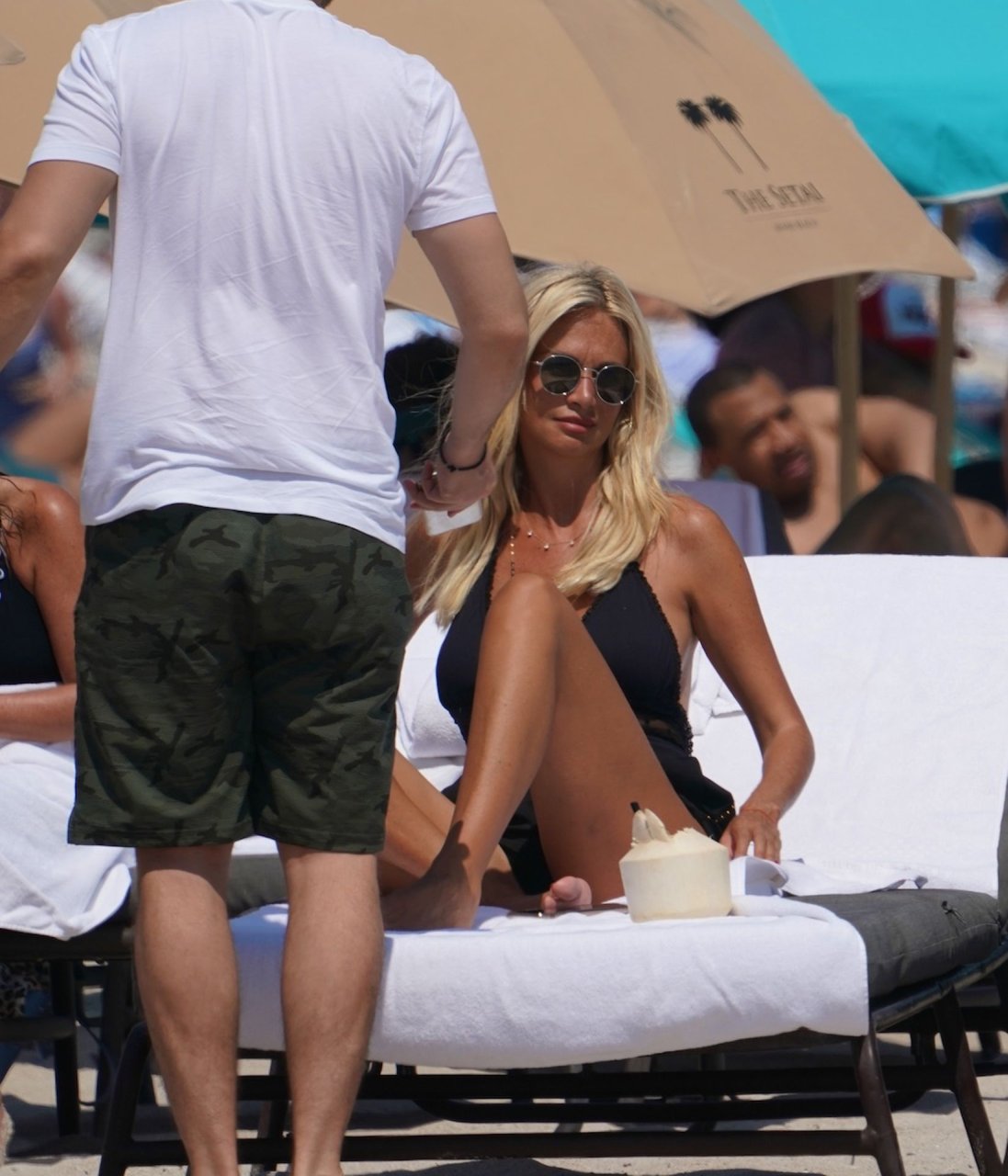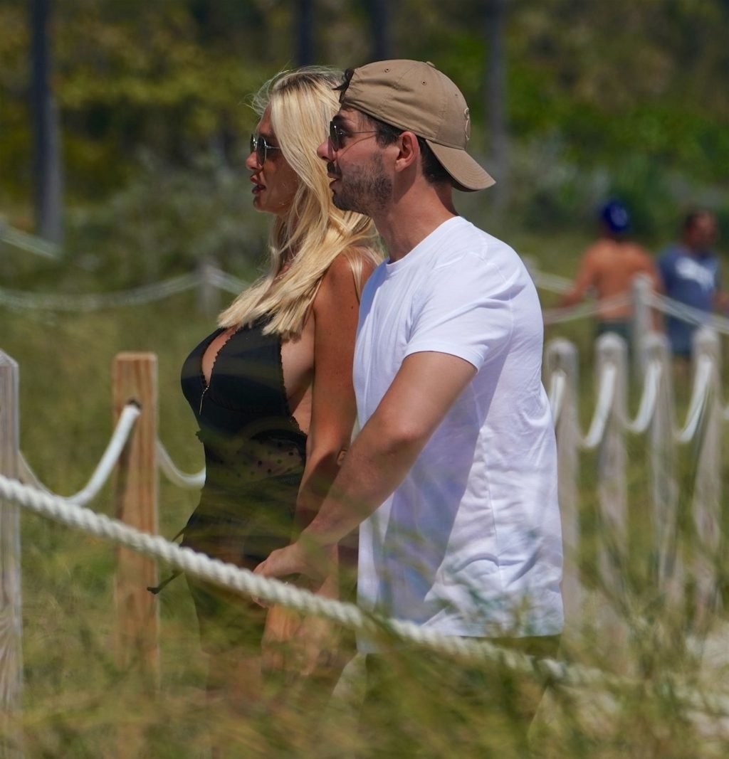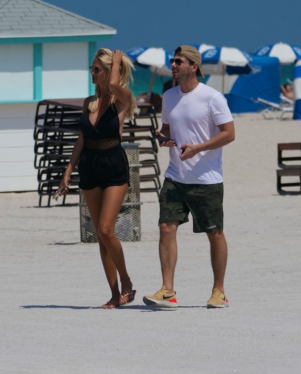 Ambassadrice de la Coupe du Monde de la FIFA 2018, animatrice TV et mannequin Victoria Lopyreva et Igor Bulatov ont été vus sur la plage de Miami Beach, le 17/03/2019. Victoria vient de donner naissance au premier enfant du couple à Miami.