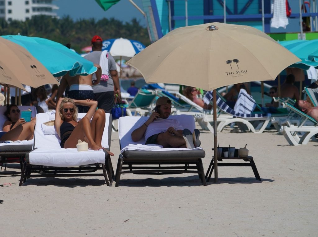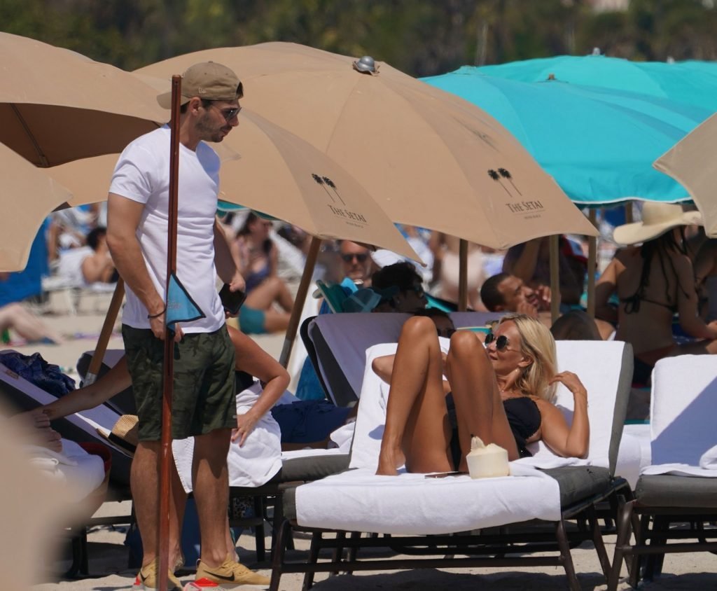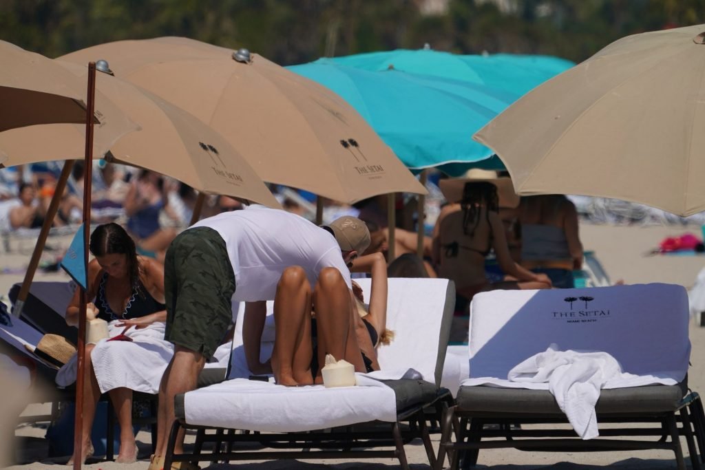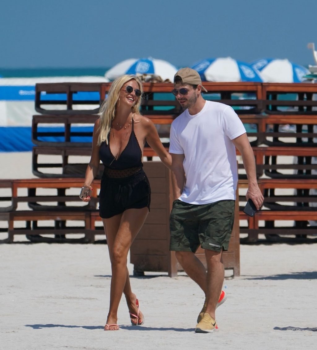 Ambassadrice de la Coupe du Monde de la FIFA 2018, animatrice TV et mannequin Victoria Lopyreva et Igor Bulatov ont été vus sur la plage de Miami Beach, le 17/03/2019. Victoria vient de donner naissance au premier enfant du couple à Miami.