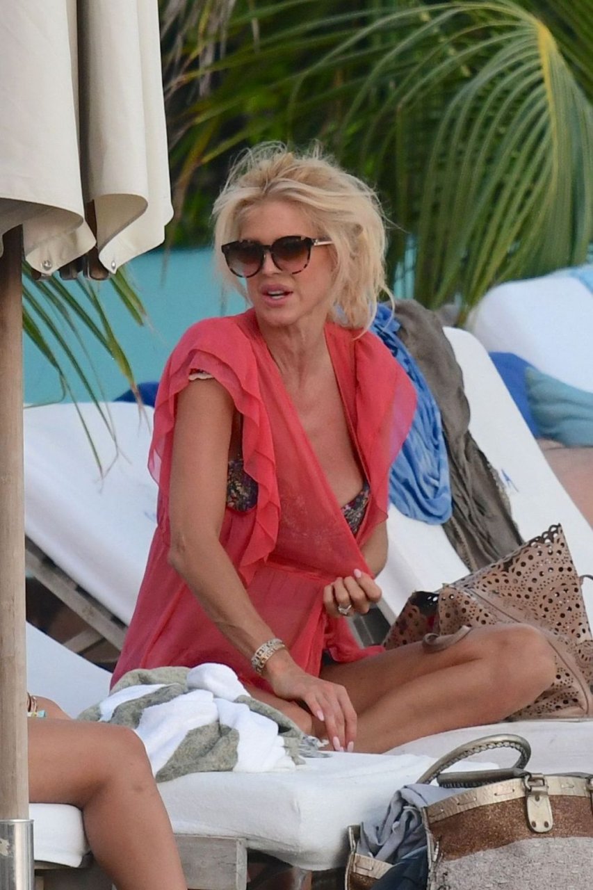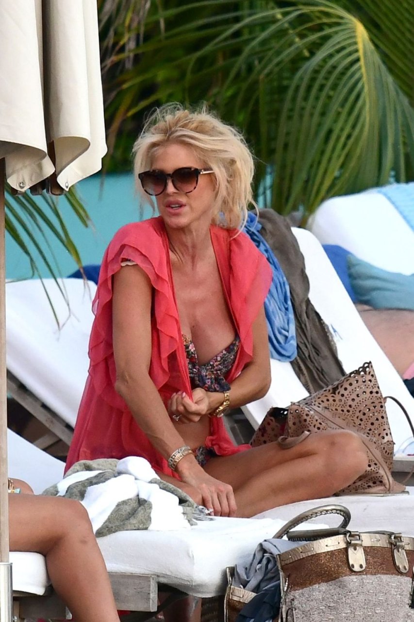 Le mannequin suédois aux longues jambes Victoria Silvstedt et son petit ami Maurice Dabbah ont été vus en vacances à St. Barts, le 22/12/2018. Le mannequin a choisi un maillot de bain sexy pour des vacances à la plage, qui mettait en valeur la silhouette magnifique de cette femme de 44 ans.